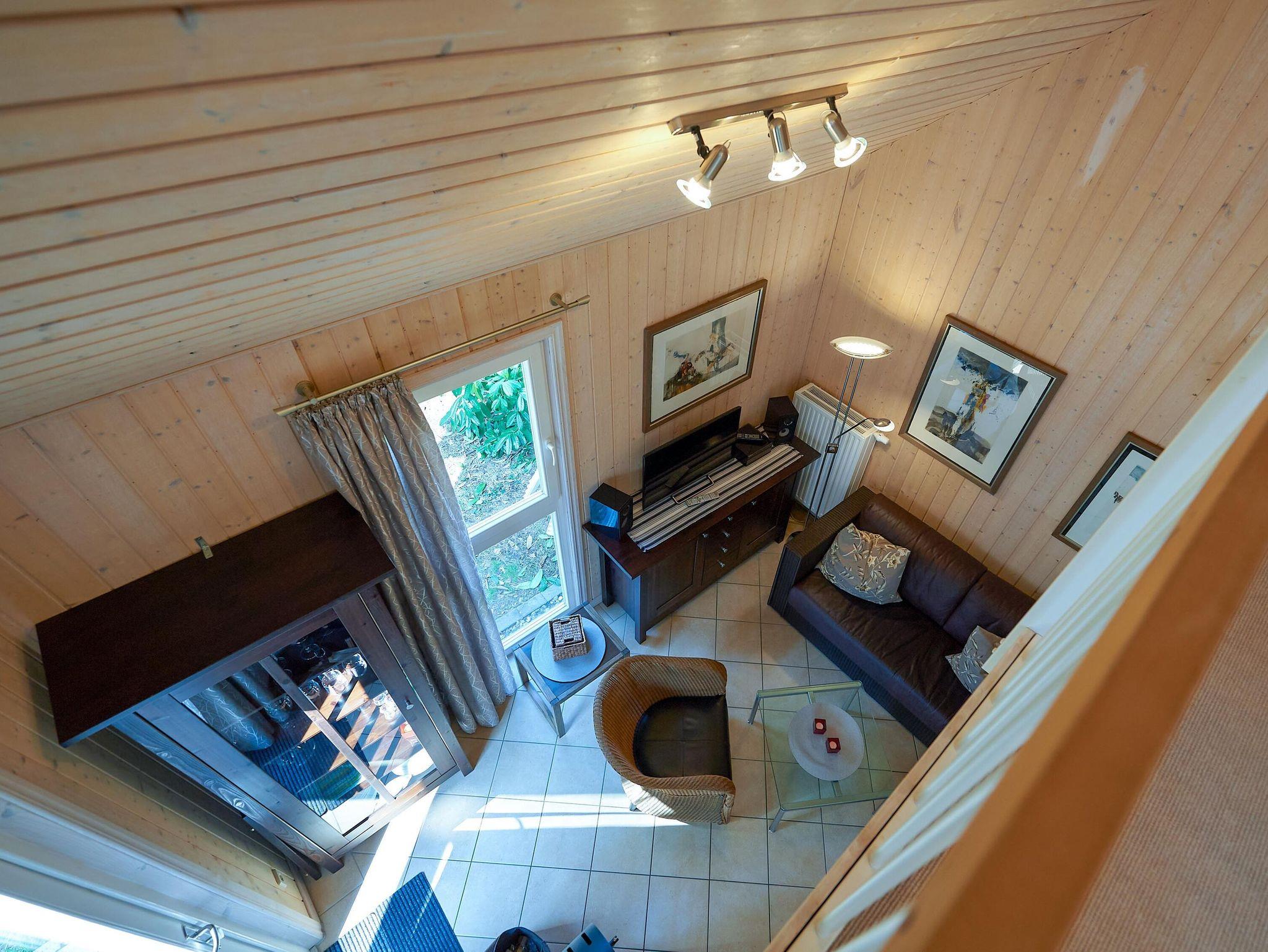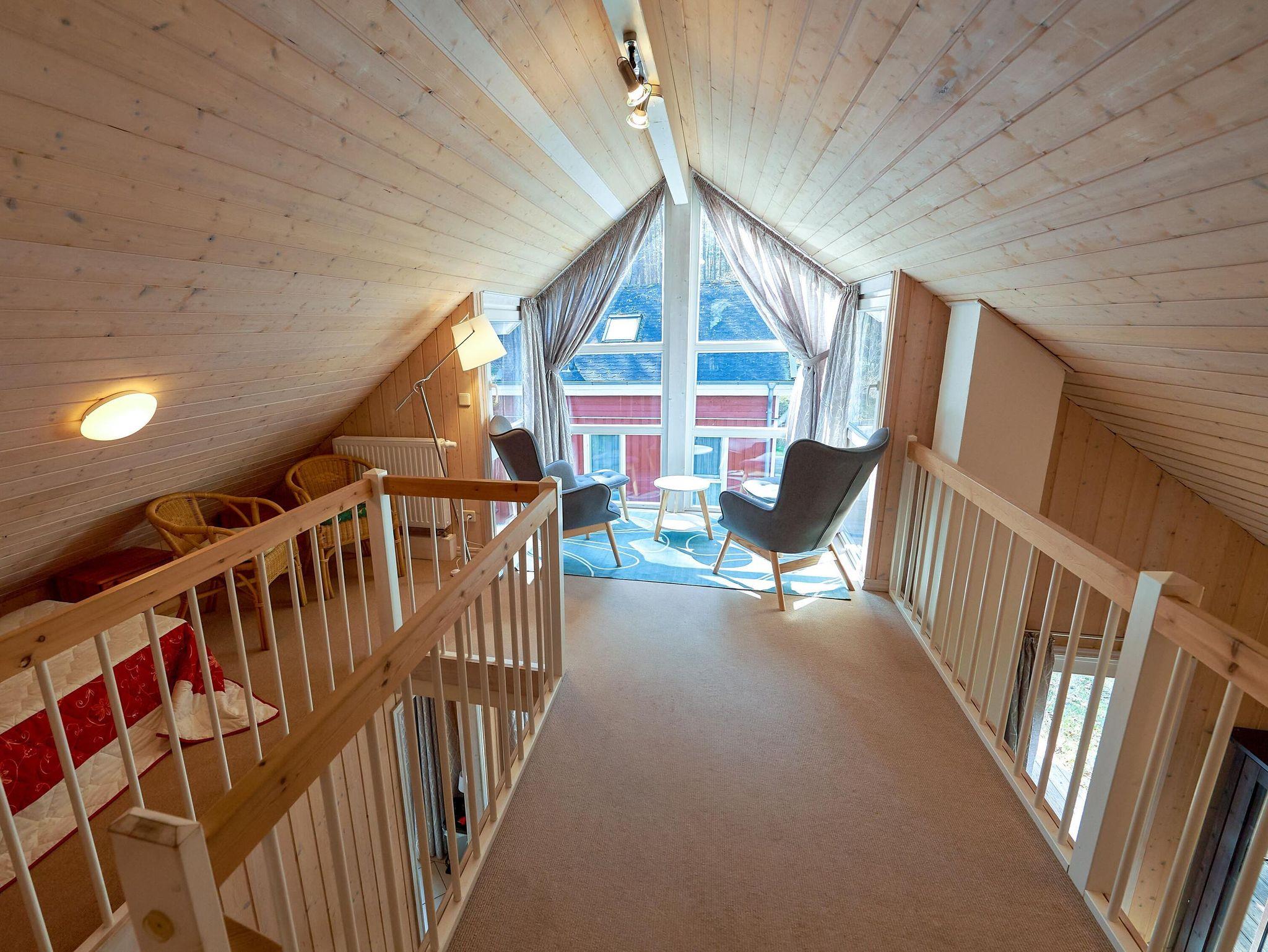 Im Obergeschoss gibt es unter gemütlichen Dachschrägen eine schöne Sitz- und Leseecke und das zweite Schlafzimmer, ebenfalls mit einem Doppelbett ausgestattet.