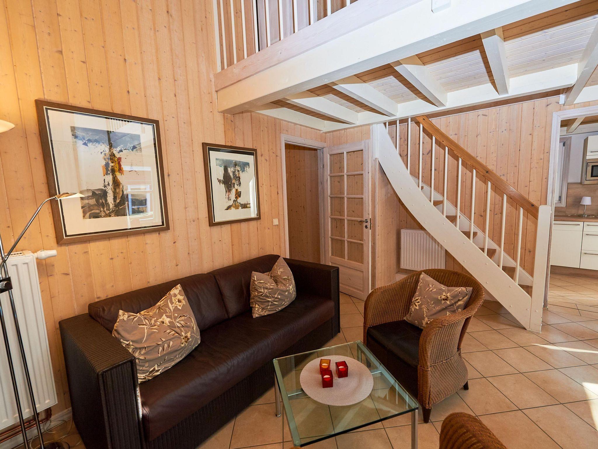 Im Erdgeschoss dominiert das kombinierte Wohn-/Esszimmer mit der großen möblierten Sonnenterrasse, auf der auch ein Strandkorb zum Einkuscheln und Relaxen zur Verfügung steht. Die Balkon- bzw. Terrassenmöbel stehen saisonal - in der Regel von Mai bis Ende September - zur Verfügung.