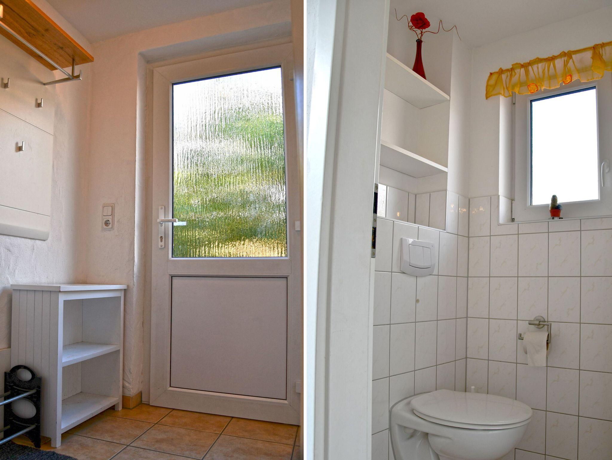 Zusätzlich zum Duschbad/WC im Obergeschoss gibt es im Erdgeschoss ein kleines Gäste-WC, so dass es auch bei „voller Hütte“ immer ganz entspannt zugeht.