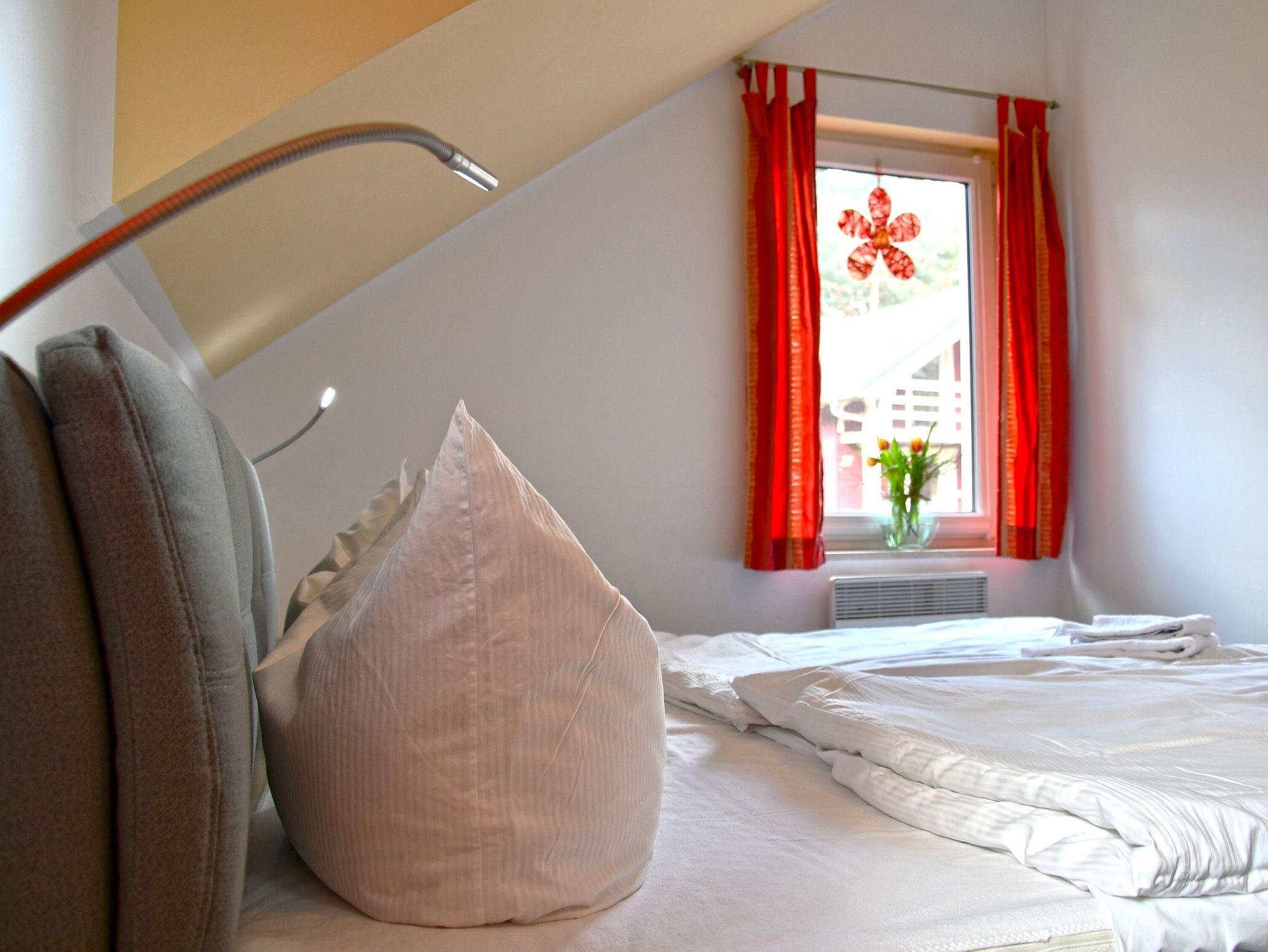 Ihr Zuhause auf Zeit erstreckt sich über zwei Etagen und 68 Quadratmeter Wohnfläche. Bis zu 5 Personen und ein gut erzogener Vierbeiner können hier rundum angenehme Urlaubstage verbringen. Dazu stehen Ihnen im Obergeschoss zwei Schlafzimmer mit bequemen Doppelbetten zur Verfügung; eines dieser Schlafzimmer hat zusätzlich eine Liege für die Aufbettung zur fünften Person. Auch ein ausklappbares Kinderreisebett ist vorhanden.
