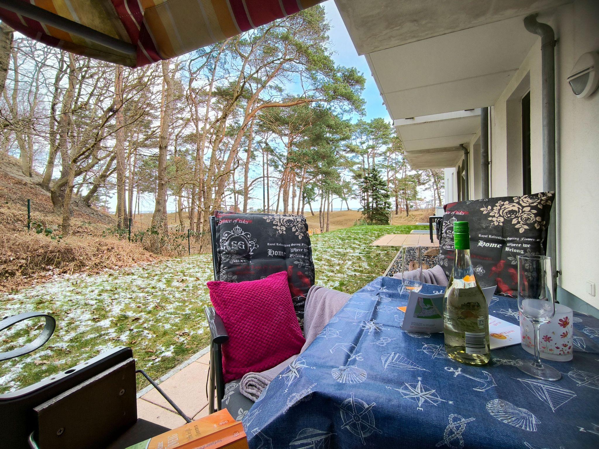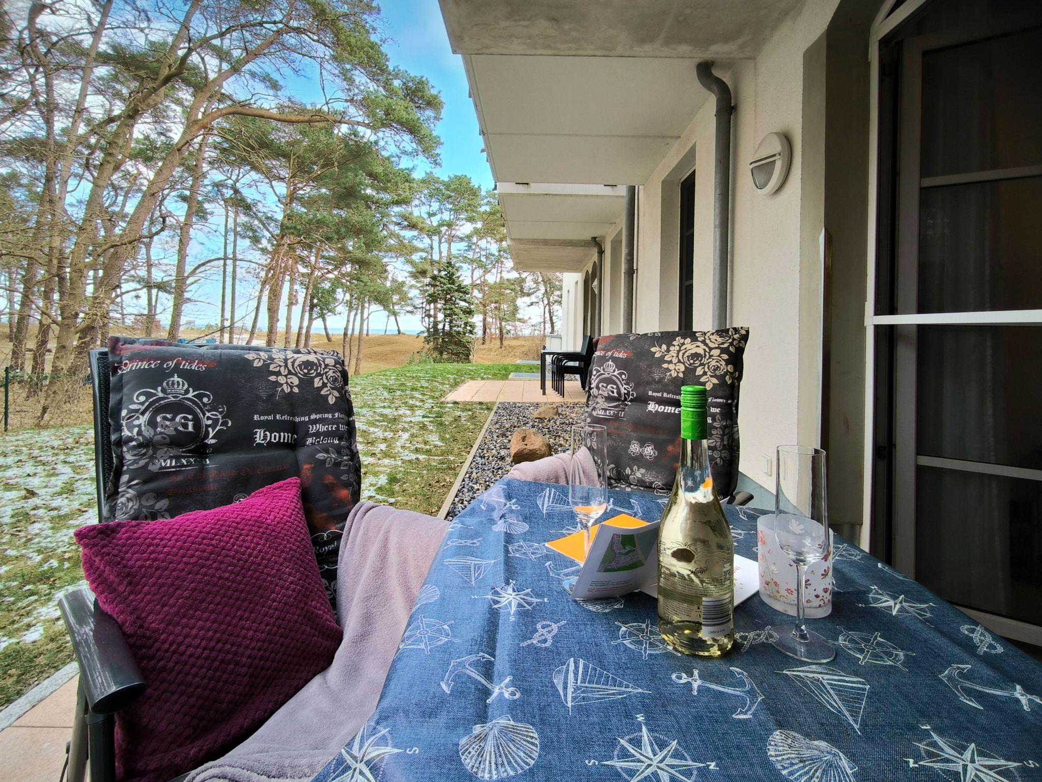 Gemütliche Ferienwohnung mit seitlichen Meerblick von der Terrasse für bis zu 3 Personen in der neu gebauten exklusiven Anlage Haus Meeresblick in Baabe.