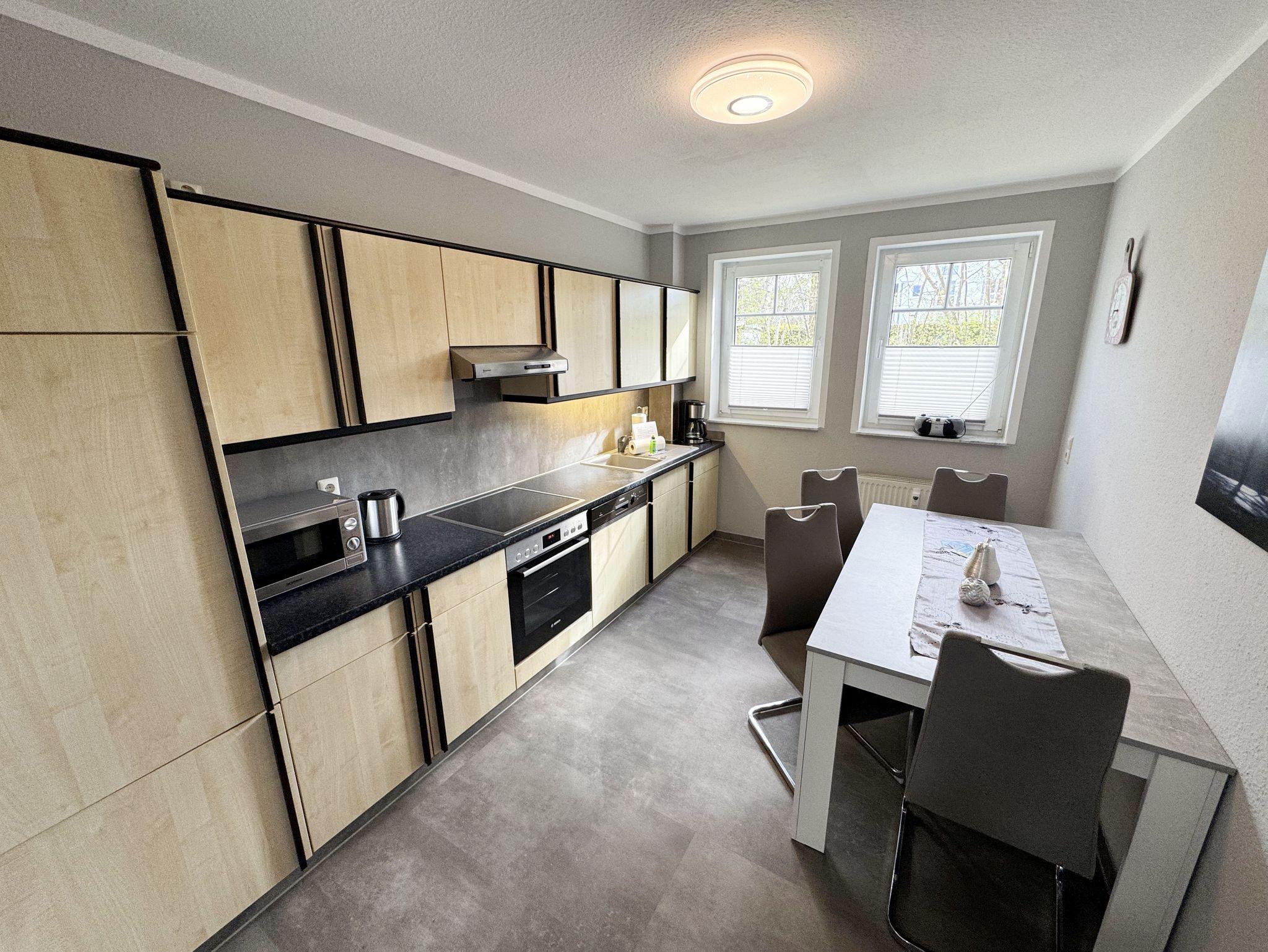 Die Ferienwohnung Nr. 14 (Nichtraucher) ist ca. 65 qm groß und befindet sich im Ostseebad Baabe in einer ruhigen Seitenstraße (ca. 500 m zum Strand). Die Ferienwohnung im Erdgeschoss besteht aus einem Wohnzimmer mit einer Schlafcouch (Aufbettungsmöglichkeit für 3./4. Person, 1,50m x 2,00m), Sessel, Anrichte mit Flachbild-TV, Blu-Ray-Player und einem Zugang zum Balkon mit Bestuhlung. Ein Internetanschluss (WLAN) können Sie inklusive in der Wohnung nutzen. Die separate Küche mit Essplatz ist komplett ausgestattet und verfügt über 4-Herdplatten, Backofen, Geschirrspüler, Kühlschrank mit kleinem Eisfach, Mikrowelle, Wasserkocher, Toaster, Kaffeemaschine und diversen Küchenutensilien. Das Schlafzimmer besteht aus einem Doppelbett und Kleiderschrank. Das Bad verfügt über eine Dusche, Waschplatz, Fön und WC. Ein Balkon im Erdgeschoss (Richtung Süden) lädt zum Verweilen ein. Ein PKW-Stellplatz Nr. 14 ist vorhanden sowie ein abschließbarer Raum für Ihre Fahrräder. Waschmaschine und Trockner im Keller können gegen eine Gebühr genutzt werden. 2 Haustiere sind in der Wohnung ebenfalls gegen eine Gebühr gern gesehene Gäste. Die Erstausstattung eines Wäschepaketes (komplette Bettwäsche, 1 Duschhandtuch, 1 kleines Handtuch) können Sie bis 14 Tage vor Anreise gegen einen Aufpreis dazu buchen oder durch eigene ergänzen. Ab 2 gebuchten Paketen erhalten Sie einmalig 1 Geschirrhandtuch und 1 Duschvorleger hinzu.