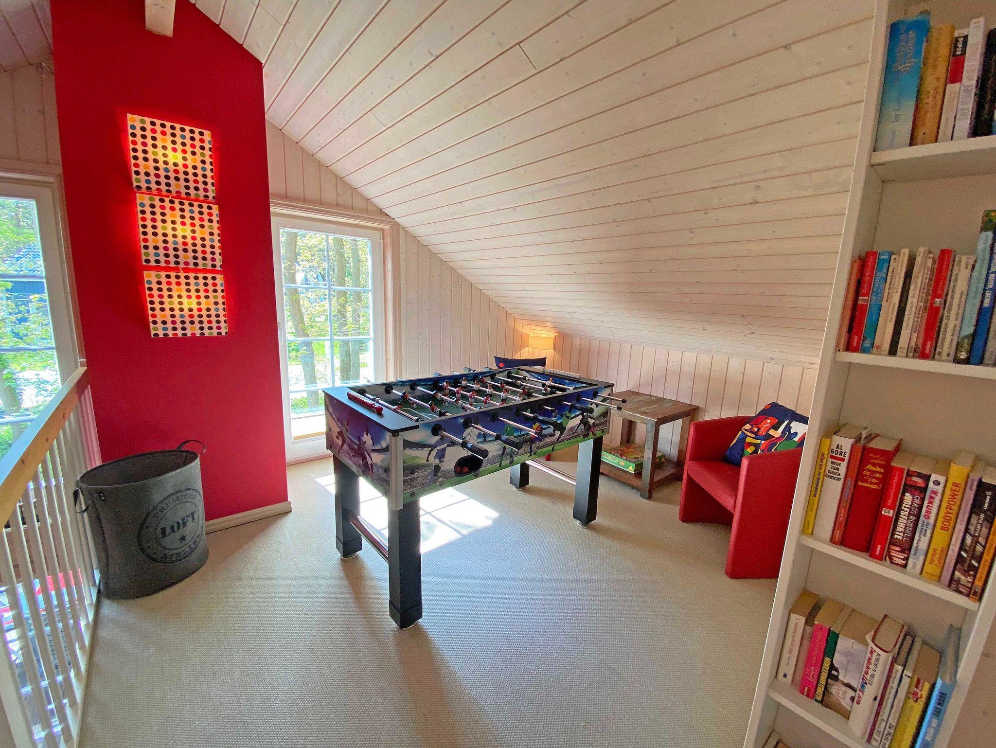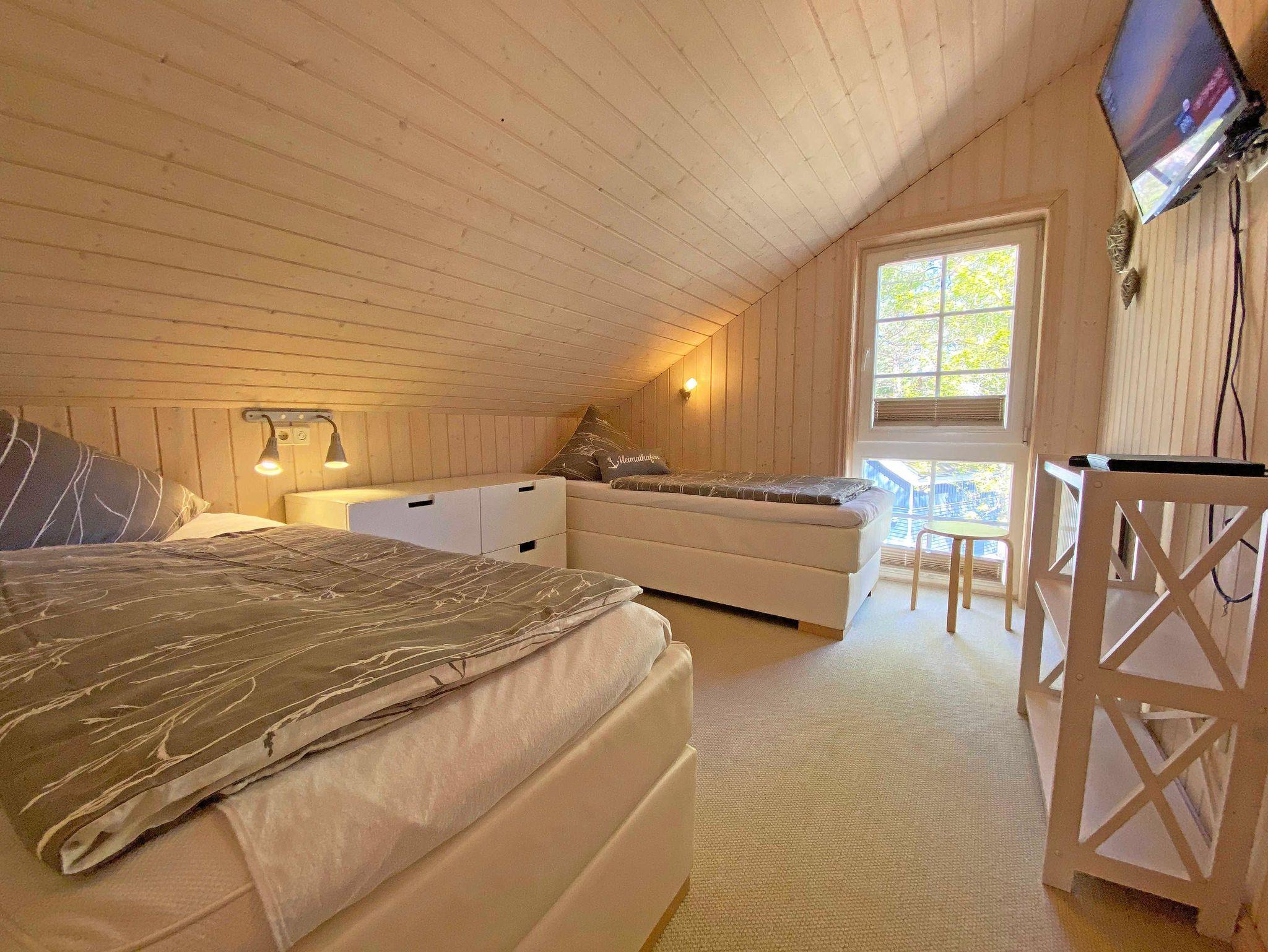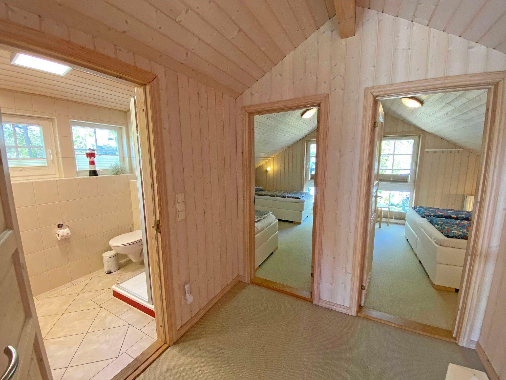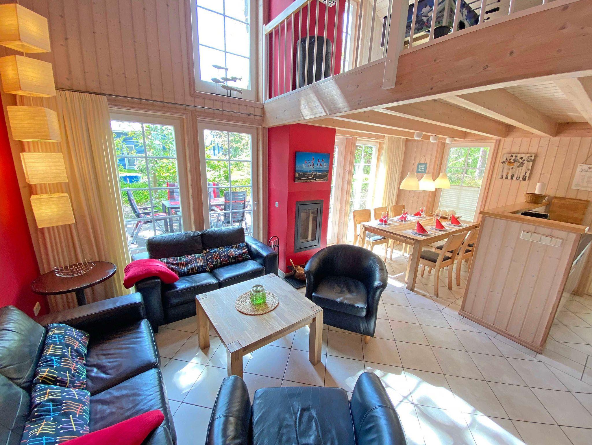 Das liebevoll eingerichtete ca. 85 qm große Nichtraucher Strandhaus „Ostseewelle“ im skandinavischen Stil mit Kamin und Sauna ist optimal geeignet für 6 Erwachsene und 1 Kleinkind bis 3 Jahre im Kinderreisebett. Durch einen kleinen Eingangsflur mit Garderobe und Schuhregalen betreten Sie Ihr Strandhaus. Im Erdgeschoss befindet sich der Wohn-/Essbereich mit gemütlicher Ledercouchecke, 2 Sesseln, Highboard mit Smart-TV, Blu-Ray-Player, Mini-Stereoanlage mit USB-Anschluss sowie ein Philips DAB Radio. Auch auf einen Internetzugang (WLAN) brauchen Sie nicht verzichten. Dieser ist für Sie inklusive. Wer es abends gern noch ein bisschen gemütlicher mag, der zündet den Kamin im Wohnraum an und lässt den Tag bei einem Glas Wein ausklingen. Dem Wohnbereich angeschlossen ist die Einbauküche, die mit allen Geräten ausgestattet ist, wie Sie es von zu Hause kennen: Geschirrspüler, Kühlschrank mit Gefrierfach, Ceranherd mit Backofen, Mikrowelle, Kaffeemaschine, SENSEO Kaffeemaschine, Wasserkocher, Toaster, Mixer und ambitionierte Hobbyköche finden eine große Auswahl an Küchenutensilien. Der große Esstisch bietet Platz für 6 Personen. Vom Wohnbereich gibt es einen direkten Zugang zur sonnigen Terrasse (Süd/Ost), welche mit bequemen Terrassenmöbeln ausgestattet ist. Zum Grillen können Sie den Elektrogrill nutzen. Im kleinen Abstellraum unter der Treppe finden Sie die Stuhlauflagen und einige Reinigungsutensilien. Das freundlich eingerichtete Schlafzimmer im Erdgeschoss ist mit 2 Boxspringbetten (0,90 m x 2,00 m), Nachttischkonsolen, Leseleuchten und Kleiderschrank ausgestattet. Das große Bad auf gleicher Ebene verfügt über eine Dusche, Sauna und einen Whirlpool welches Ihr „Wellnessbereich“ zum Verwöhnen ist! Auch ein Waschplatz, WC und Fön gehören dazu. Eine Waschmaschine/Trockner für die kleine Wäsche ist ebenfalls im Bad. Über eine Holztreppe erreichen Sie das lichtdurchflutete Obergeschoss. Auf der Galerie gibt es einen Tisch - Kicker für gesellige „Fußballspiele“ und eine Leseecke mit Sesseln. Zwei weitere Schlafzimmer mit Boxspringbetten (1 SZ mit Doppelbett 1,80 m x 2,00 m, 1 SZ mit zwei Einzelbetten 0,90 m x 2,00 m), Kleiderschränken, ein TV-Flachbild, Ablagen mit Leseleuchten sowie ein zweites großes Tageslicht-Bad mit Dusche, WC, Waschplatz, Kosmetikspiegel sind ebenfalls im Obergeschoss untergebracht. Das Haus verfügt im gefliesten Erdgeschoss über eine Fußbodenheizung. Das mit Teppichboden belegte OG ist mit individuell einstellbaren Wandheizkörpern ausgerüstet. Alle Räume haben Insektenschutzgitter. Für die kleinen Gäste halten wir 1x Hochstuhl, 1x Kinderreisebett und eine Treppenschutztür (im Obergeschoss) bereit. Auf dem Grundstück steht unseren Gästen ein PKW-Stellplatz (Nr. 02) zur Verfügung. Ihre geliehenen oder mitgebrachten Fahrräder können Sie am Haus (einbetonierter Fahrradbügel) abstellen und anschließen. 2 Haustiere sind mit eigenen Schlafplätzen gegen eine Gebühr gern gesehene Gäste. Die Erstausstattung eines Wäschepaketes (komplette Bettwäsche, 1 Duschhandtuch, 2 kleine Handtücher) können Sie bis 14 Tage vor Anreise gegen einen Aufpreis dazu buchen oder durch eigene ergänzen. Ab 2 gebuchten Paketen erhalten Sie einmalig 1 Geschirrtuch und einen Duschvorleger dazu.