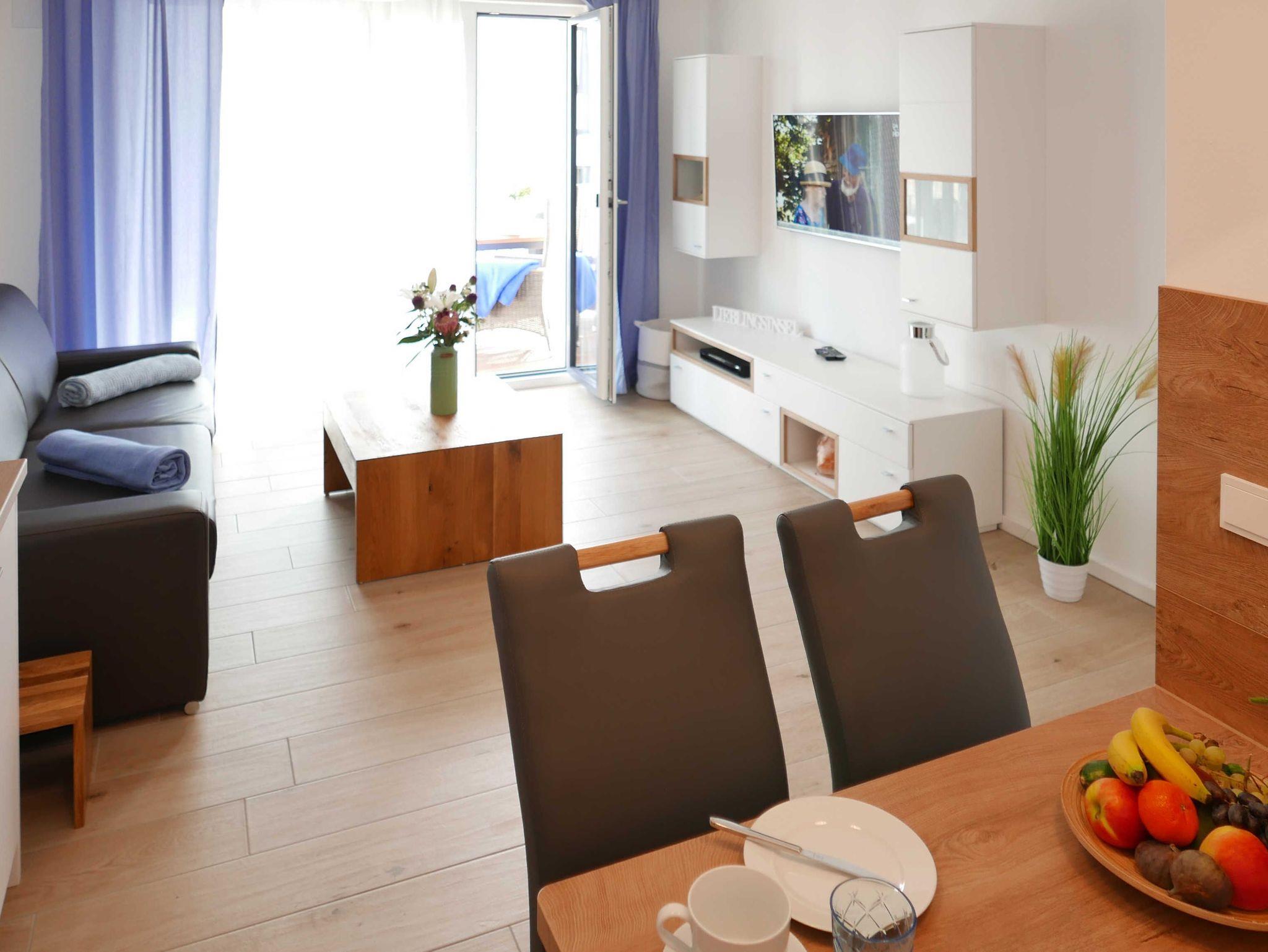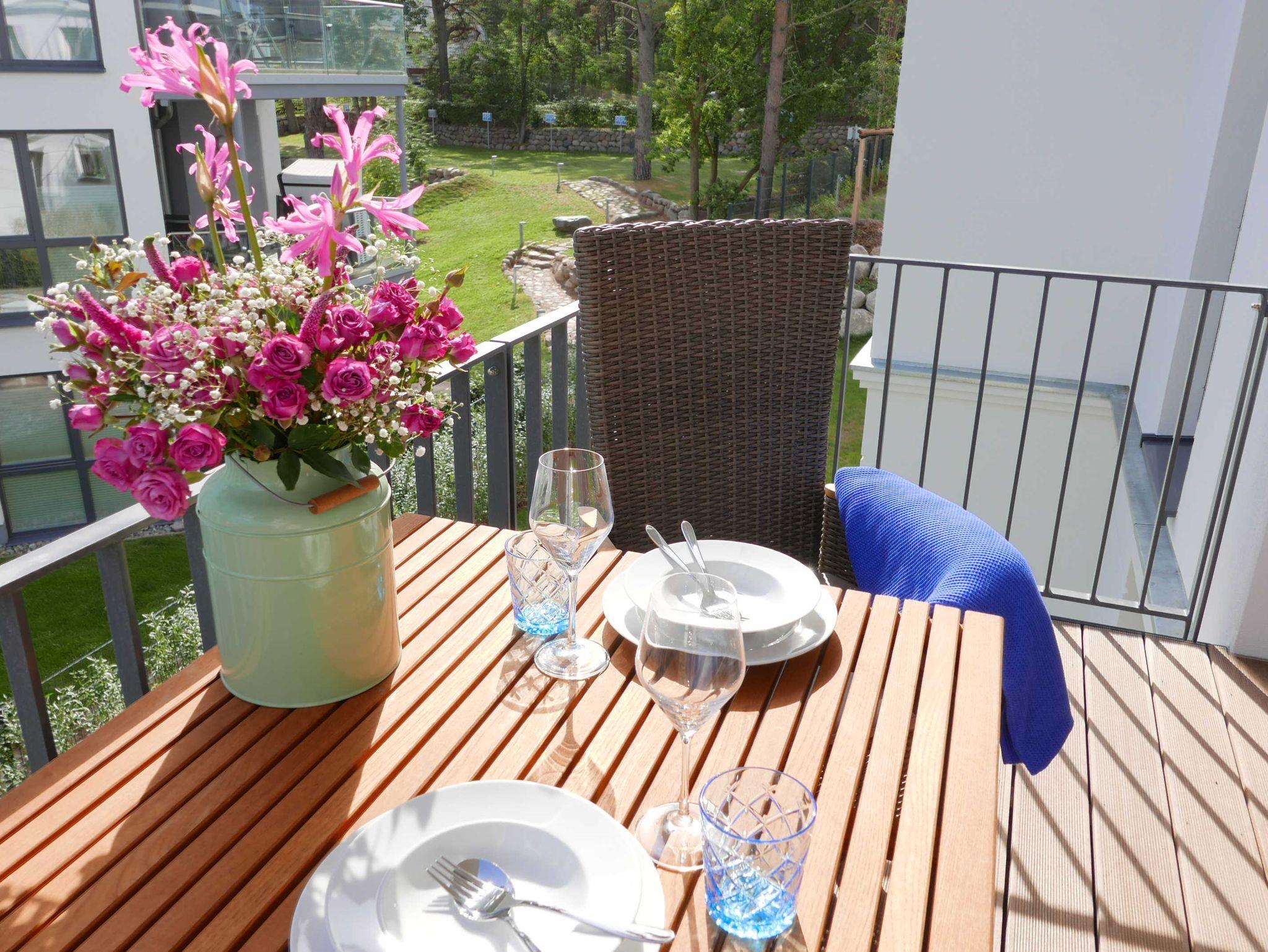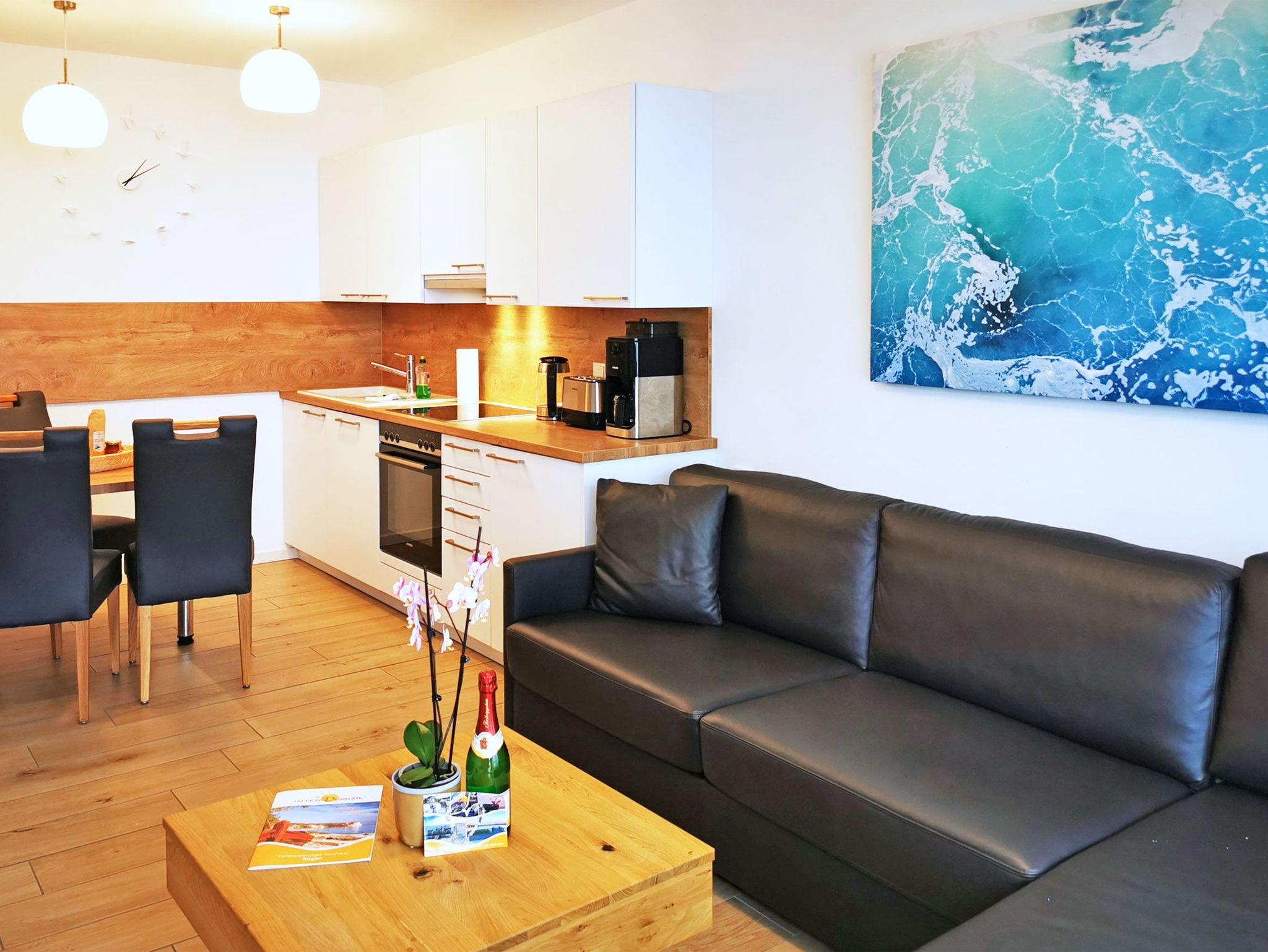 Moderne Ferienwohnung in Baabe mit Balkon, moderner Küche und Strandnähe für erholsame Ostseeferien.