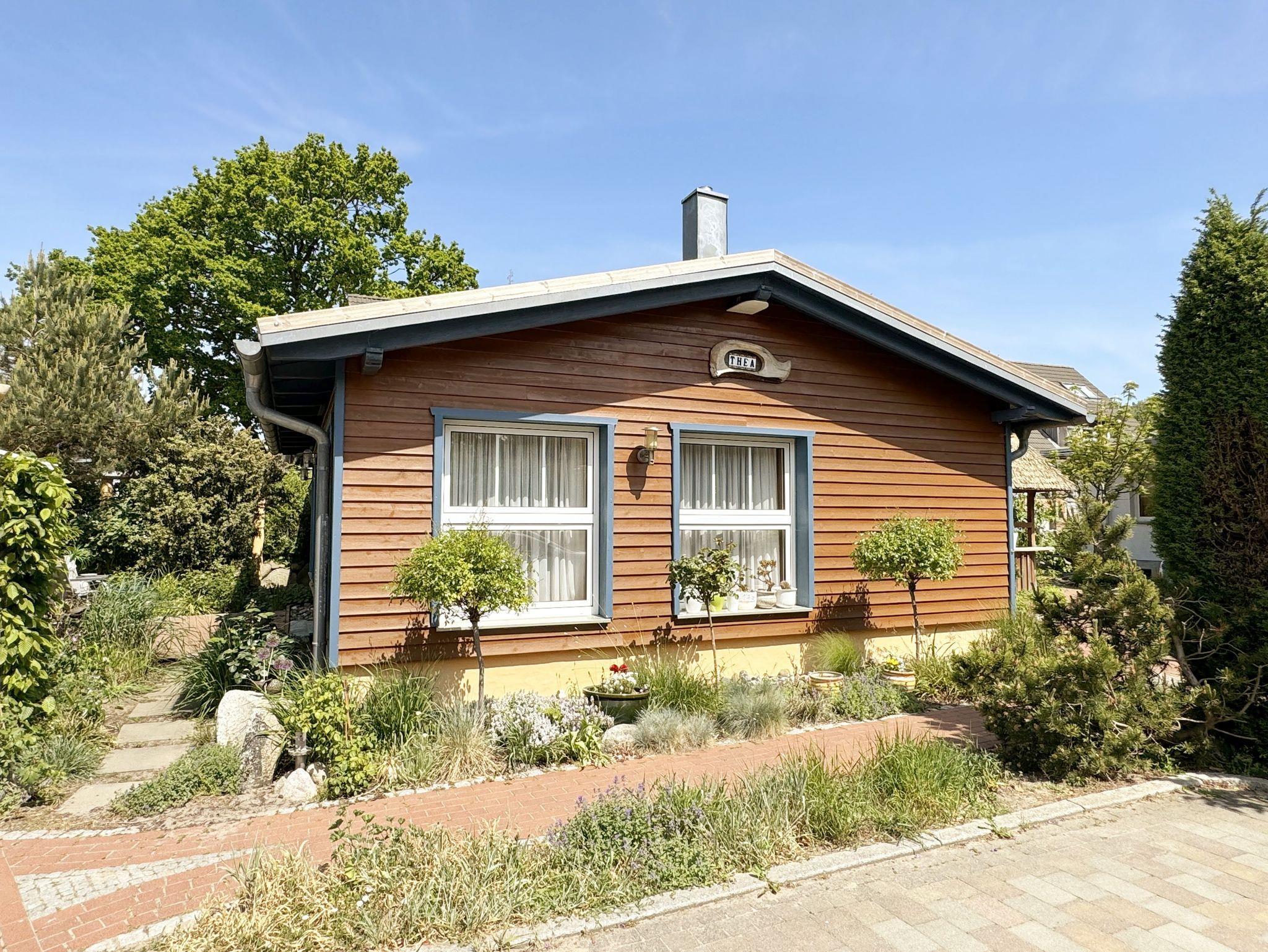 Das Nichtraucher-Ferienhaus Thea in Baabe bietet eine Terrasse, Kamin und WLAN, nur wenige Gehminuten vom Ostseestrand entfernt.