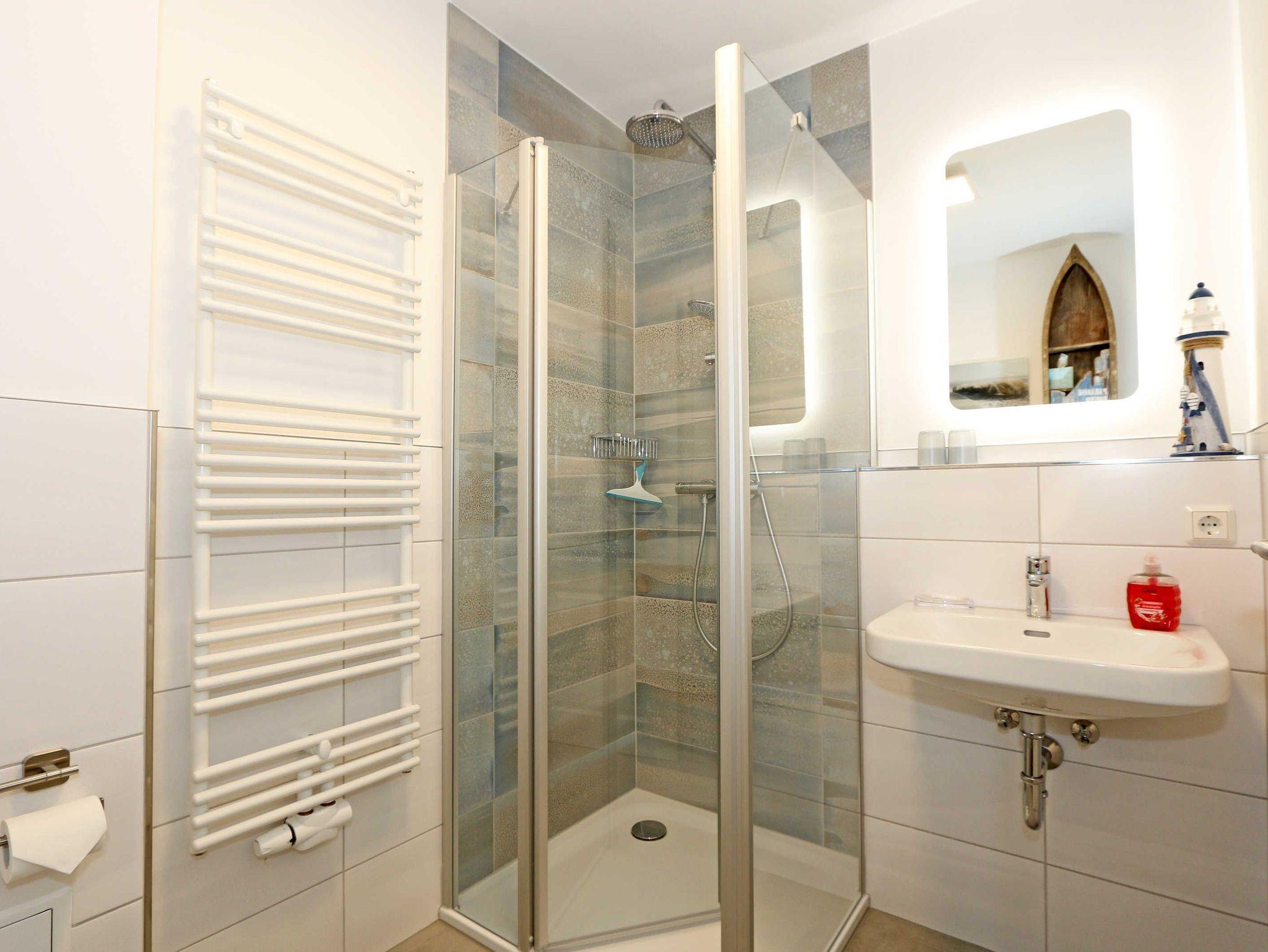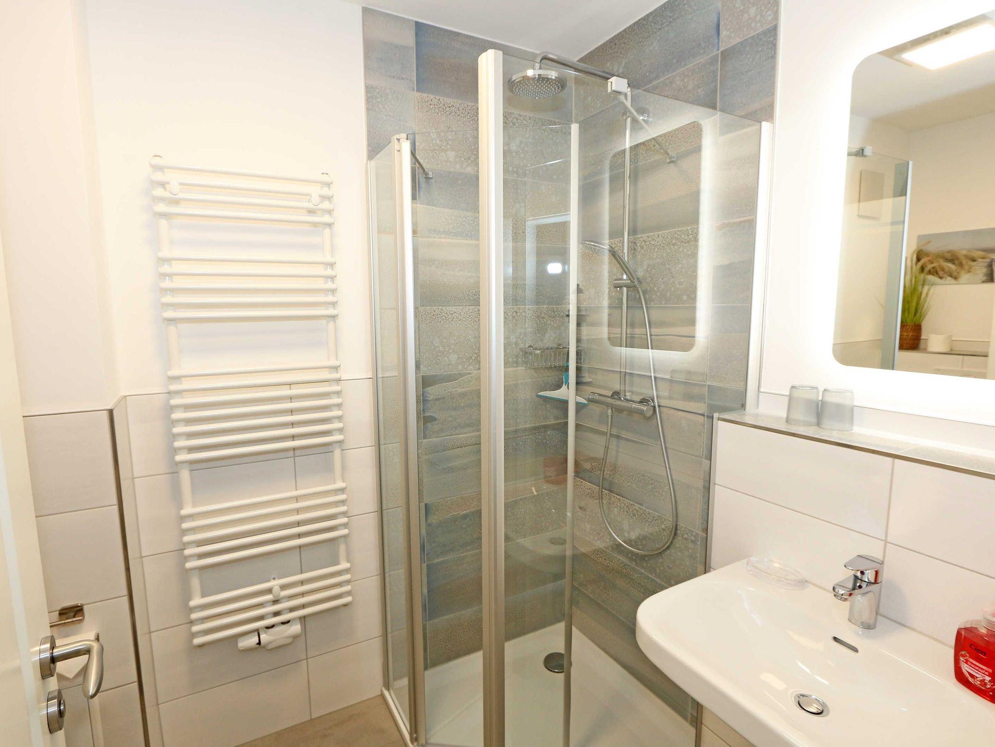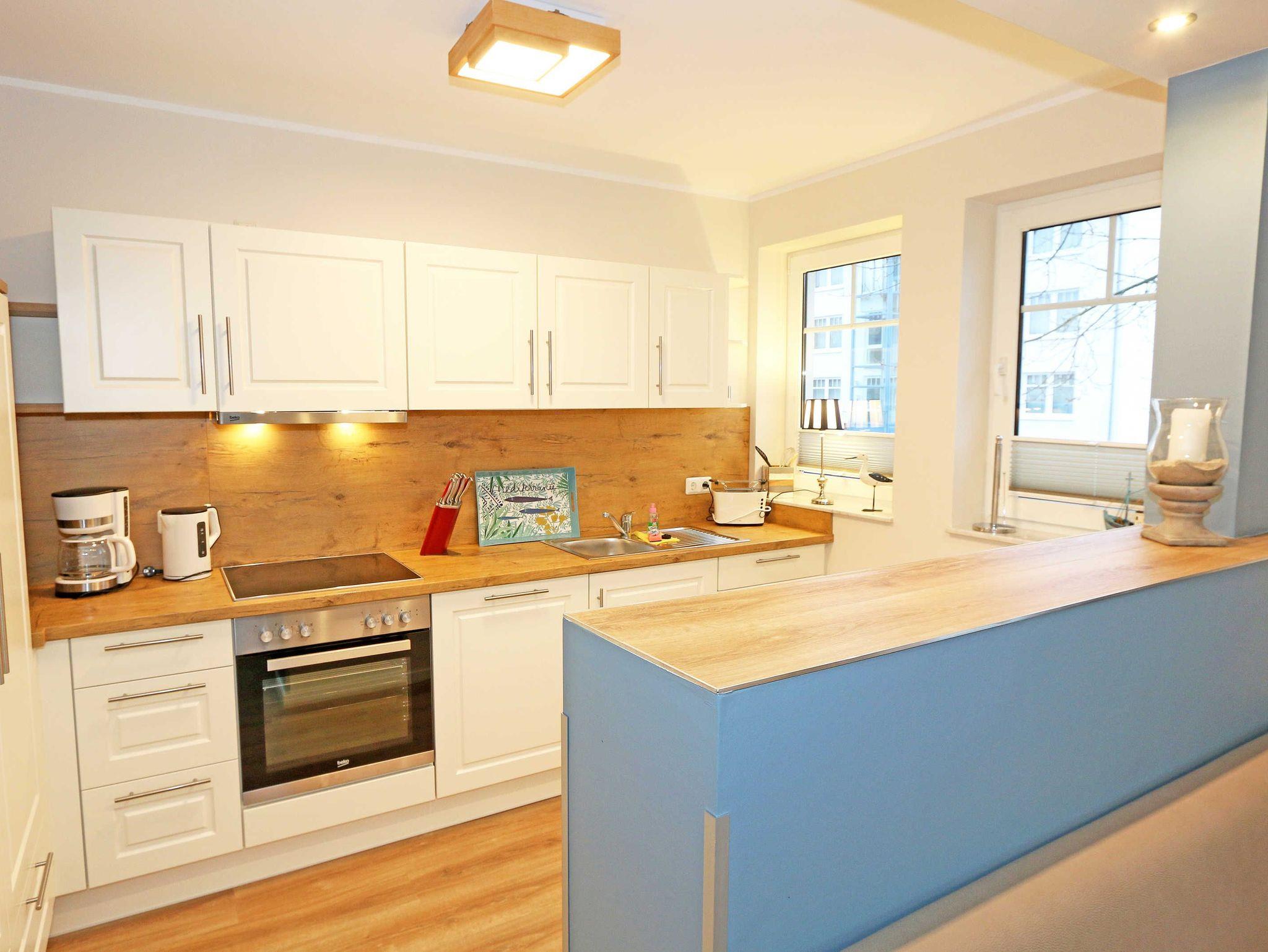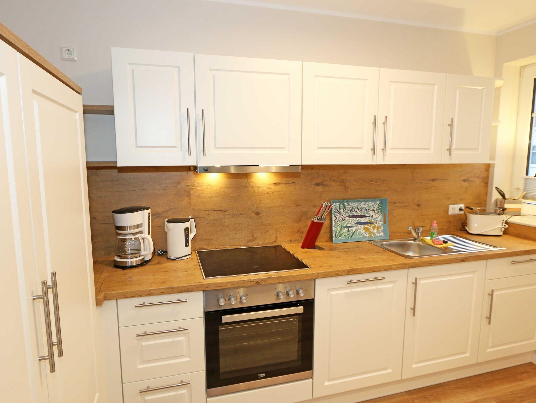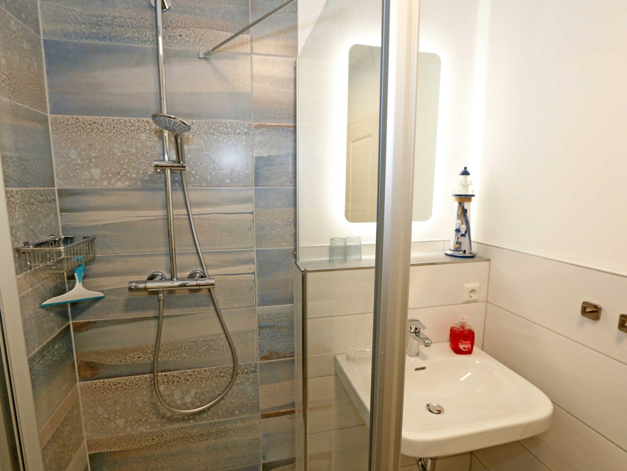 Die 56 qm große Nichtraucherwohnung befindet sich im 1. Obergeschoss in der Villa Störtebeker im Herzen von Baabe. Die Ferienwohnung bietet Ihnen Platz für max. 2 bis 4 Personen. Wenn Sie die Wohnung betreten, begrüßt Sie ein großzügiger Eingangsbereich mit Sitzgelegenheit und einer Garderobe. Der offene Wohn- Essbereich ist mit einer gemütlichen Couch, welche sich in wenigen Handgriffen in ein Bett verwandelt werden kann (Liegefläche 1,60m x 2,00m), einen Couchtisch, einen gemütlichen Ohrensessel, eine Leselampe, ein Lowboard mit Smart-TV, Blu-Ray-Player sowie ein DAB-Radio mit USB-Anschluss und Bluetooth Möglichkeit. Eine kleine Sammlung an Büchern, Gesellschaftsspielen und ein Internetzugang (WLAN) runden den Bereich ab. Im angrenzenden Essbereich befindet sich für das gemütliche Beisammensein ein Esstisch mit Stühlen und einer Sitzbank. Die offene Eck- Küchenzeile mit einem Kühlschrank und Gefrierfach, einem Geschirrspüler, ein 4 Zonen Ceranfeld mit Backofen, eine Mikrowelle, eine Kaffeemaschine, Nespresso Maschine, ein Toaster, ein Wasserkocher sowie diversen Küchenutensilien bietet Ihnen alles, was Sie zu Kochen benötigen. Vom Wohnbereich gelangen Sie direkt auf den großen bestuhlten (Süd/West) Balkon mit Sonnenschirm, wo Sie einen wunderbaren Ostseetag ausklingen lassen können. Das moderne und neu renovierte Bad verfügt über eine Glasdusche mit niedrigem Einstieg, einen Waschplatz, ein WC, ein Kosmetikspiegel, ein Fön sowie ein Handtuchtrockner. Neben dem Bad befindet sich das Schlafzimmer mit einem Doppelbett (1,80m x 2,00m), Nachttischablagen, Kleiderablage und einem 3- türigen Kleiderschrank. Für einen ruhigen Schlaf dienen die Verdunklungsplissee´ s. Haustiere sind nicht erlaubt. Ein PKW-Stellplatz (Nr.17) befindet sich direkt vor dem Haus. Ihre mitgebrachten Fahrräder können Sie sicher in dem zur Wohnung gehörenden Abstellraum unterbringen. Die Erstausstattung eines Wäschepaketes (komplette Bettwäsche, 1 Duschhandtuch, 1 kleines Handtuch) können Sie bis 14 Tage vor Anreise gegen Aufpreis dazu buchen oder durch eigene ergänzen. Ab 2 gebuchten Paketen erhalten Sie einmalig 1 Geschirrhandtuch und 1 Duschvorleger dazu. Wir wünschen Ihnen einen traumhaften Urlaub an der Ostsee, erholen Sie sich gut und genießen Sie die Zeit.