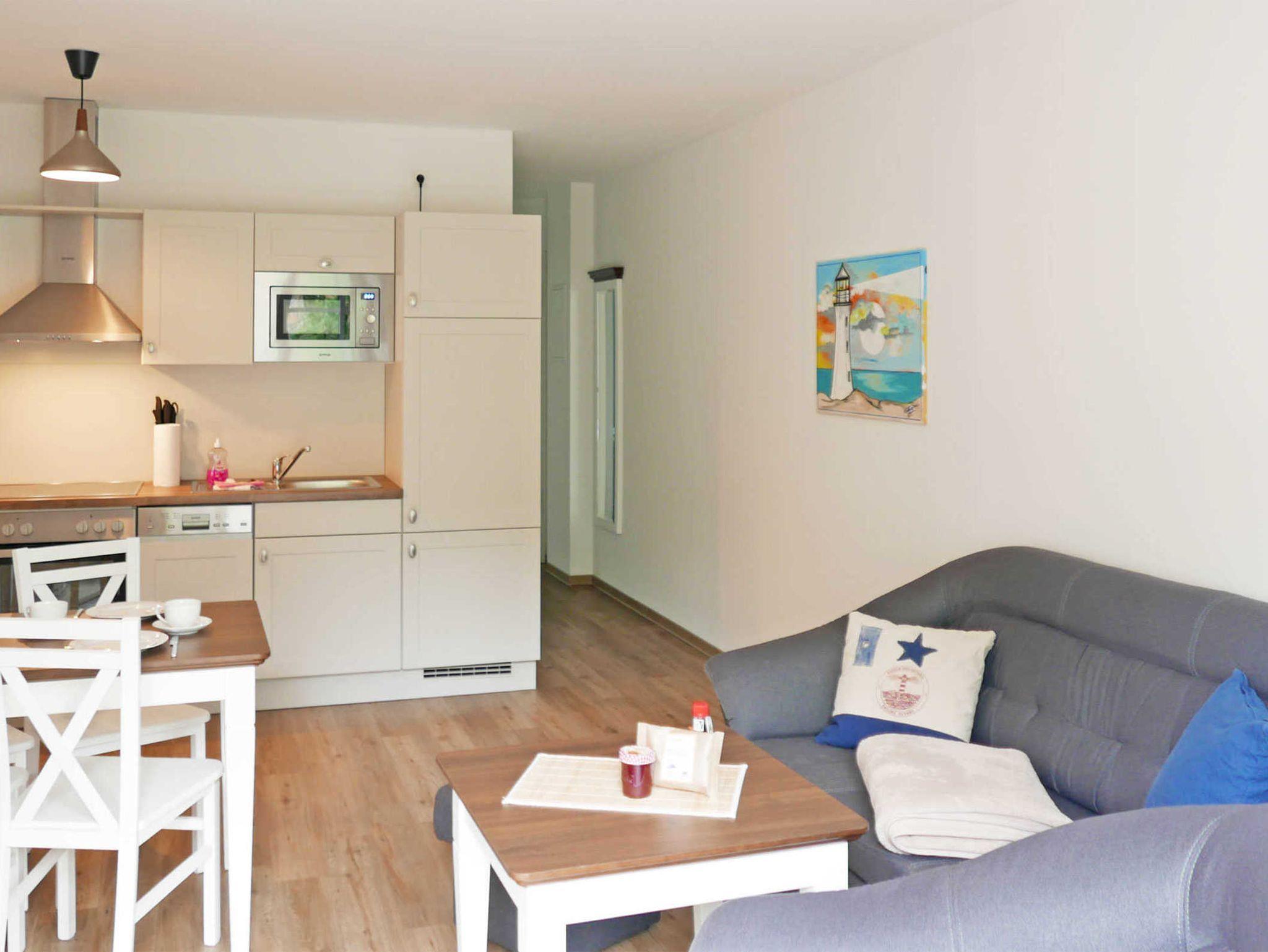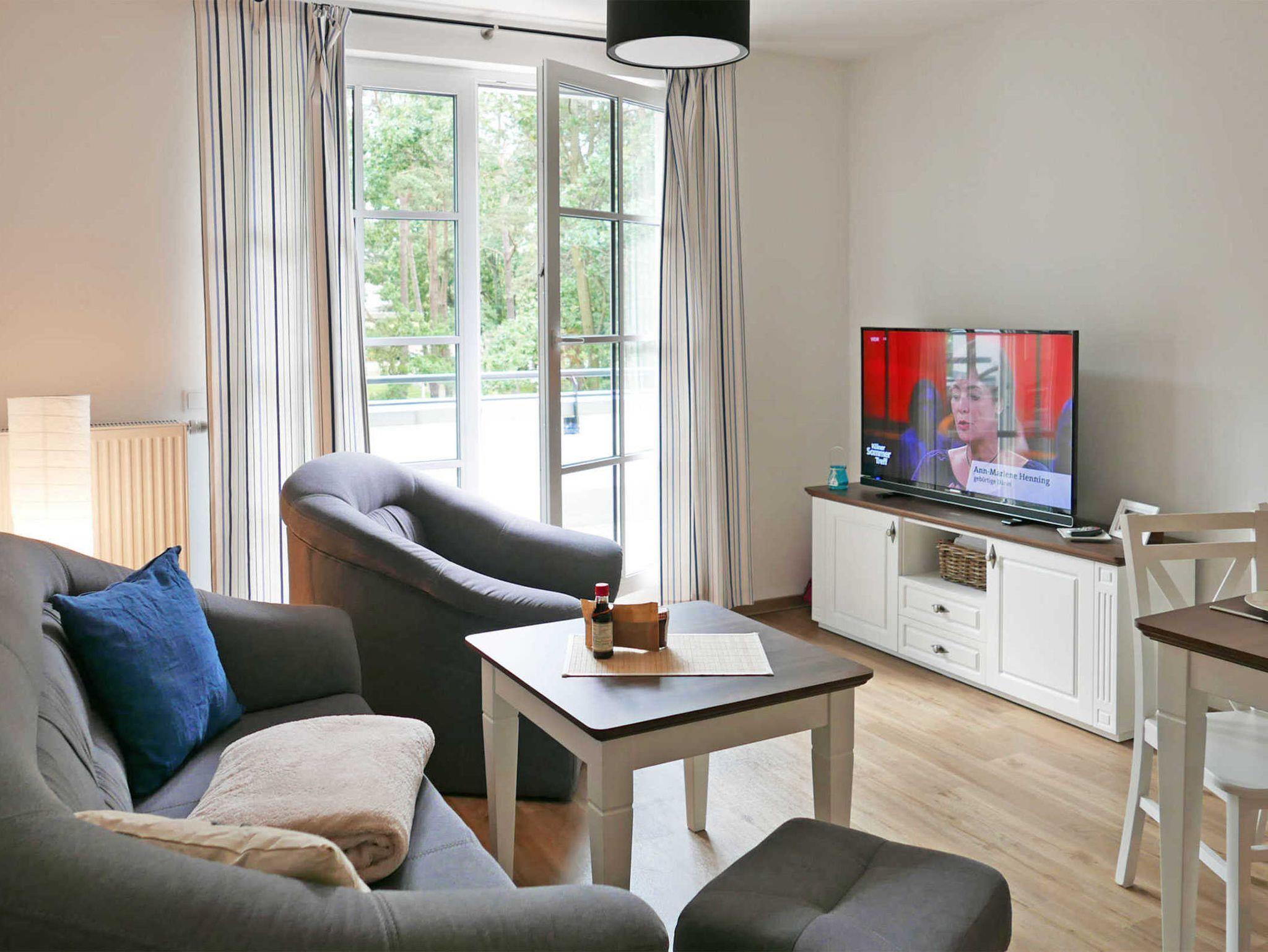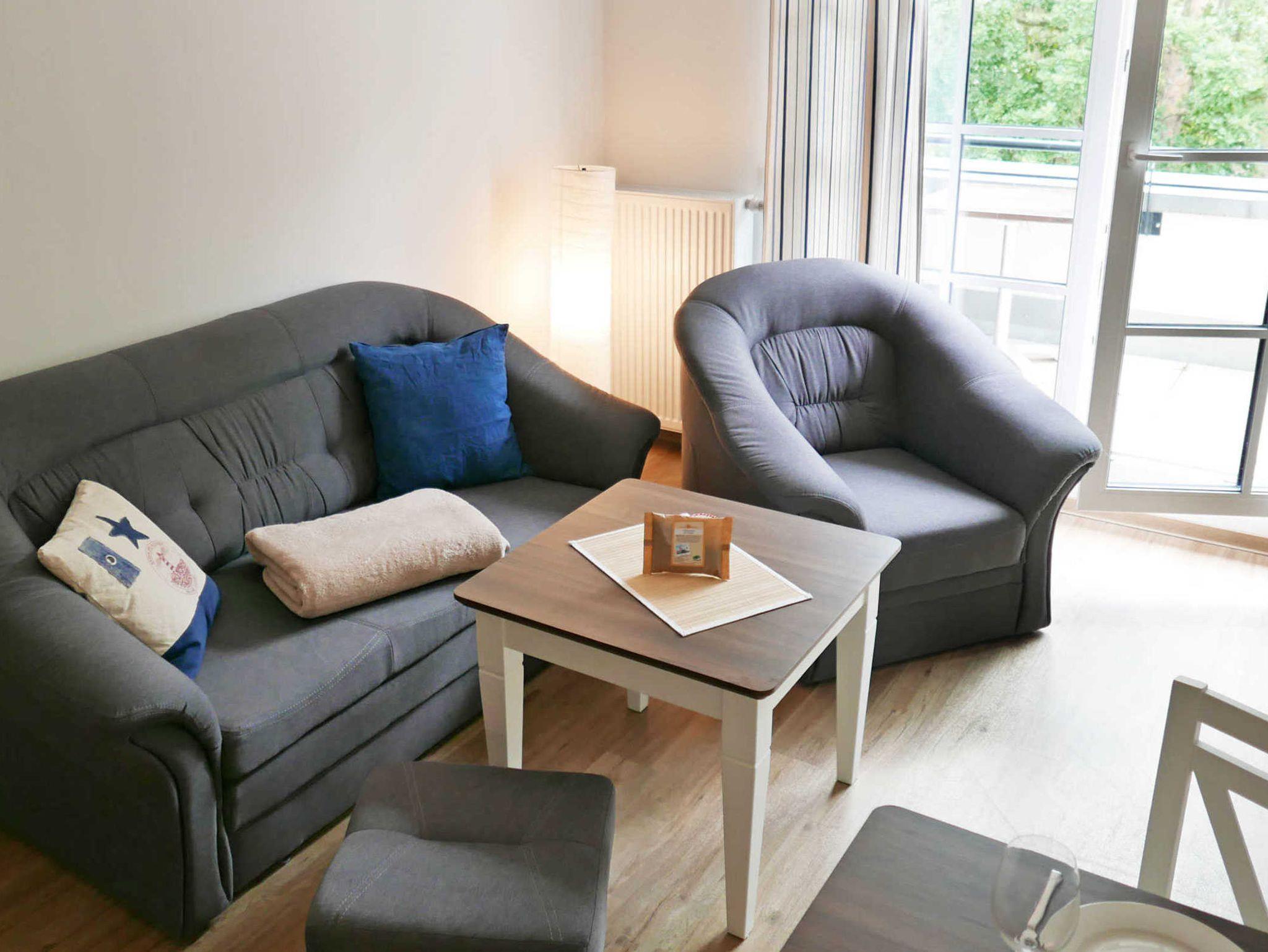 Die Zweizimmerwohnung Jasmund mit Meerblick in der Anlage Inselparadies bietet Platz für bis zu 4 Personen. Sie befindet sich in der 2014 neu erbauten Anlage, zu der auch der restaurierte Mütherbau gehört.