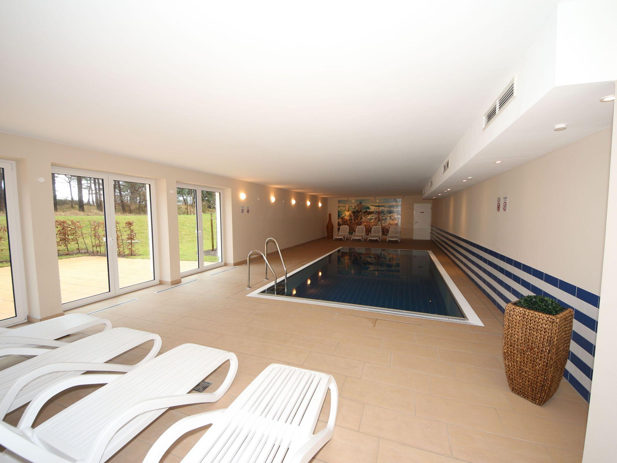 Herzlich Willkommen in unserem exklusiv eingerichteten Appartement Ostseekiesel mit Wellnessbereich und Schwimmbad in direkter Strandlage im schönen Ostseebad Baabe. Unmittelbar an der Ostsee ist die Appartementanlage Haus Meeresblick entstanden. Die weitläufige Ferienanlage besteht aus drei freistehenden Häusern. In der 3. Etage des Hauses A finden Sie unser lichtdurchflutetes Appartement, das Ihre Urlaubsträume wahr werden lässt. Eingebettet in eine besonders schöne Parklandschaft zwischen Kur- und Rhododendrenpark und von Strandkiefern umgeben. Nur wenige Schritte und Sie spüren den herrlichen, feinen Sandstrand unter Ihren Füßen und auch die Strandstraße, die Flaniermeile von Baabe, mit vielen gemütlichen Cafés und kleinen Läden, erreichen Sie nach wenigen Metern. Neben der Lage besticht das Appartement Ostseekiesel durch seine komfortable Einrichtung, den vorhandenen Fahrstuhl, ein Tiefgaragenstellplatz sowie das Schwimmbad und die Saunalandschaft.