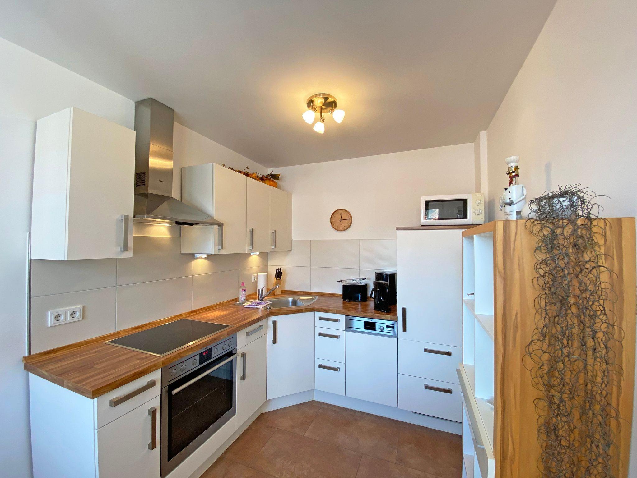 Unser geräumiges ca. 48 qm großes Nichtraucher-Appartement „Ostseekiesel“ befindet sich in der 3. Etage und ist für max. 2 Erwachsene + 1 Kleinkind bis 3 Jahre im Kinderreisebett geeignet. Sie finden hier einen kombinierten Wohn- und Essbereich mit offener Küchenzeile. Diese ist voll ausgestattet mit Cerankochfeld, Backofen, Spülmaschine, Kühl-/Gefrierkombination, Mikrowelle, eine Kaffeemaschine, eine Tassimo Kapselmaschine, ein Toaster, ein Wasserkocher sowie weiteren diversen Küchenutensilien. Der lichtdurchflutete und offene Wohnbereich mit seinen großen Fensterfronten bietet Ihnen eine gemütliche Eckcouch + Hocker, eine Leselampe, ein Regal mit Urlaubslektüre sowie Gesellschaftsspiele, ein TV-Board mit LED-TV, eine Musikanlage mit DAB-Radio von Teufel sowie einen WLAN-Anschluss, welcher für Sie inklusive ist. Von hier gelangen Sie auf den bestuhlten Balkon, welcher Richtung Südosten ausgerichtet ist. Im Schlafzimmer befindet sich ein Doppelbett (1,80m x 2,00m), Nachttischablagen sowie einen großen Kleiderschrank. Für einen ruhigen Schlaf sorgen eine Verdunklungsmöglichkeit sowie ein Insektenschutzgitter. Das innenliegende Badezimmer wird durch eine ebenerdige Dusche, einen Waschtisch, ein WC, einen Handtuchtrockner, einen Kosmetikspiegel und einen Fön abgerundet. Im kleinen zusätzlichen Abstellraum befinden sich zusätzlich nützliche Utensilien wie z.B. Reinigungsutensilien sowie ein Wäscheständer. Für unsere kleinen Gäste steht Ihnen ein Kinderreisebett (ohne Matratze) sowie ein Hochstuhl inklusive zur Verfügung. Haustiere sind in der Wohnung nicht erlaubt. Eine Waschmaschine und ein Trockner stehen Ihnen im Keller des Hauses gegen eine Gebühr zu Verfügung. Mit dem Fahrstuhl des Hauses A gelangen sie in das Untergeschoss der Meeresblickanlage, wo Sie ein großzügiger und heller Wellnessbereich erwartet. Hier können sie in einem Pool kleine Bahnen schwimmen, in 2 Saunen Ihren Kreislauf in Schwung bringen, in einem dazugehörigen Ruheraum Ihren Körper wieder beruhigen, in einer Schneckendusche sowie weiteren Duschen das kühle Nass genießen und auf einer Außenterrasse mit Außendusche die frische Luft einatmen. Ein PKW-Stellplatz (Nr.118, Einfahrtshöhe 2,00m) ist für Sie in der Tiefgarage reserviert. Die Erstausstattung eines Wäschepaketes (komplette Bettwäsche, 1 Duschhandtuch, 2 kleine Handtücher) können Sie bis 14 Tage vor Anreise gegen einen Aufpreis dazu buchen oder durch eigene ergänzen. Ab 2 gebuchten Paketen erhalten Sie einmalig 1 Geschirrhandtuch und 1 Duschvorleger hinzu.