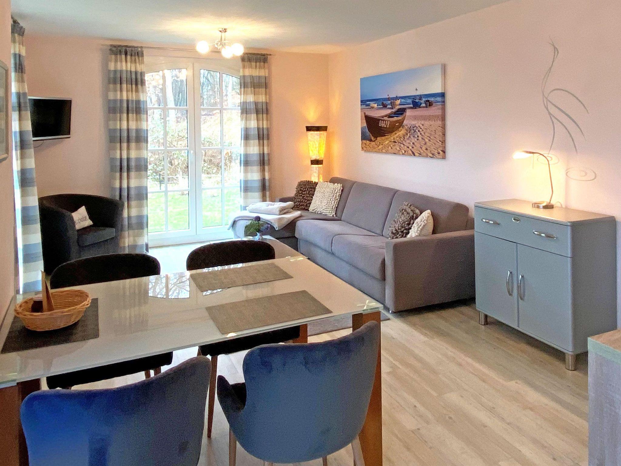 Moderne Ferienwohnung mit Terrasse, Strandkorb und Wellnessbereich nahe Strand und Promenade in Baabe.