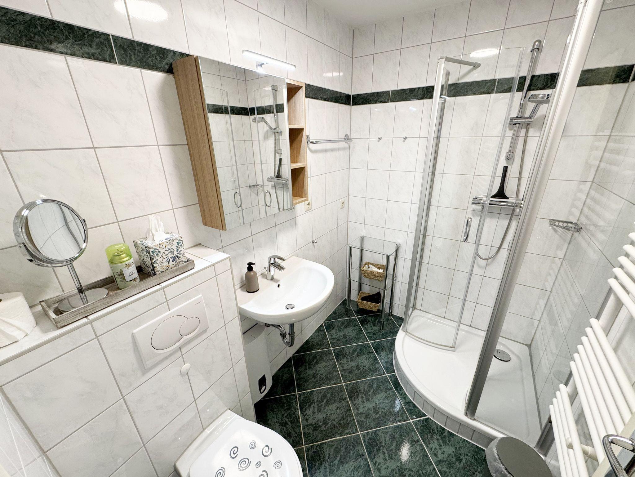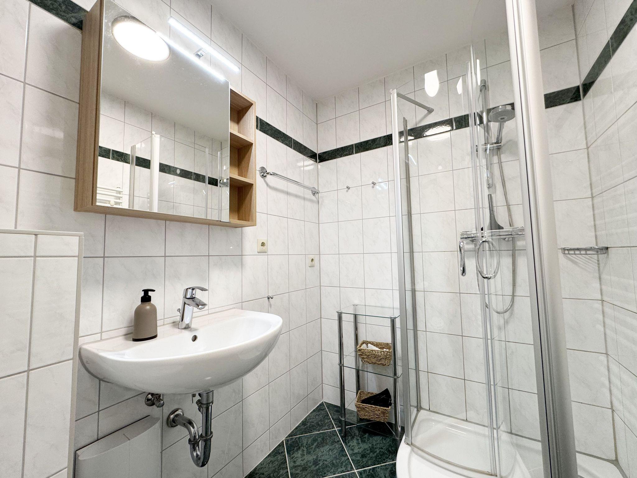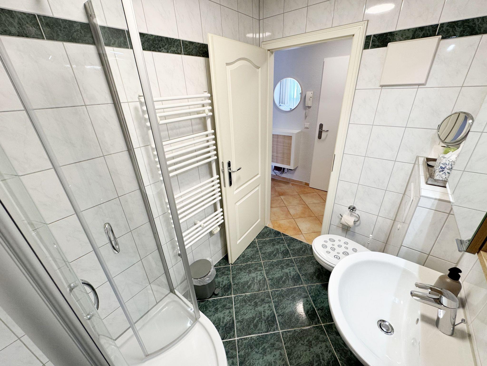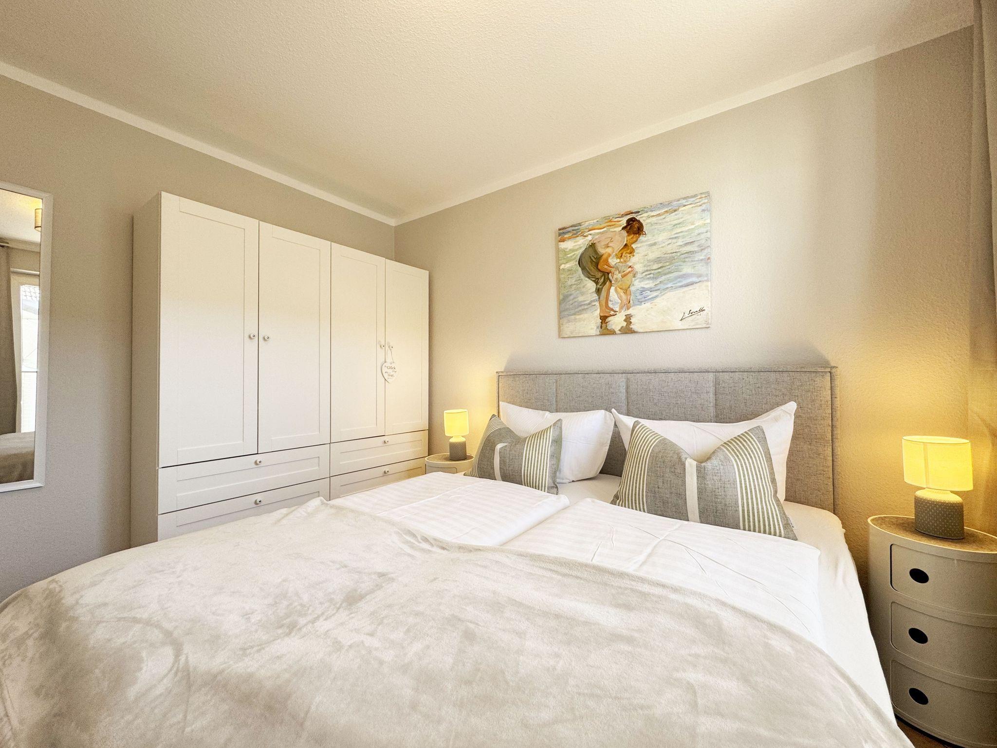 Etwa 300 m vom feinsandigen Ostseestrand und in unmittelbarer Nähe zur Strandstraße liegt das Appartement Wohnung 16 Clothilde in der 2. Etage eines erbauten Hauses. Nach Ankunft kann das Reisegepäck bequem via Aufzug zur Wohnung befördert werden. Das lichtdurchflutete und modern eingerichtete 2-Raumappartement für max. 2 bis 3 Erwachsene lässt kaum Wünsche offen. Der Wohnraum ist mit einer bequemen Schlafcouch (Aufbettung 3. Person / 1,37m x 2,00m), Sideboard, Vitrine und Verdunklungsmöglichkeit ausgestattet. Zu Ihrer Unterhaltung stehen Ihnen ein Smart-TV, sowie eine Mini-Stereo-Anlage, eine Spielesammlung und Urlaubslektüre zur Verfügung. Eine moderne Küchenzeile von Nolte mit Induktionskochfeld, Backofen mit integrierter Mikrowellenfunktion, Spülmaschine, Kühlschrank mit Gefrierfach, Toaster, Kaffeemaschine, Wasserkocher, Tassimo Kapselmaschine, und weitere Küchenutensilien wurde mit einem separaten Esstisch in den Wohnbereich integriert. Der separate Schlafraum ist mit einem Boxspringbett (2 x 0,90 m x 2,00 m/ H3), Kleiderschrank mit Spiegel, Nachtischkonsolen bestückt und kann zusätzlich abgedunkelt werden. Besonderen Komfort bietet das Badezimmer mit einer extragroßen Eckdusche, Kosmetikspiegel, Fön, Waschtisch und WC. Ein 5 m x 2 m großer, bestuhlter und nach Süden ausgerichteter Balkon lädt zu ausgiebigen Sonnenbädern bis in die Abendstunden ein. Alle Räumlichkeiten sind gefließt. Gern können Sie Ihre eigenen Fahrräder sicher im eigenen Kellerraum Nr. 16 verschließen. Ein WLAN-Zugang steht Ihnen inklusive zur Verfügung. Für Ihren PKW ist ein eigener zum Appartement gehörender Aussenstellplatz Nr.: 16 Clothilde ohne Mehrkosten bereits inbegriffen. Haustiere sind nicht erlaubt. Die Erstausstattung eines Wäschepaketes (komplette Bettwäsche, 1 Duschhandtuch, 2 kleine Handtücher) können Sie bis 14 Tage vor Anreise gegen einen Aufpreis dazu buchen oder durch eigene ergänzen. Ab 2 gebuchten Paketen erhalten Sie einmalig 1 Geschirrhandtuch und 1 Duschvorleger dazu.