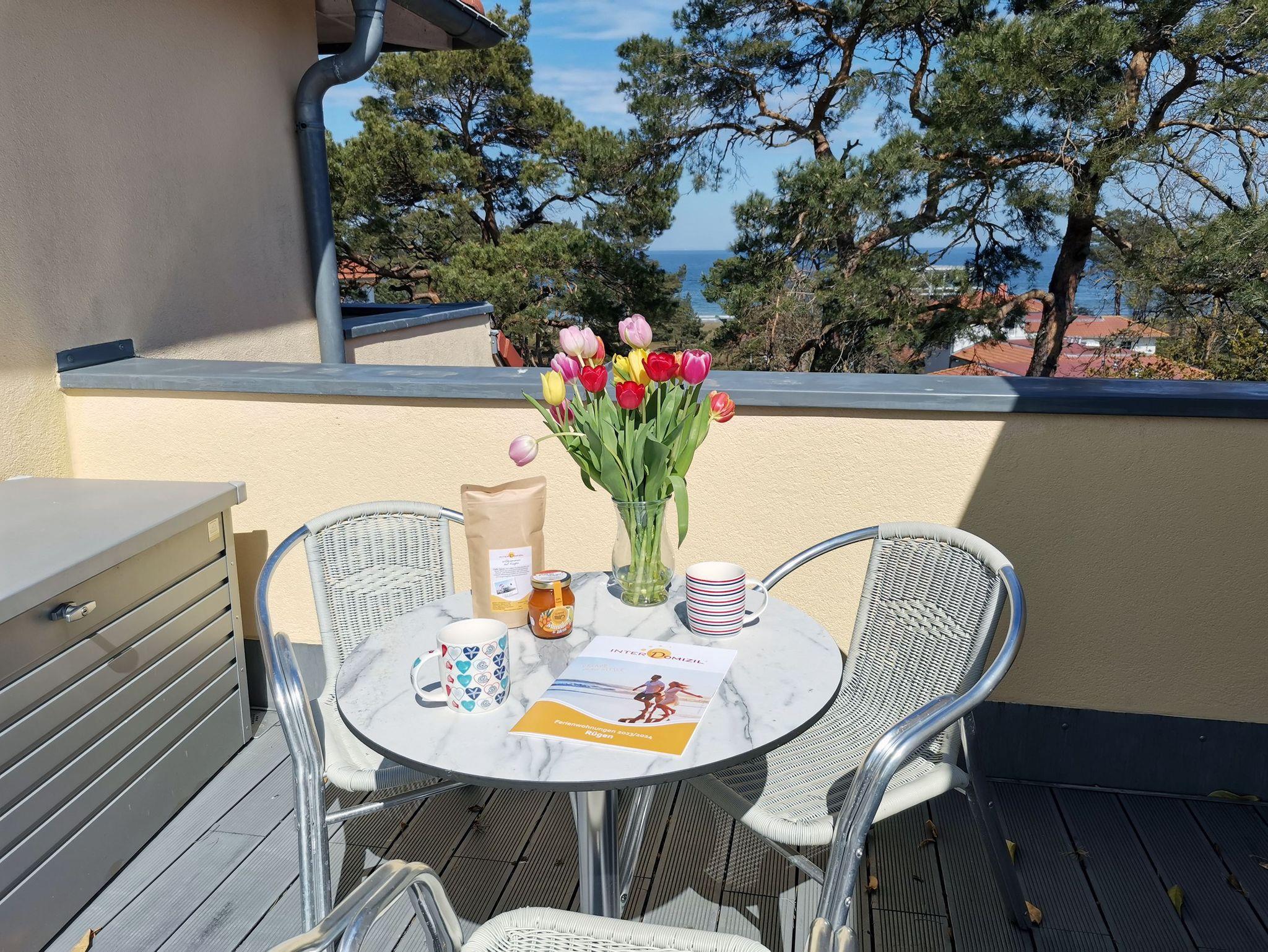 Exklusive Ferienwohnung in Baabe mit Dachterrasse, Ostseeblick, Sauna und direkter Strandlage für erholsame Urlaubstage.