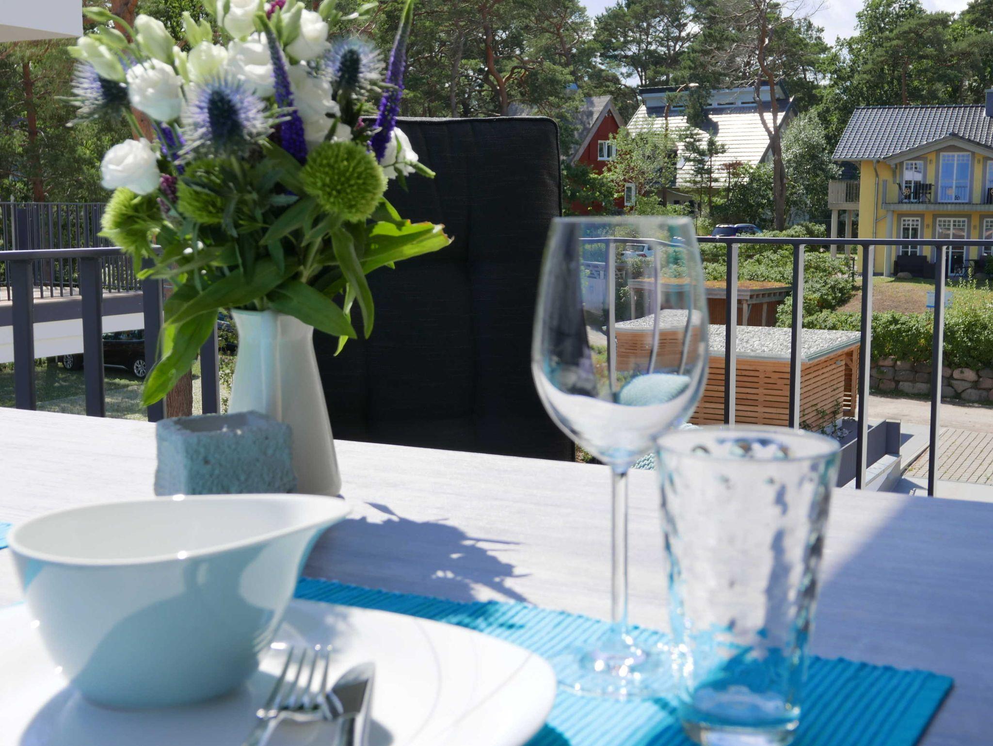 Exklusive Ferienwohnung mit Meerblick, Balkon, Sauna und Parkplatz im Villen-Ensemble Baabe an der Ostsee.