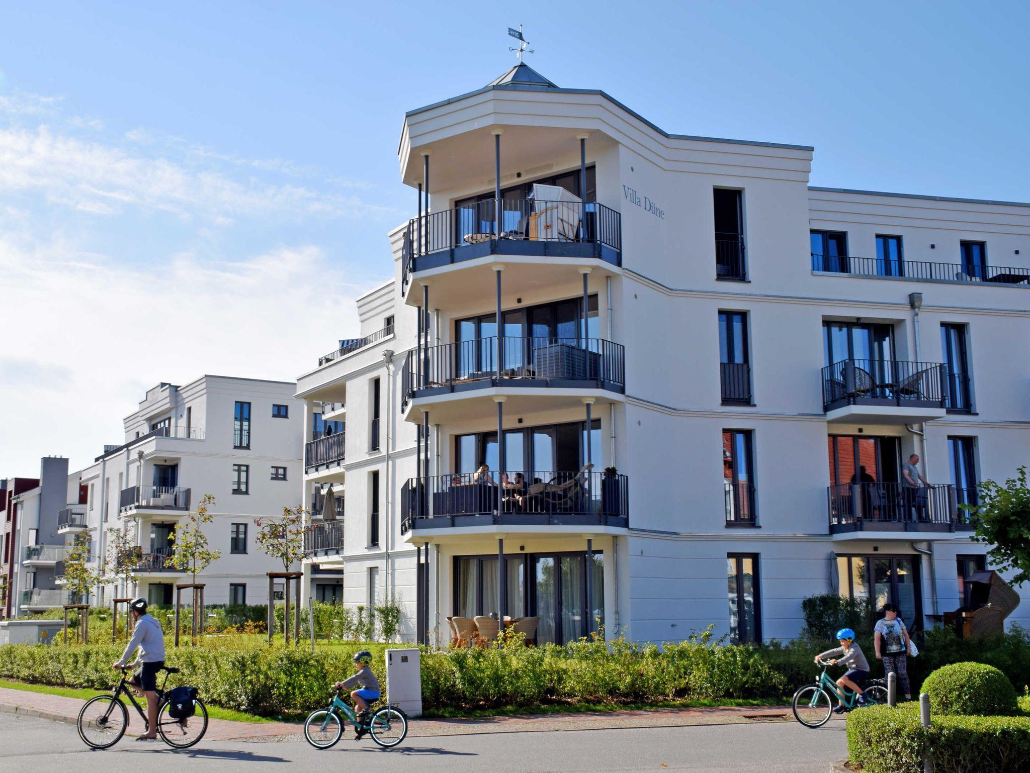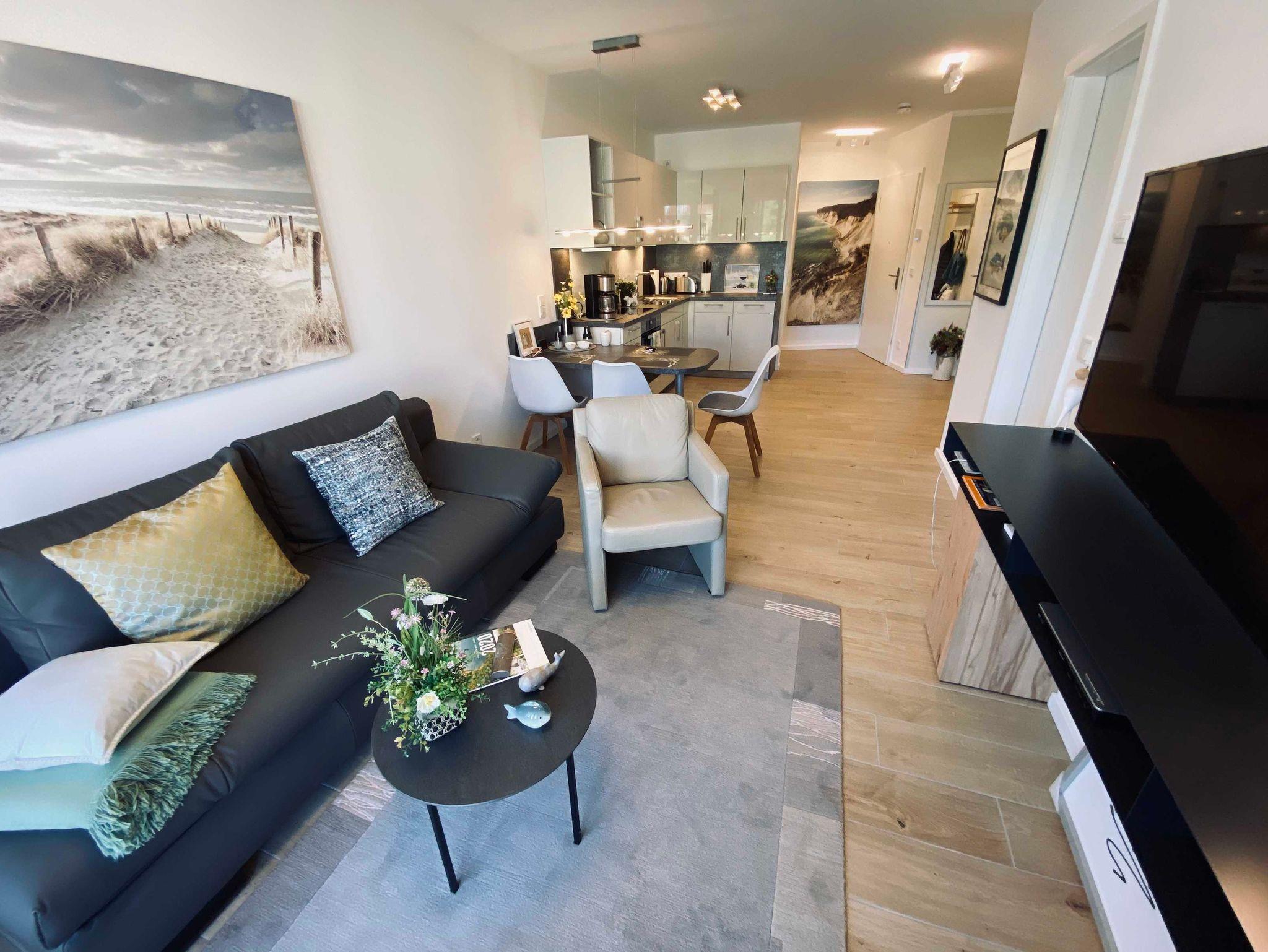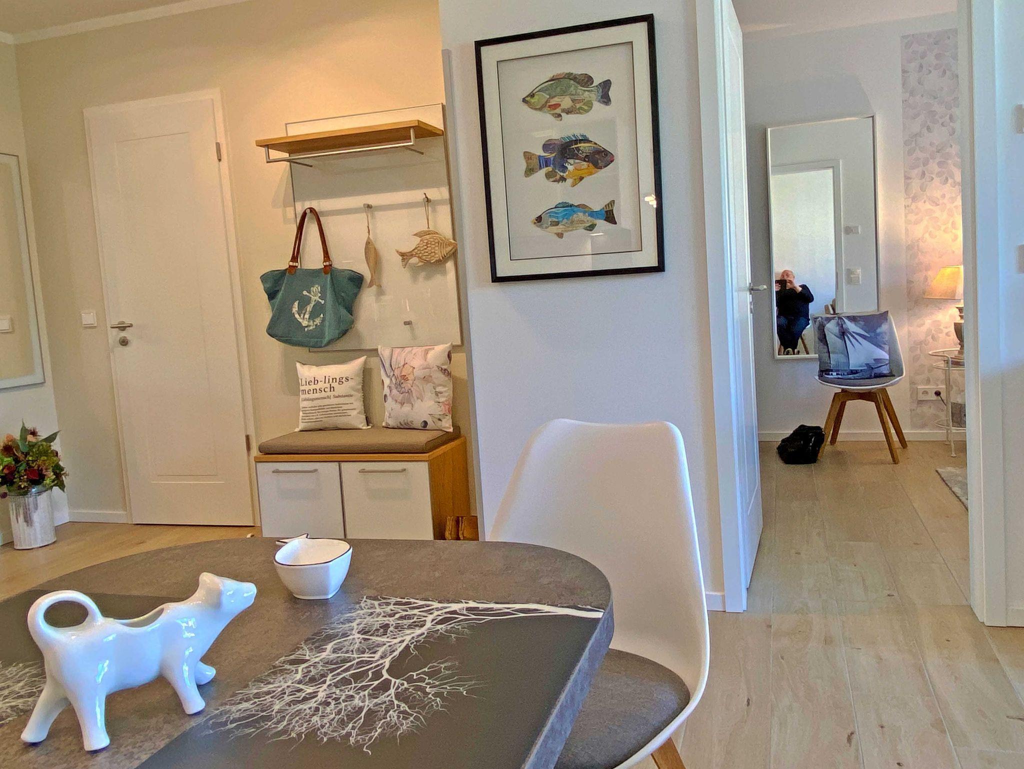 Unsere modern und sehr gut ausgestattete Ferienwohnung mit Meerblick und überdachtem Balkon liegt in der ersten Etage eines neu errichteten Appartementhauses.