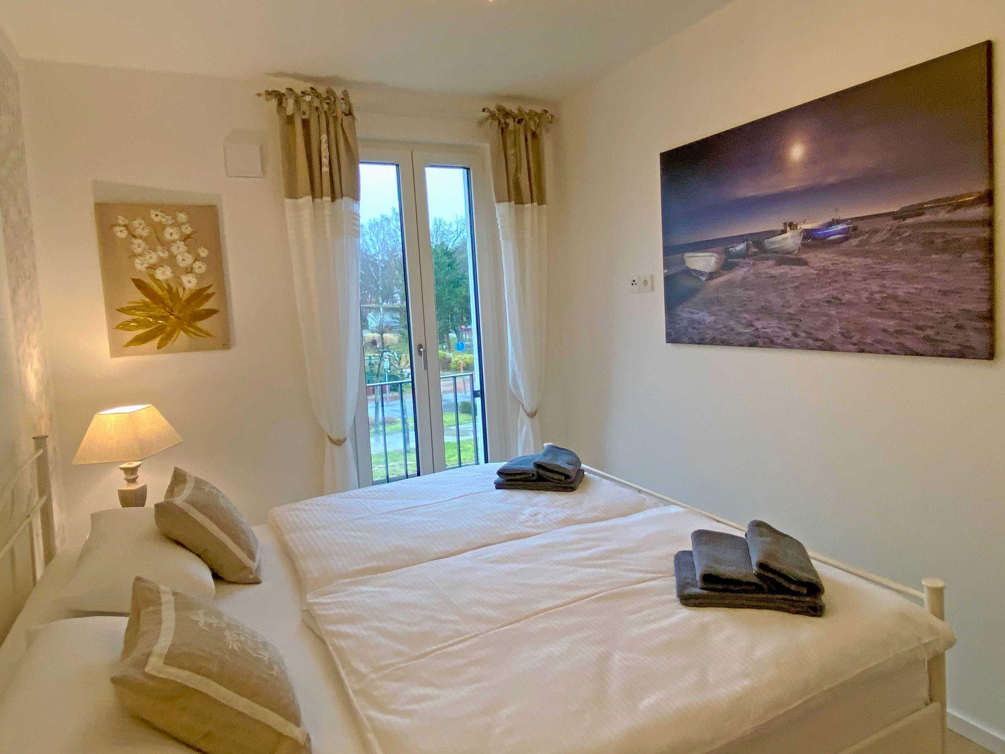 Moderne Ferienwohnung in Baabe mit Meerblick, Balkon, Sauna und nur 100 m vom Ostseestrand entfernt.