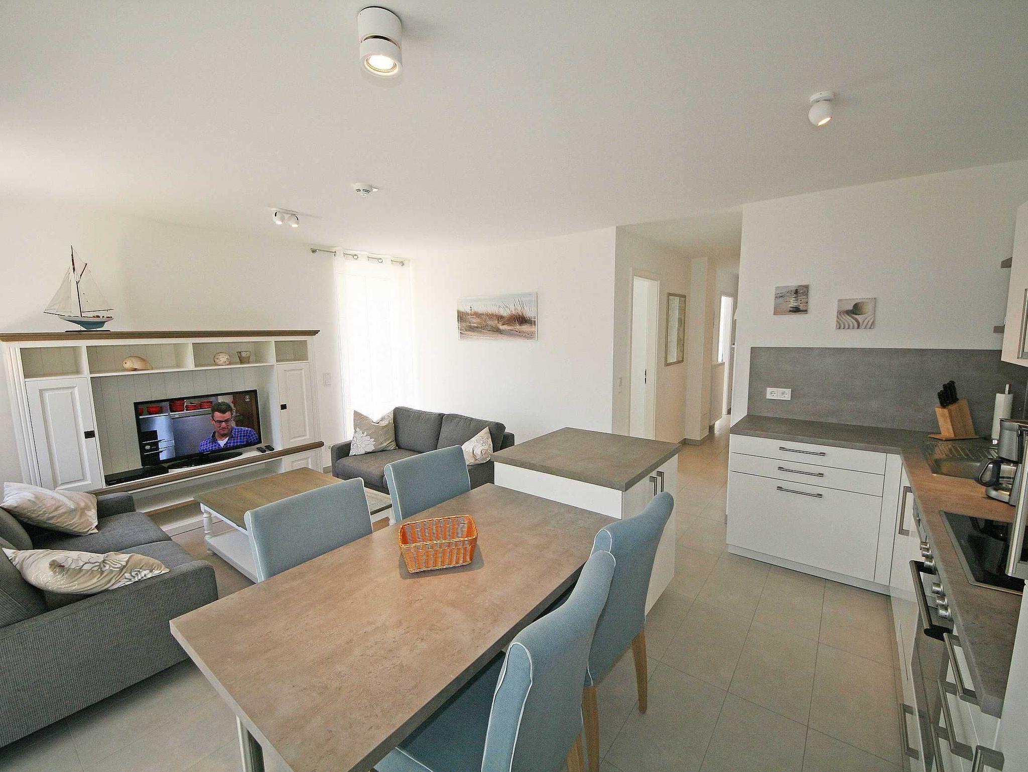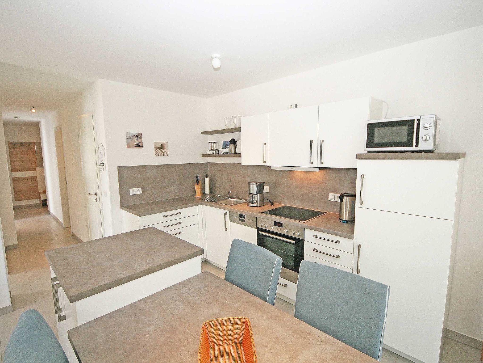 Herzlich Willkommen in Ihrer Ferienwohnung C 0.01 Dünenblick im Haus C in der Appartementanlage Meeresblick. Es erwartet Sie eine helle, freundliche, mit Liebe zum Detail eingerichtete 3-Zimmer-Erdgeschosswohnung direkt am Meer. Die Nichtraucherwohnung ist als Allergiker Freundlich einzustufen, da der Fußboden komplett gefliest und Haustiere in der Wohnung nicht erlaubt sind. Die ca. 75 qm große Wohnung ist ideal für 2 bis 4 Personen geeignet. In dem kombinierten Wohn- und Essbereich finden Sie eine moderne Küchenzeile mit diversen Markengeräten. Ein 4-Zonen-Cerankochfeld, Backofen, Mikrowelle, Geschirrspüler, Kühlschrank mit Gefrierfach, Wasserkocher, Toaster, Kaffeemaschine, Senseo Padmaschine und diverse Küchenutensilien lassen beim Kochen keine Wünsche offen. Abgerundet wird der Wohnbereich mit 2 Couchen, Leselampe, Smart-TV, Blue Ray-Player, Musikanlage mit DAB-Radio und einem Essbereich mit Esstisch und Blick auf die Ostterrasse (Morgensonne). Bei schönem Wetter genießen Sie von der Ost- und Südterrasse den ganzen Tag den Sonnenschein und können das Meer und den Strand direkt vom Wohnzimmer aus erreichen. Ein Strandkorb auf der Terrasse bietet Ihnen Windschutz. Der Schlafbereich der Wohnung besteht aus 2 separaten Schlafzimmern, eines mit einem Doppelbett (1,80m x 2,00m) und ein Kojenbett (0,90m x 2,00m). Eines der Schlafzimmer verfügt über einen zusätzlichen Flachbild-TV. Im Badbereich finden Sie eine ebenerdige Dusche mit den Maßen (0,80 m x 1,30 m), Waschtisch, Fön sowie ein WC. Abgerundet wird das Duschbad durch einen beheizbaren Handtuchtrockner und einen Fön. Auf einen Internetanschluss müssen Sie im Urlaub nicht verzichten. Die Wohnung verfügt über einen WLAN-Anschluss, der Ihnen kostenfrei zur Verfügung gestellt wird. Insektenschutzgitter befinden sich zusätzlich an den Fenstern. Einen Stellplatz für den PKW finden Sie in der Tiefgarage, Stellplatz Nr. 27 (Einfahrtshöhe 2,00m). Der Parkplatz Nr. 83 dient Ihnen als Fahrradstellplatz. Von hier aus gelangen Sie bequem mit dem Fahrstuhl in das Haus C zu Ihrer Wohnung. Im Keller des Hauses haben Sie die Möglichkeit eine Waschmaschine/Trockner gegen Gebühr zu nutzen. Für unsere kleinen Gäste steht 1x Kinderhochstuhl inklusive zur Verfügung. Mit dem Fahrstuhl des Hauses A gelangen sie in das Untergeschoss der Meeresblickanlage, wo Sie ein großzügiger und heller Wellnessbereich erwartet. Hier können sie in einem Pool kleine Bahnen schwimmen, in 2 Saunen Ihren Kreislauf in Schwung bringen, in einem dazugehörigen Ruheraum Ihren Körper wieder beruhigen, in einer Schneckendusche sowie weiteren Duschen das kühle Nass genießen und auf einer Außenterrasse mit Außendusche die frische Luft einatmen. Die Erstausstattung eines Wäschepaketes (komplette Bettwäsche, 1 Duschhandtuch, 2 kleine Handtücher) können Sie bis 14 Tage vor Anreise gegen einen Aufpreis dazu buchen oder durch eigene ergänzen. Ab 2 gebuchten Paketen erhalten Sie einmalig 1 Geschirrhandtuch und 1 Duschvorleger dazu.