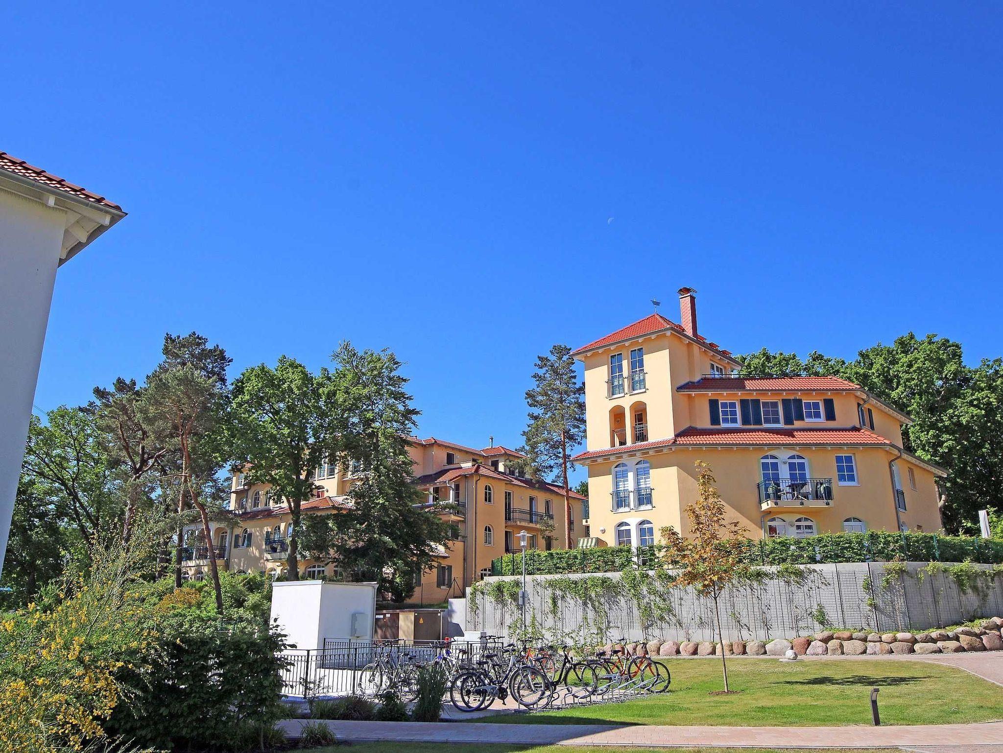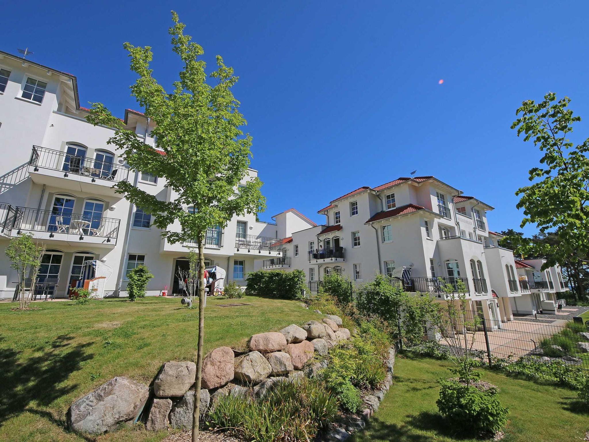 Unmittelbar am Kurpark des Ostseebades Baabe, umgeben von Kiefern befindet sich die neue Appartementanlage Meeresblick. Die Ferienanlage besteht aus 3 freistehenden Häusern und ist nur ca. 80 Meter vom feinen Sandstrand entfernt. An die hiesige Bäderarchitektur angelehnt fügt sich die Meeresblickanlage wohltuend in die Umgebung ein. Die Ferienwohnungen verfügen über einen hohen Komfort und lassen Ihren Urlaubstraum wahr werden. Im Haupthaus A befindet sich ein Wellnessbereich mit Innenpool, Sauna und Ruheraum (inklusive) der zur Entspannung einlädt. Eine hauseigene Tiefgarage sorgt dafür, dass Ihr PKW sicher untergebracht ist. Cafés und Restaurants laden in der Anlage zum Verweilen ein. Ein weiteres Highlight ist der Müther Schalenbau (Restaurant Inselparadies Baabe), welches saniert, restauriert und in die Meeresblickanlage liebevoll integriert wurde. Von hier aus haben Sie einen fantastischen Blick auf die weite Ostsee. Die Wohnung (C 0.01) Dünenblick befindet sich im Haus C im Erdgeschoss und sticht mit Ihrer Terrasse mit Blick Richtung Ostsee hervor.