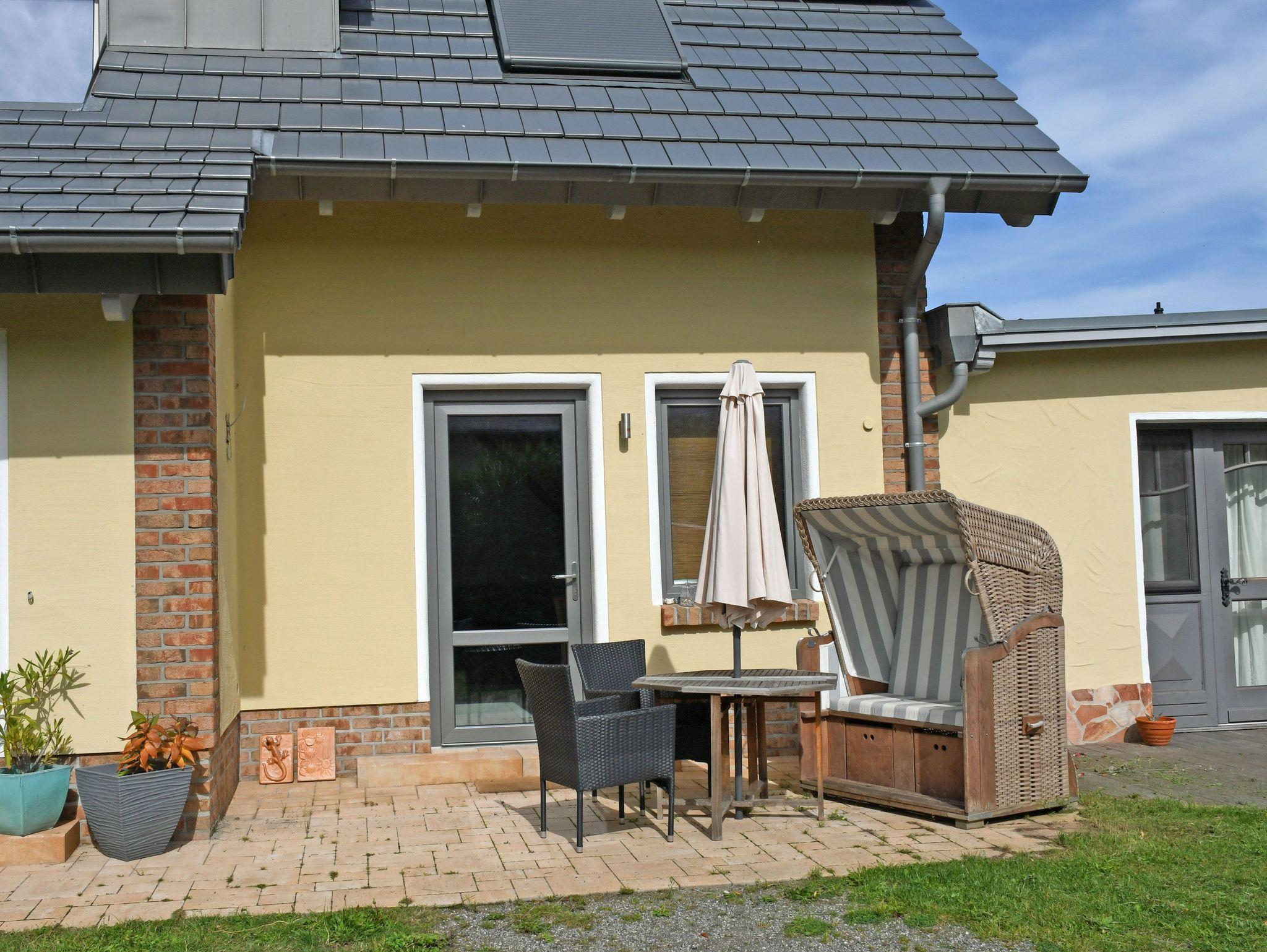 Moderne Maisonette-Ferienwohnung in Baabe mit Terrasse, WLAN, Garten, Strandkorb und E-Ladestation für entspannten Ostseeurlaub.