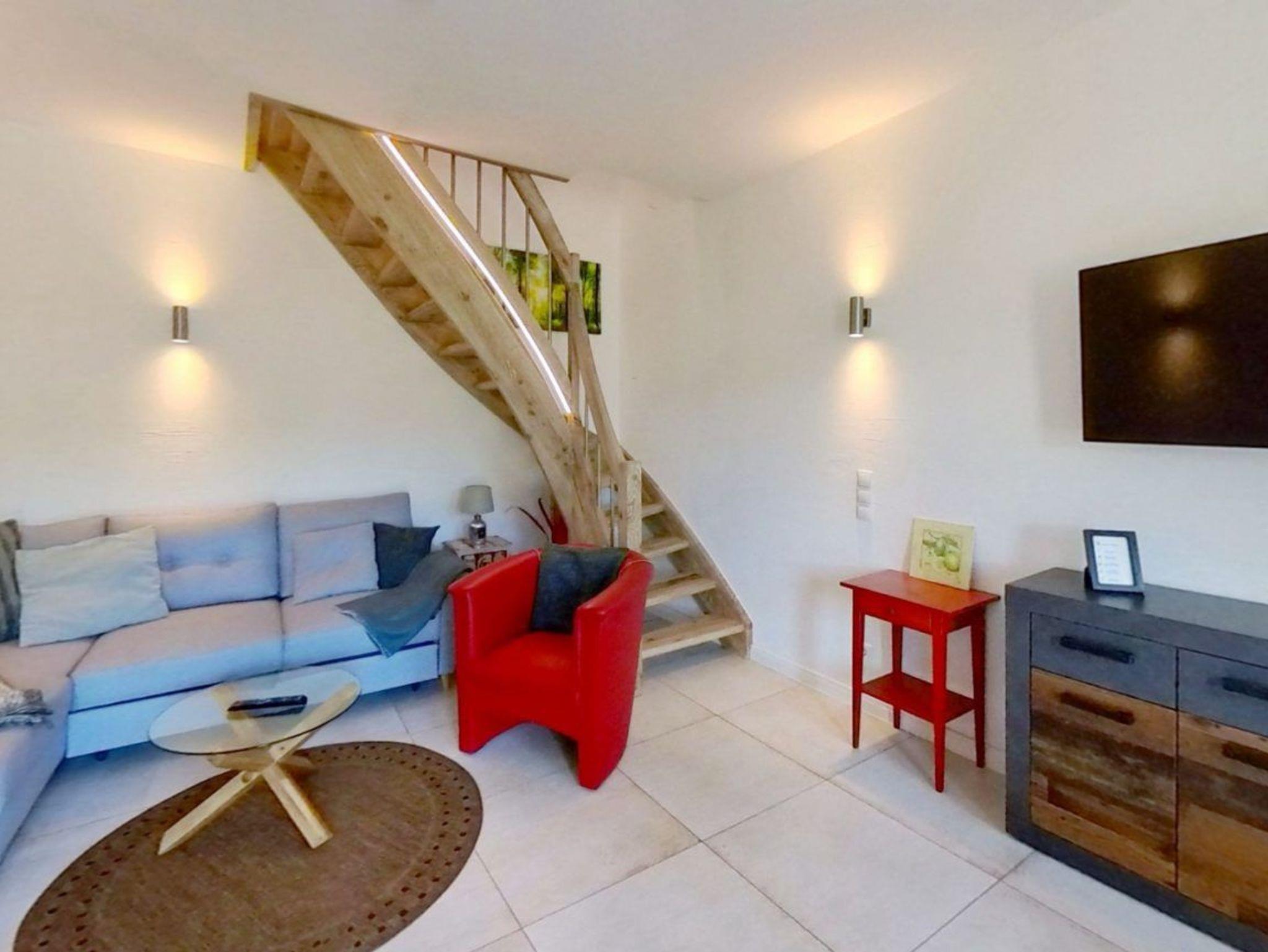 Die Ferienwohnung erstreckt sich über zwei Etagen und bietet eine durchdachte Raumaufteilung für maximalen Komfort.