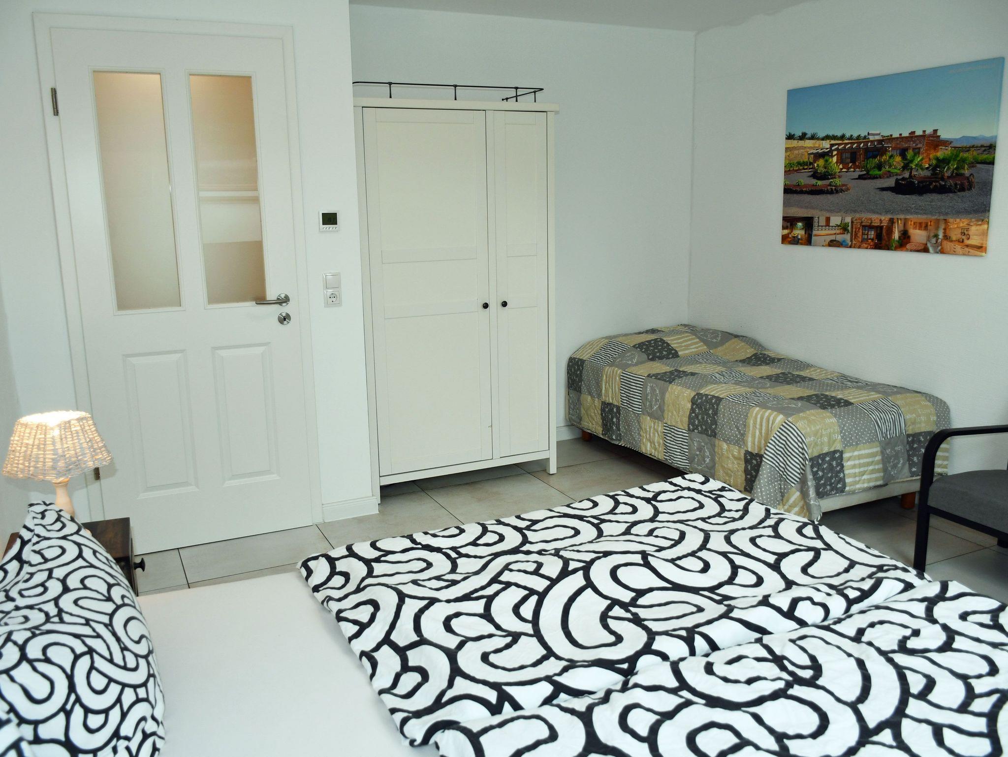 Im ersten Obergeschoss finden Sie ein gemütliches Schlafzimmer, das mit drei Betten und Flachbild-TV ausgestattet ist. Es bietet ausreichend Platz für erholsame Nächte und einen ruhigen Rückzugsort.