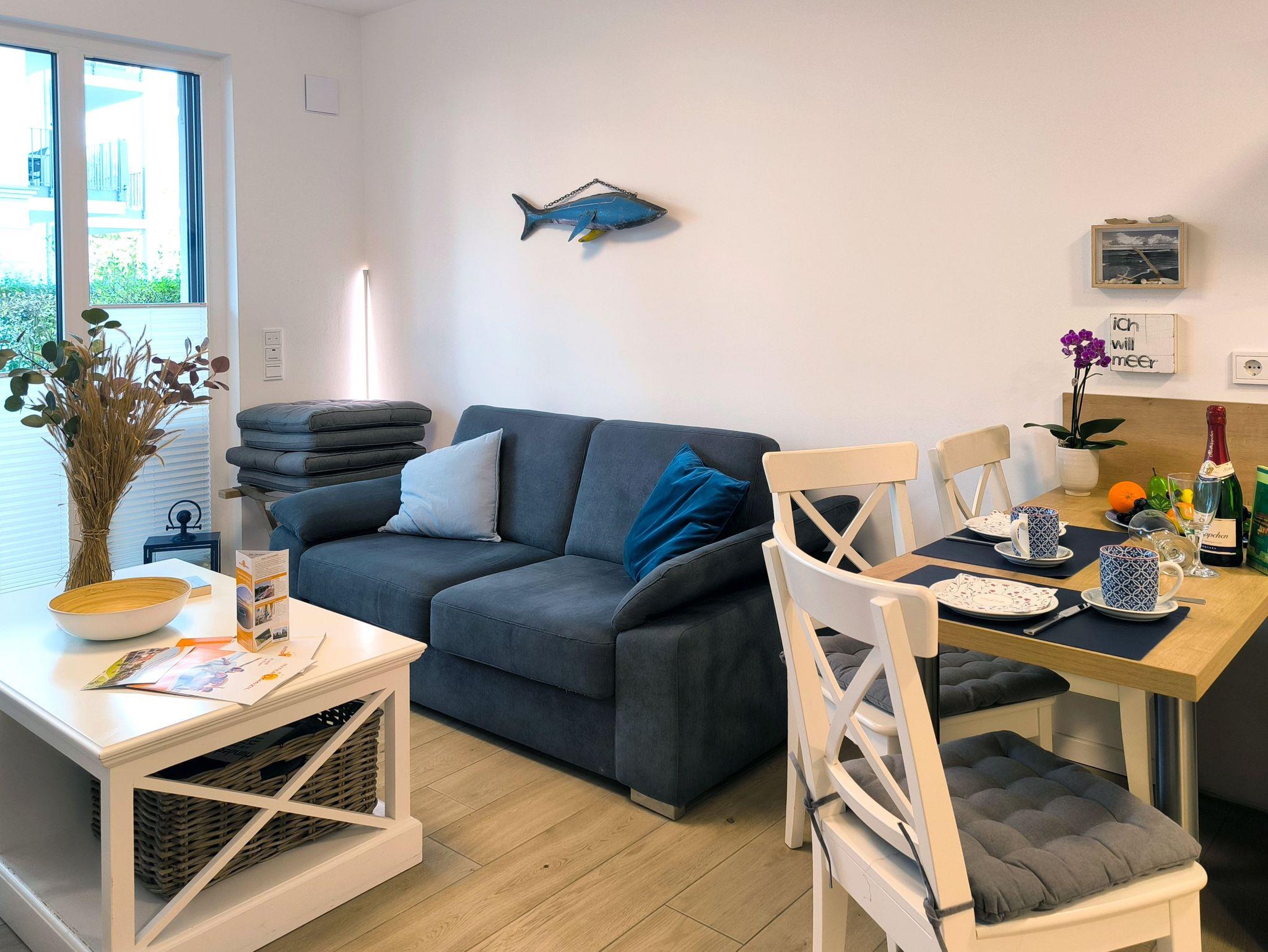 Kleine, moderne und hell eingerichtete Ferienwohnung im Erdgeschoss des 2019 neu eröffneten Villen-Ensemble. Genießen Sie den zur Wohnung gehörenden kleinen Garten und die direkte Nähe zum Strand und Meer.