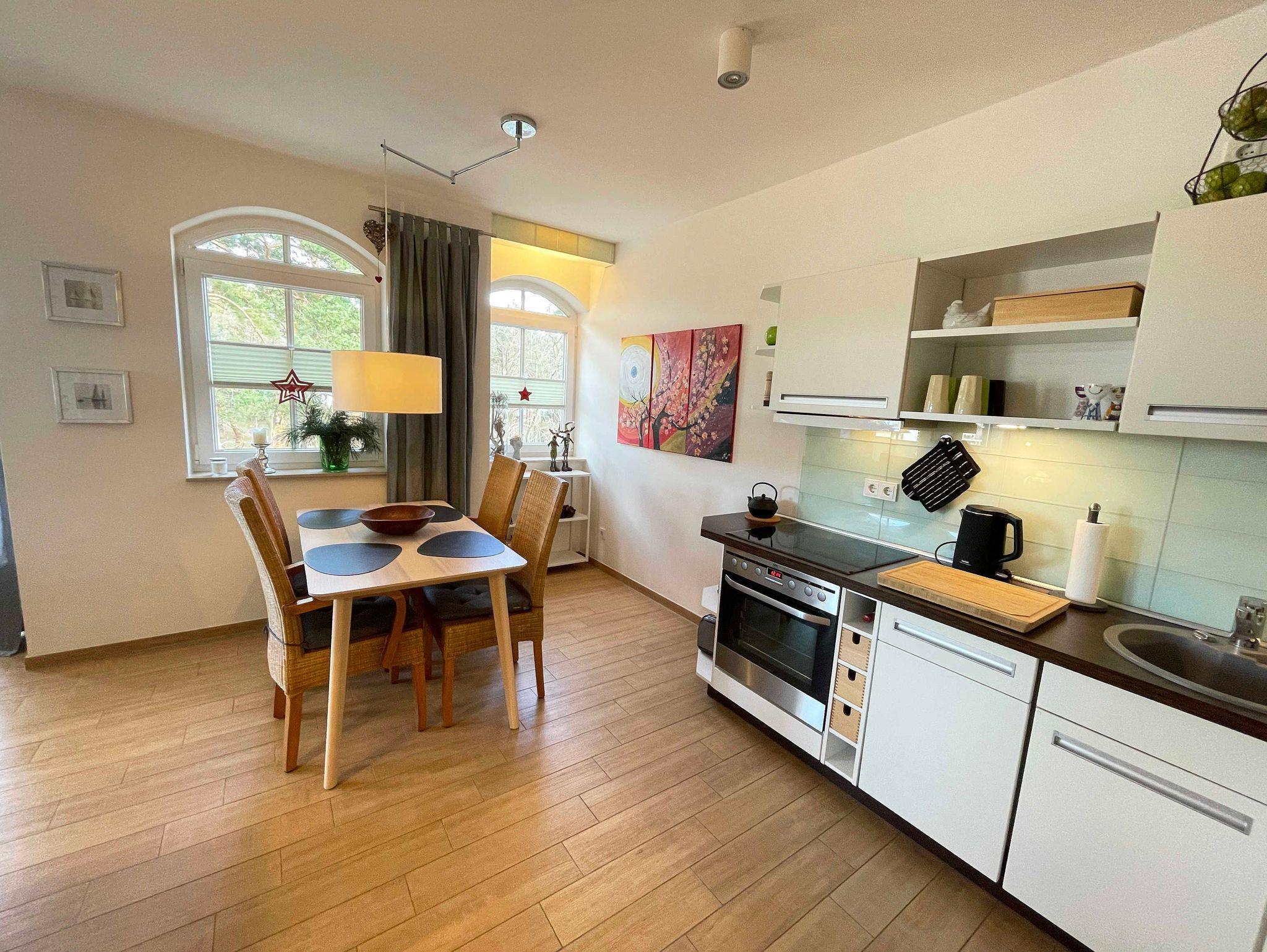 Komfortables Nichtraucher-Apartment mit Balkon, nur 100 m vom feinen Sandstrand in Baabe entfernt.