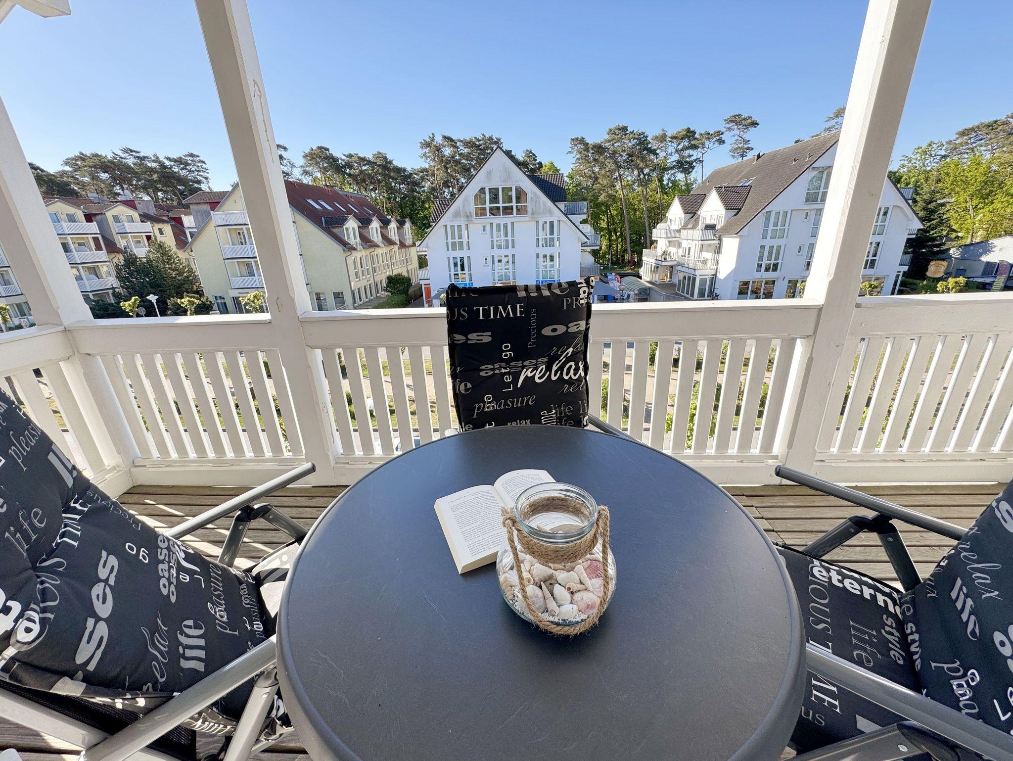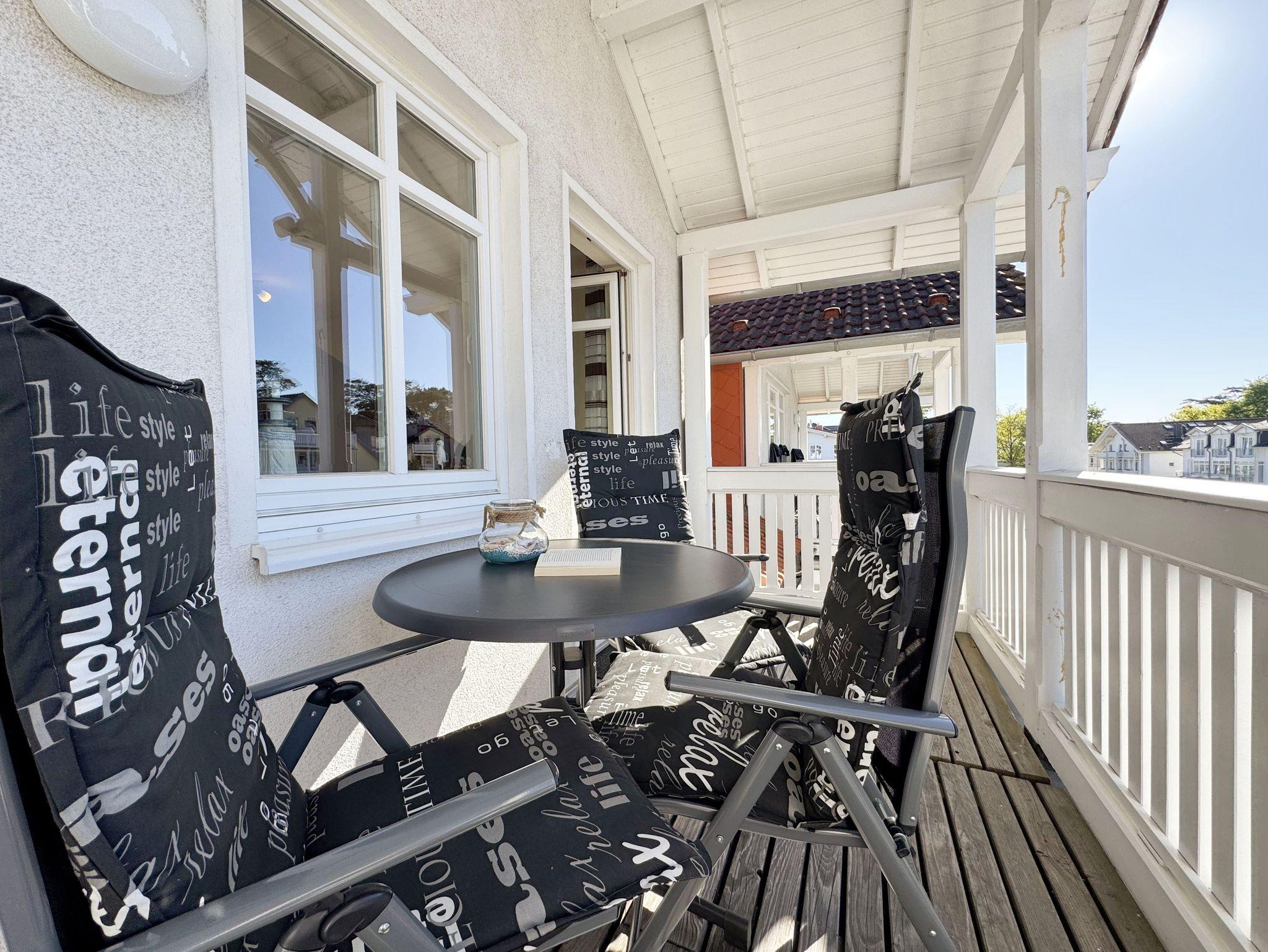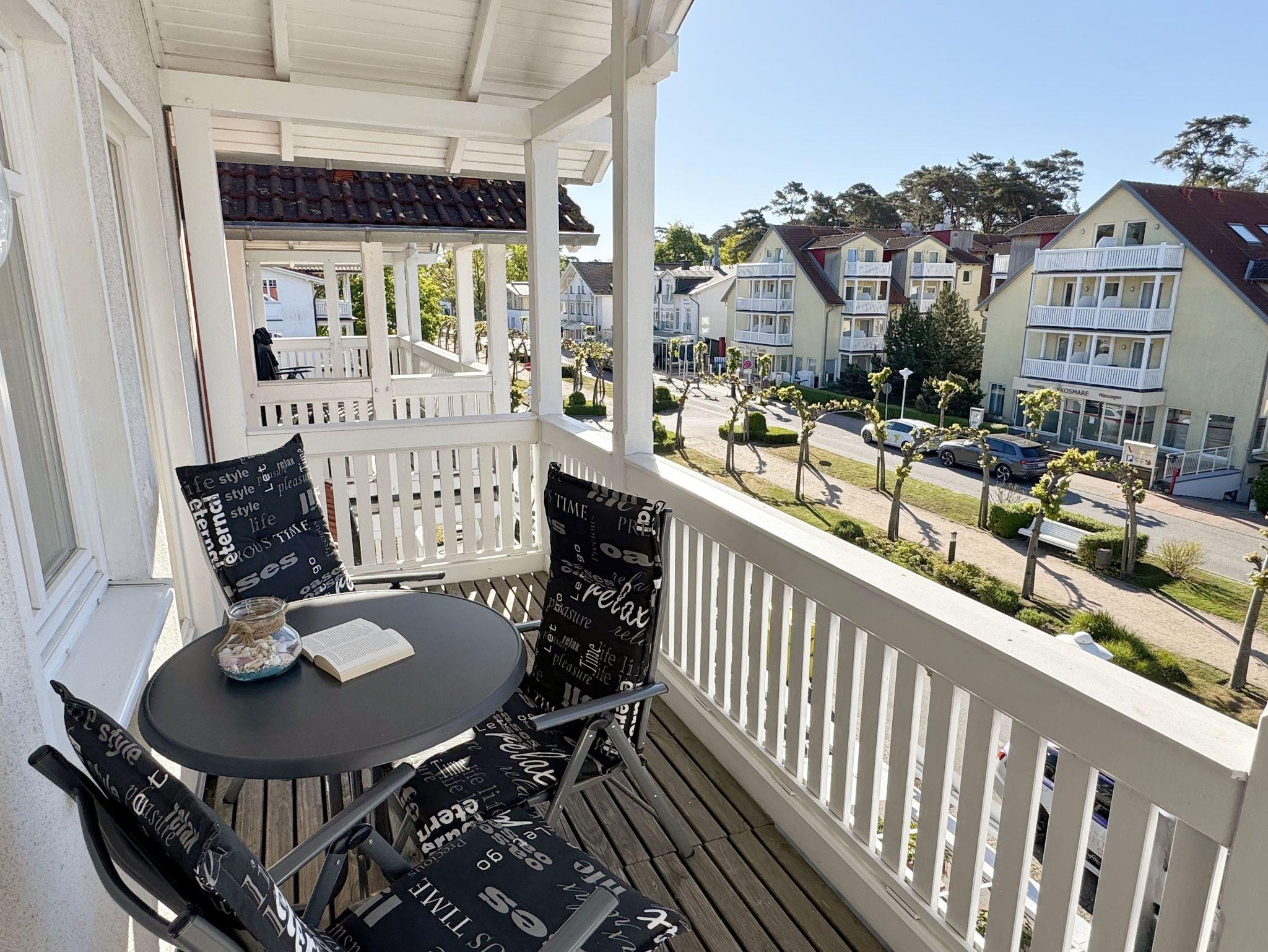 Gemütliche Ferienwohnung im Bäderstil mit Balkon und Blick auf die Strandpromenade in Baabe.