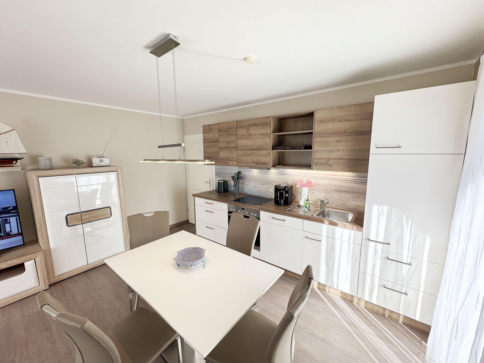 Diese charmante und komfortable 2-Zimmer Ferienwohnung mit einer Fläche von ca. 55 m² bietet den perfekten Ort für einen entspannten Urlaub an der Ostsee. Nur wenige Schritte sind es bis zum feinen Sandstrand, und der Selliner See liegt direkt vor der Tür, sodass man nicht nur das Meer, sondern auch den idyllischen Blick auf den See genießen kann. Die Ferienwohnung befindet sich in einer ruhigen und angenehmen Lage und bietet gleichzeitig eine hervorragende Anbindung an alle wichtigen Orte. Der Bäcker ist in unmittelbarer Nähe, sodass man jeden Morgen frische Brötchen genießen kann. Zahlreiche Restaurants und Cafés sind fußläufig erreichbar, ideal für gemütliche Abendessen oder entspannte Kaffeepausen. Auch die Einkaufsmöglichkeiten sind nur wenige Minuten entfernt, sodass man alles für den täglichen Bedarf schnell besorgen kann. Die Kleinbahn ist ebenfalls gut zu erreichen und ermöglicht eine bequeme Anreise und Fortbewegung in der Umgebung.