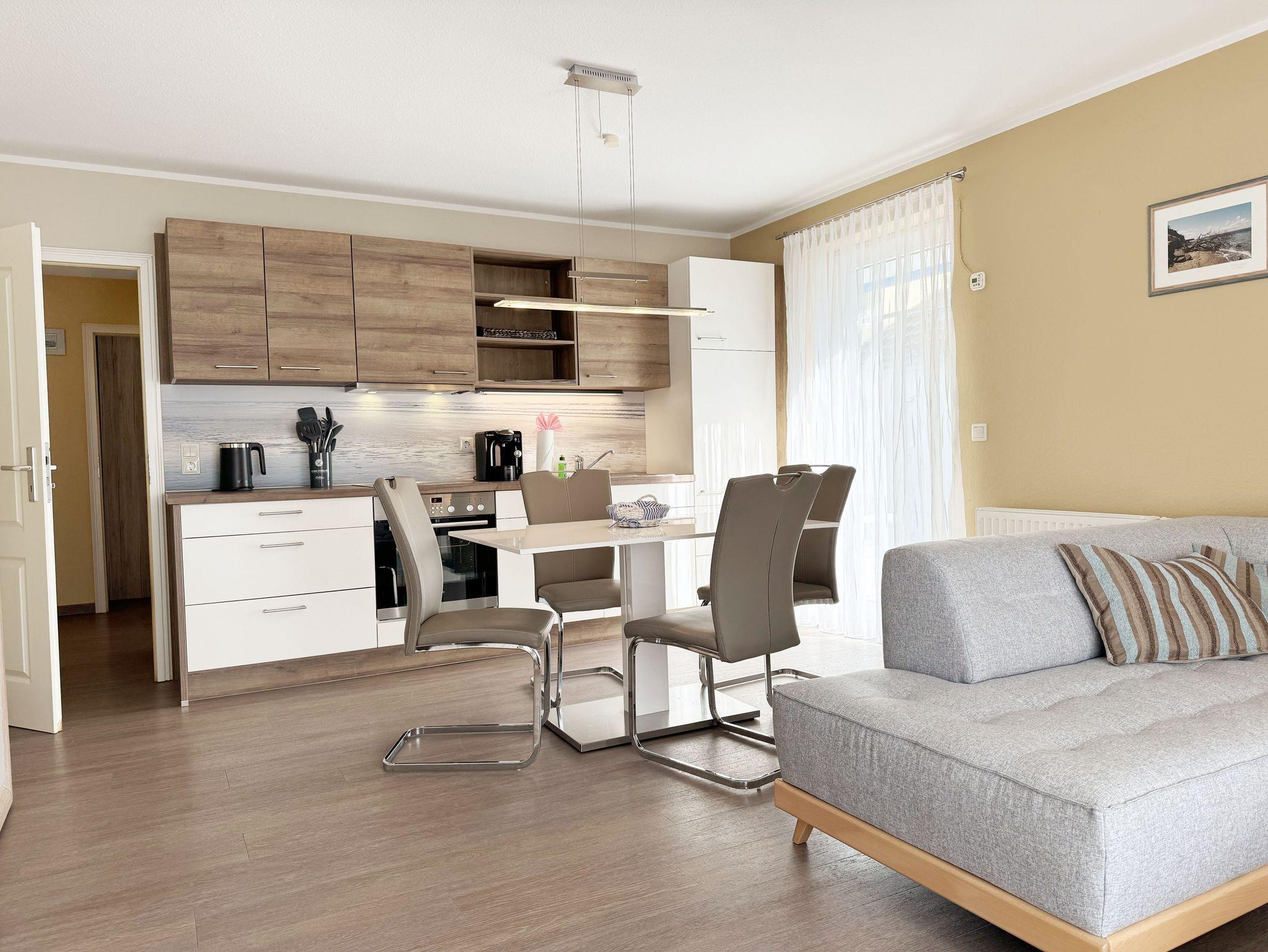 Charmante 2-Zimmer Ferienwohnung Ostseemuschel mit 2 Terrassen nahe Strand und Selliner See für erholsamen Ostseeurlaub.
