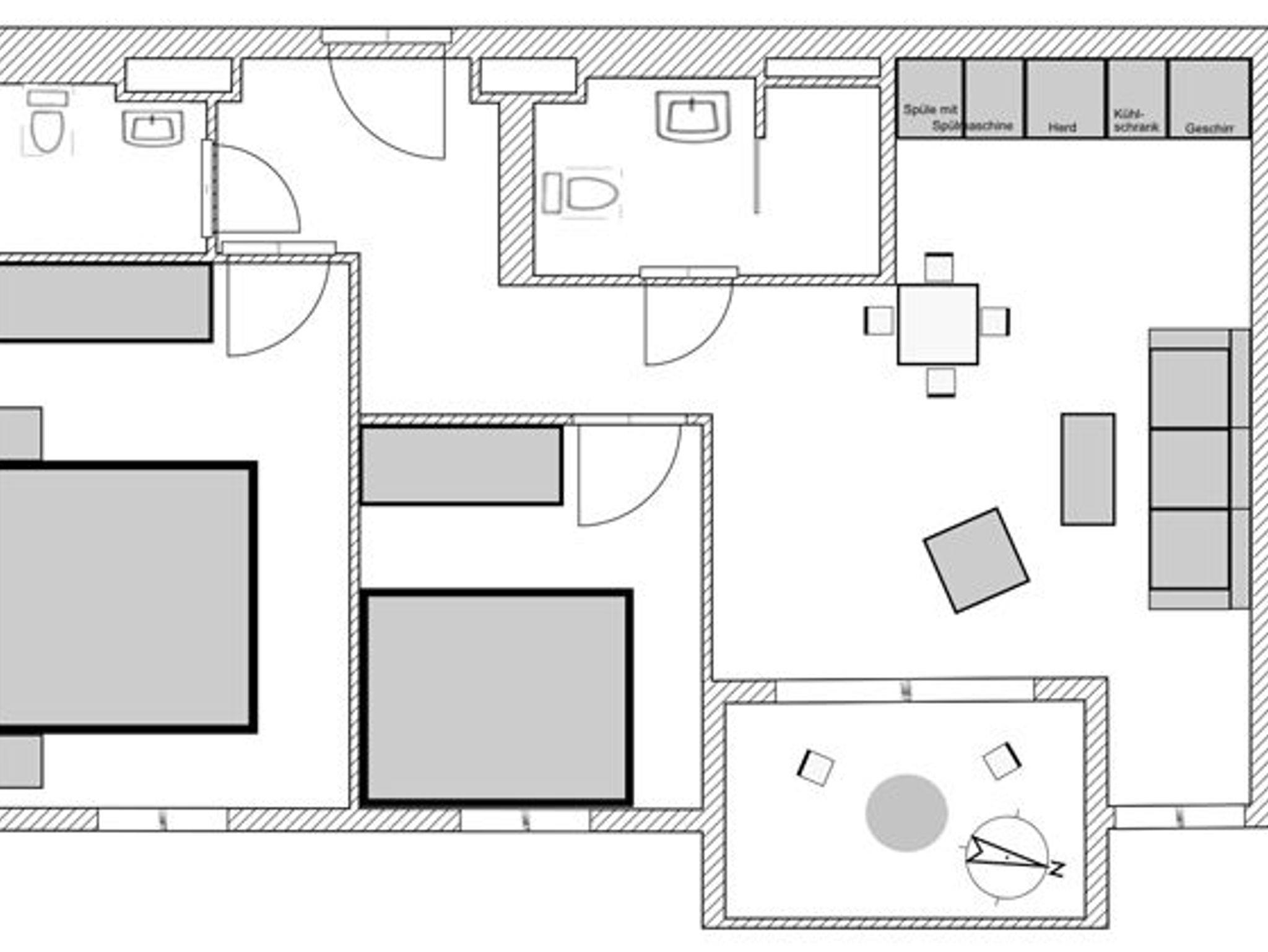 Ein Duschbad mit begehbarer Dusche sowie ein Gäste-WC komplettieren die Ausstattung.