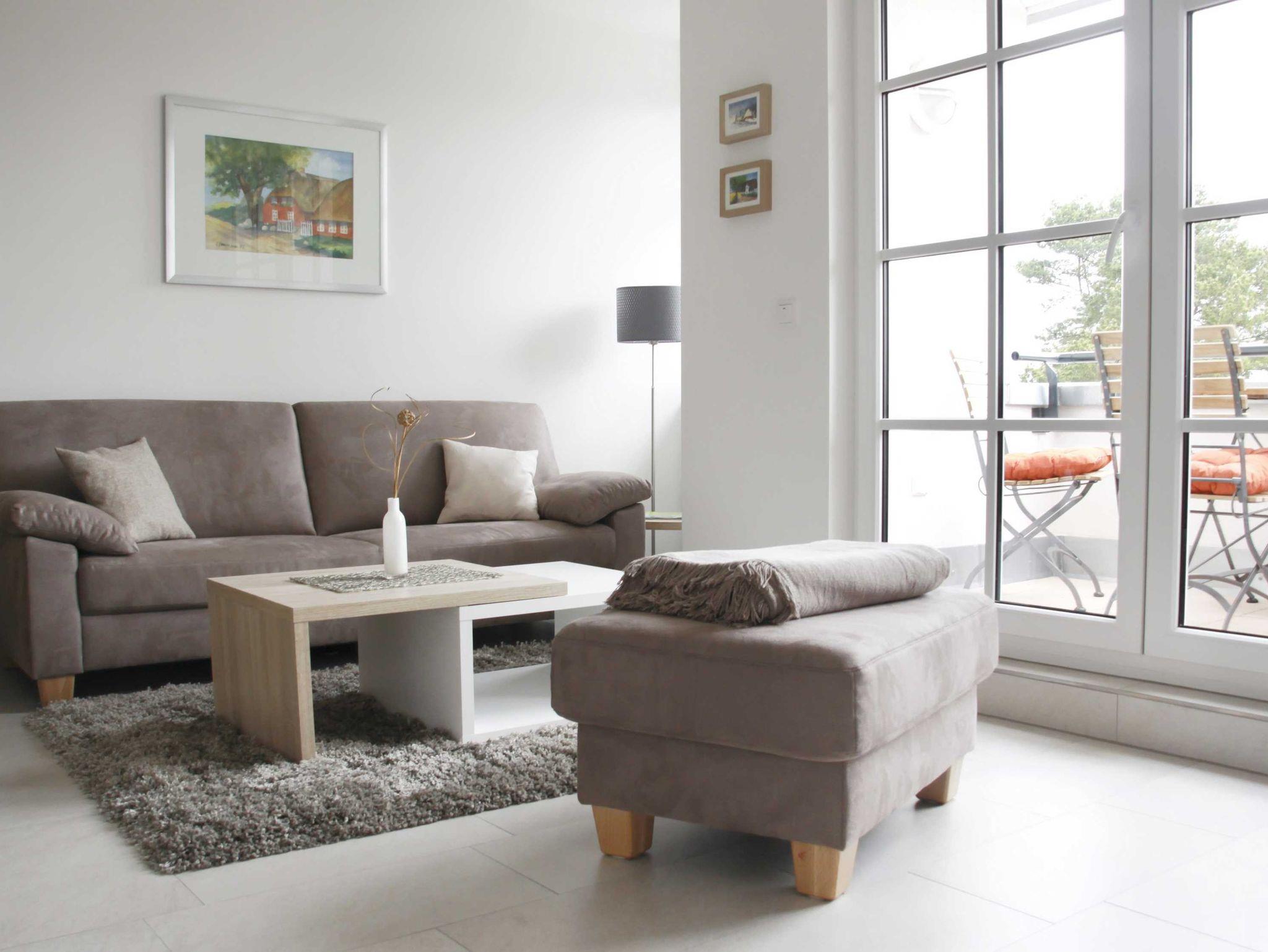 Diese 3-Zimmer-Ferienwohnung mit Balkon und Meerblick hat ca. 52 m ² Wohnfläche und liegt in der dritten Etage zur Meerseite hin. Aus Sicherheitsgründen haben alle Fenster und die Balkontür eine Kindersicherung. Genießen Sie den Blick bis zum Meer schon beim Frühstücken auf dem Balkon.