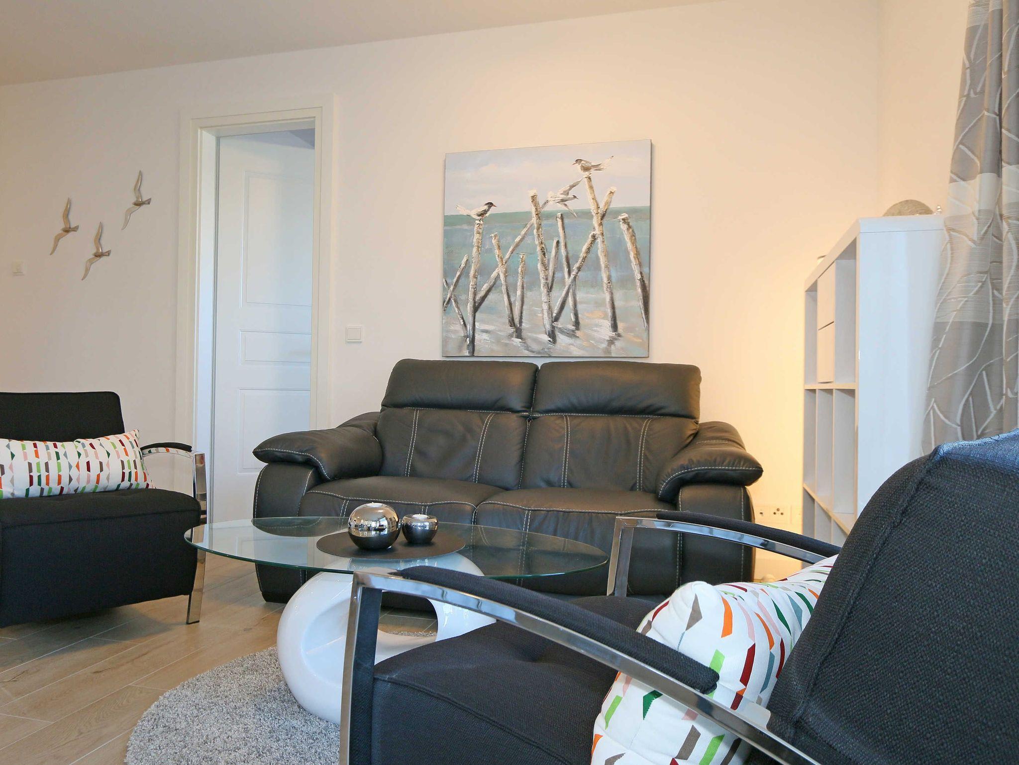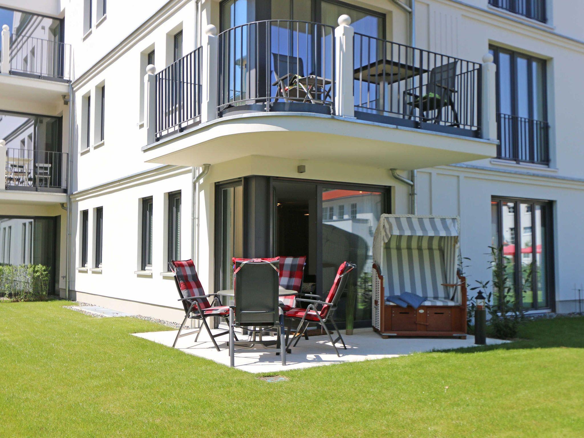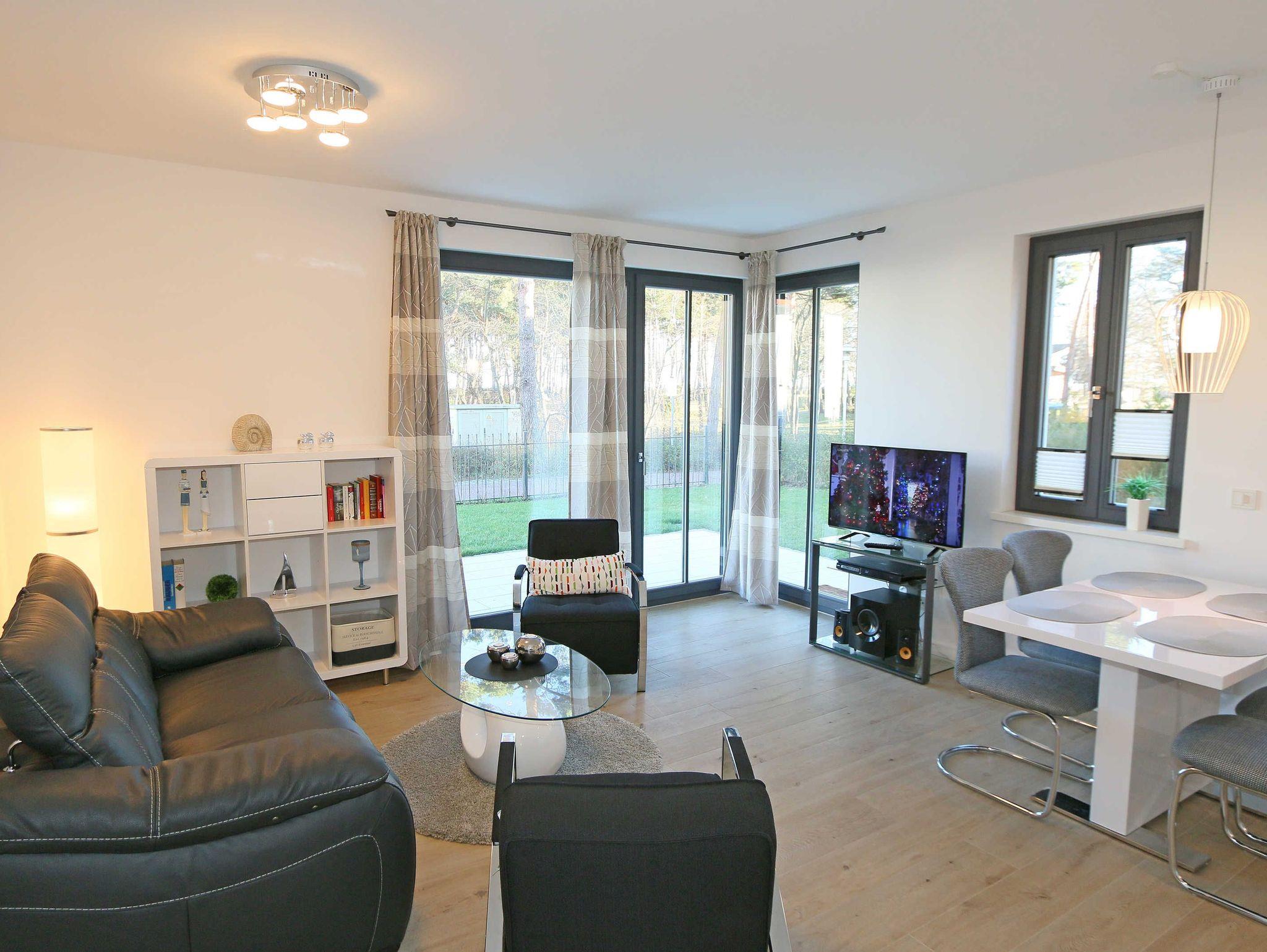 Komfortable 3-Zimmer-Wohnung MeerZeit in Baabe mit Terrasse und Meerblick, nur 50 m vom weißen Sandstrand entfernt.