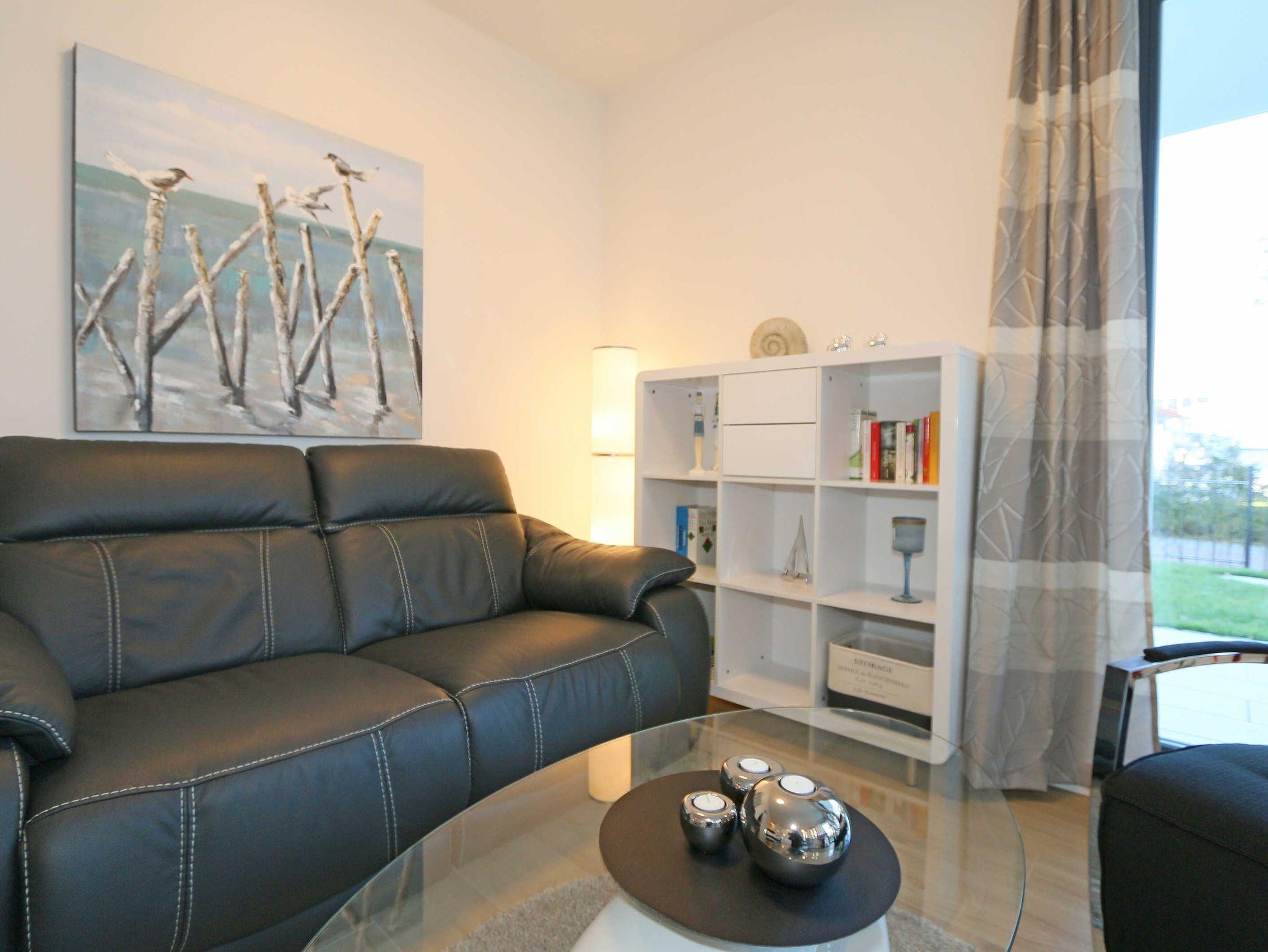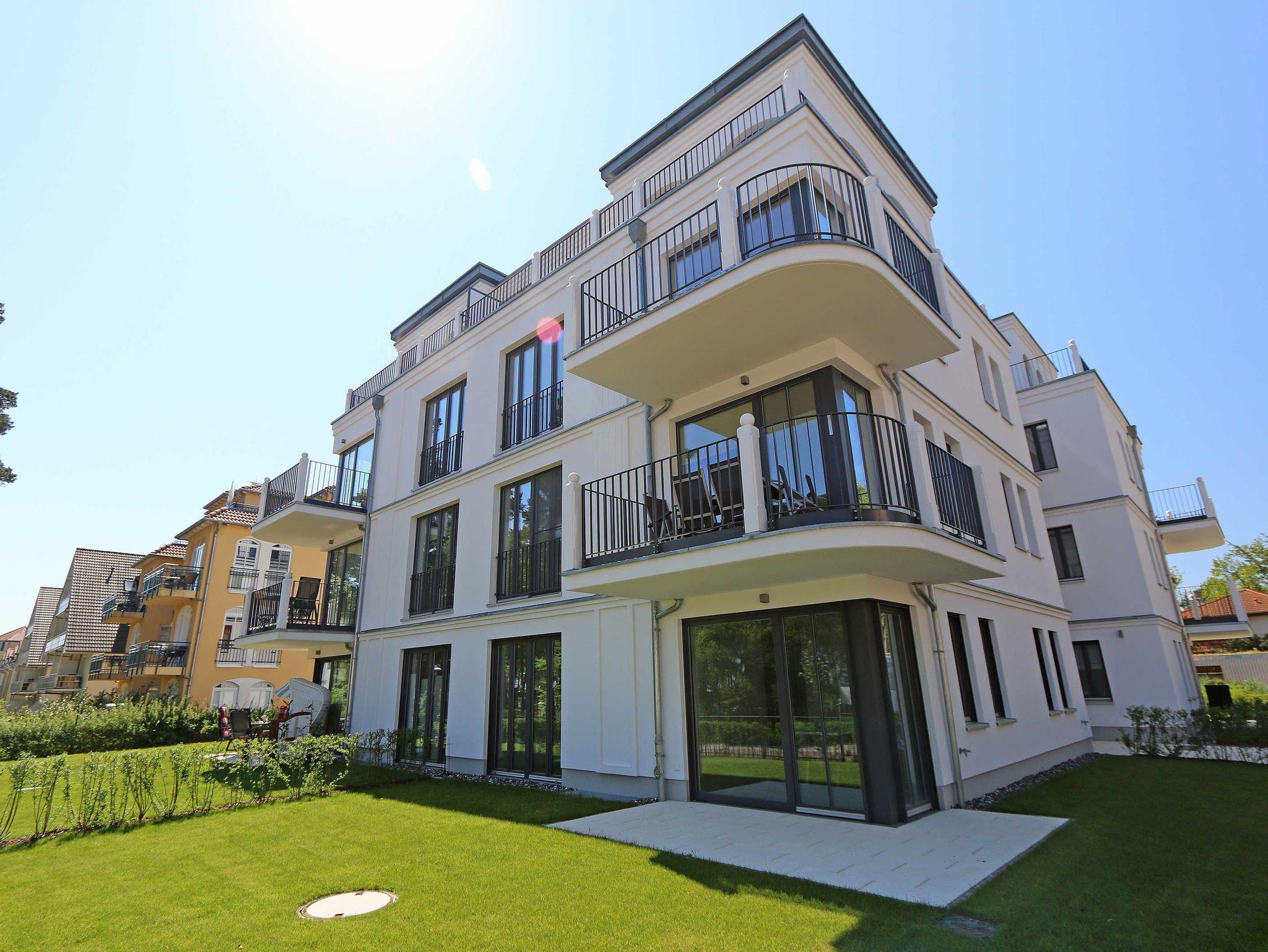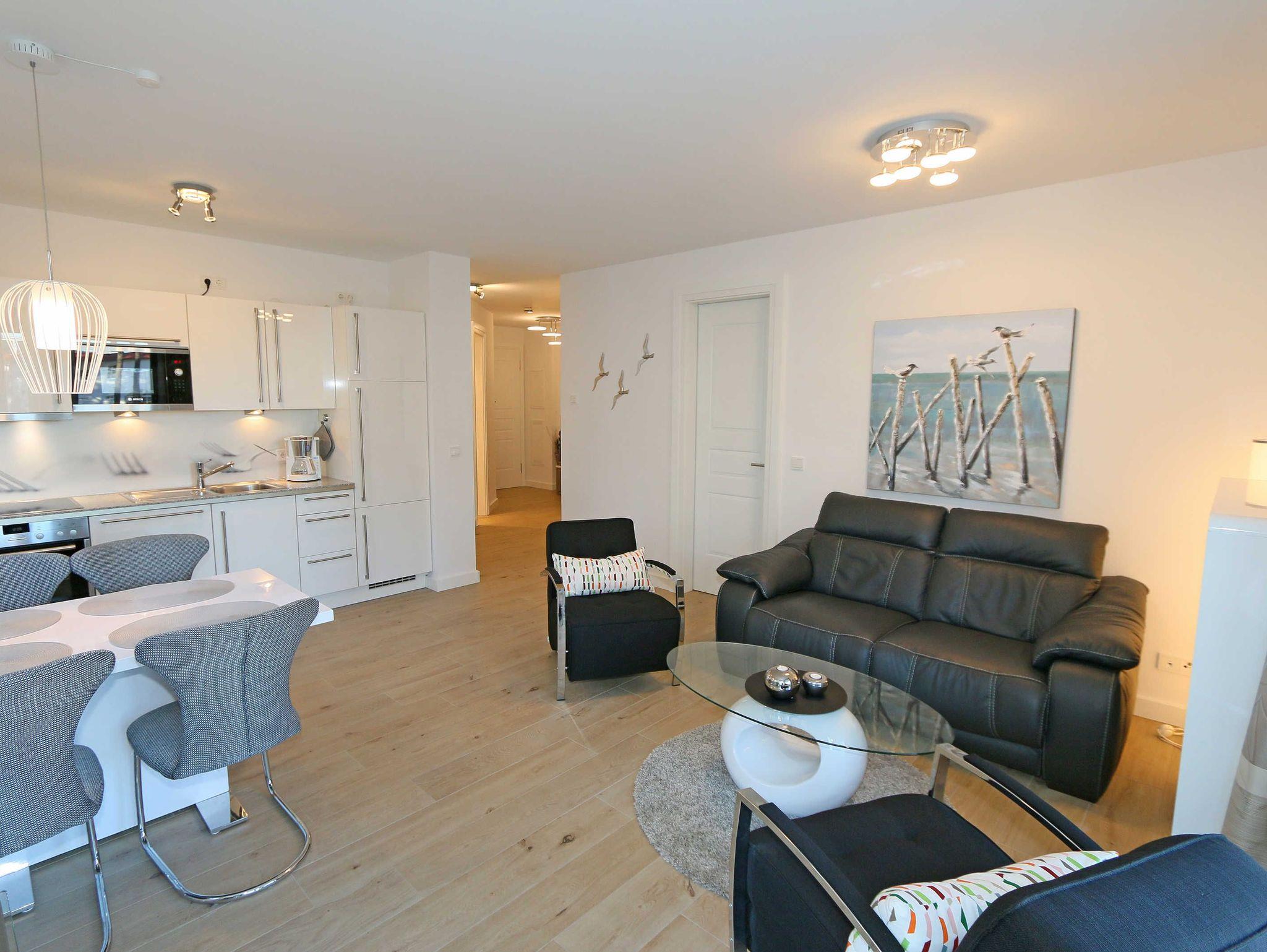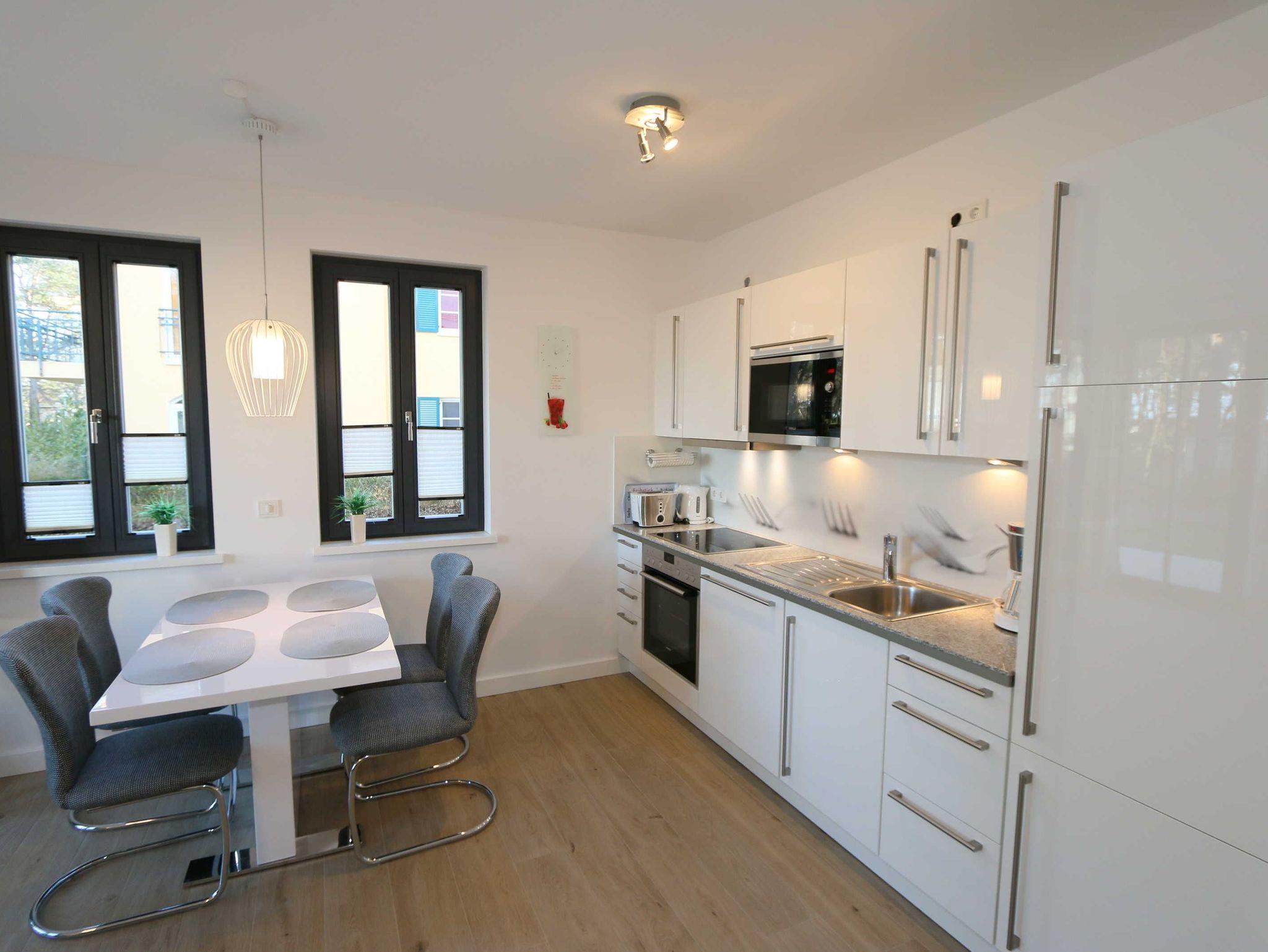 Komfortable 3-Zimmer-Wohnung MeerZeit in Baabe mit Terrasse und Meerblick, nur 50 m vom weißen Sandstrand entfernt.