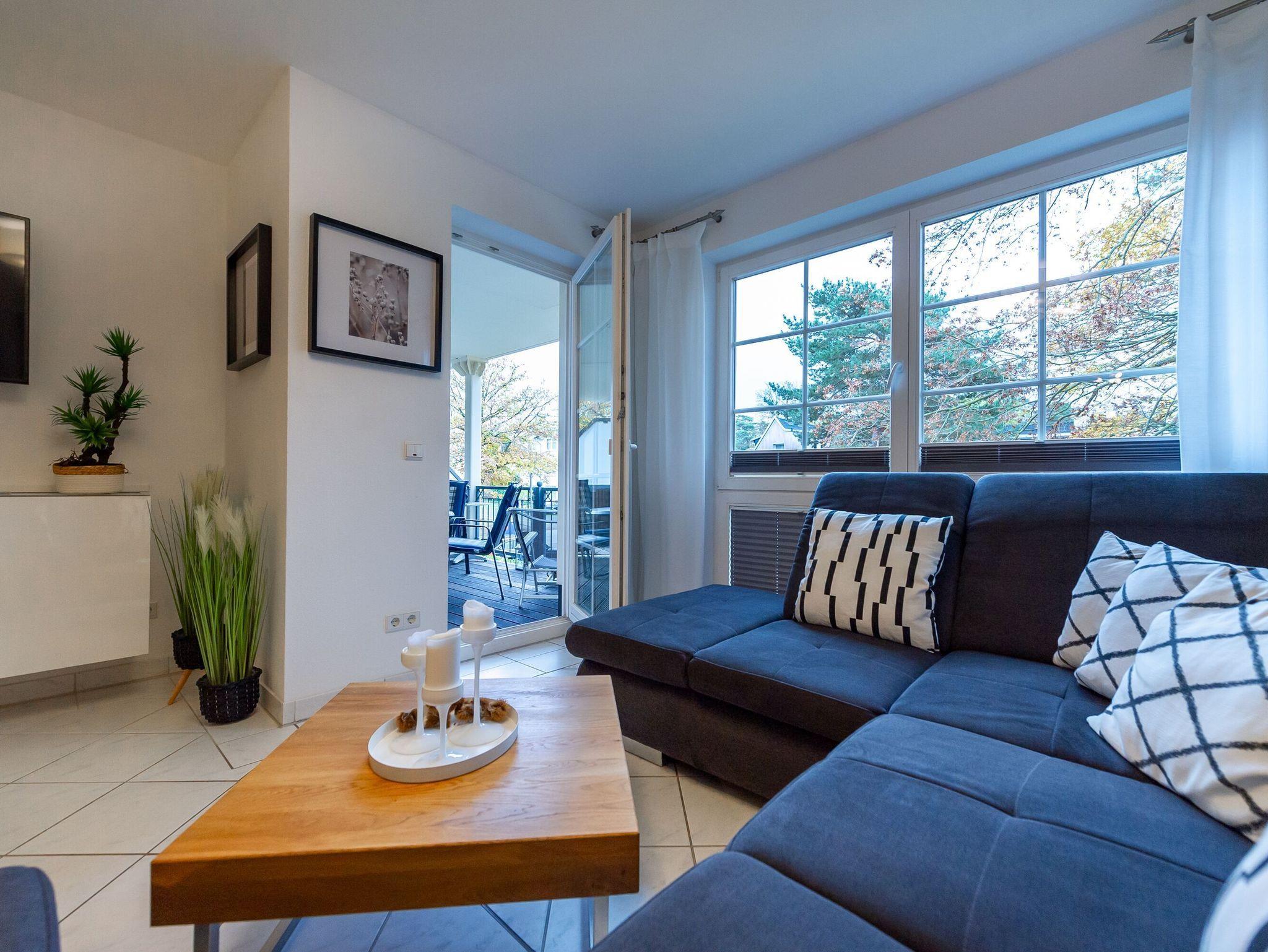 Elegante 2-Zimmer-Wohnung mit möbliertem Balkon in Baabe, Ostsee, ideal für entspannte Urlaubstage.