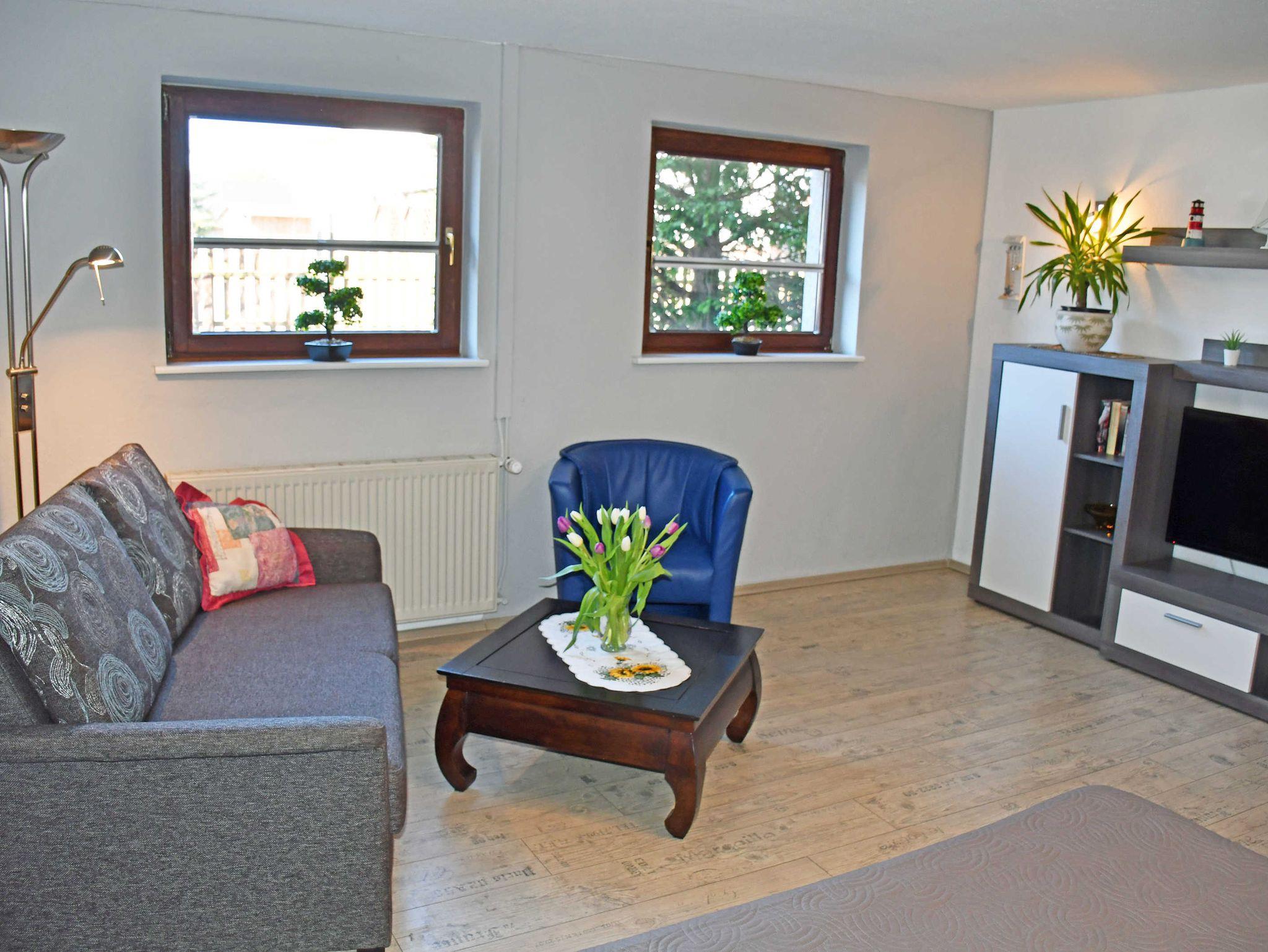 Die 2-Raum-Ferienwohnung liegt im Souterrain unseres Wohnhauses und ist über eine Außentreppe mit separatem Eingang und über einen eigenen Flur mit Garderobe zu erreichen. Sie ist ca. 65 qm groß, hell und freundlich, hat Platz für maximal 4 Erwachsene sowie 1 Kind bis 3 Jahre im Kinderreisebett und wurde modern und bzw. komfortabel eingerichtet.