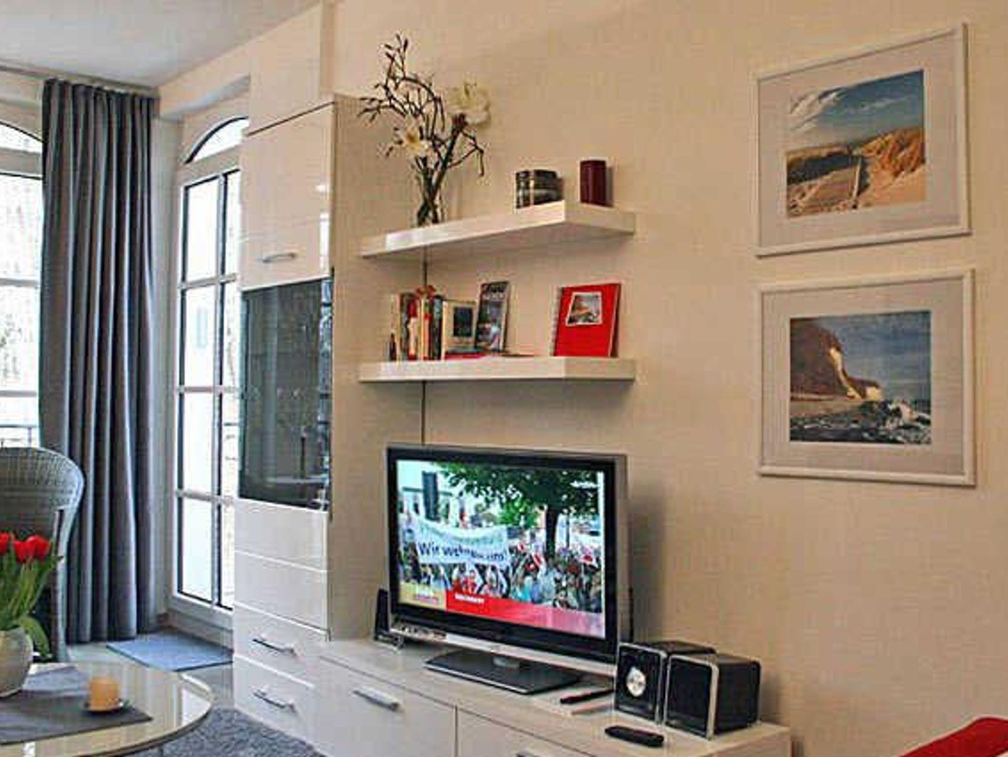 In der Ferienwohnung Kreideküste haben bis zu drei Personen Platz auf 42 qm Wohnfläche. Die komfortabel eingerichtete Wohnung liegt im 2. Obergeschoss des Hauses in ruhiger Südwestlage. Vom Balkon aus hat man einen schönen Blick auf den anliegenden Wald. In dem separaten Schlafzimmer gibt es ein Komfort-Boxspringdoppelbett. Die Dusche im Bad ist ebenerdig. In der Küchenzeile des kombinierten Wohn-Essbereichs ist ein 4-Plattenherd (Ceranfeld), ein Kühlschrank, eine Mikrowelle, eine Geschirrspülmaschine, eine Kaffeemaschine, ein Toaster sowie ein Eier- und Wasserkocher.