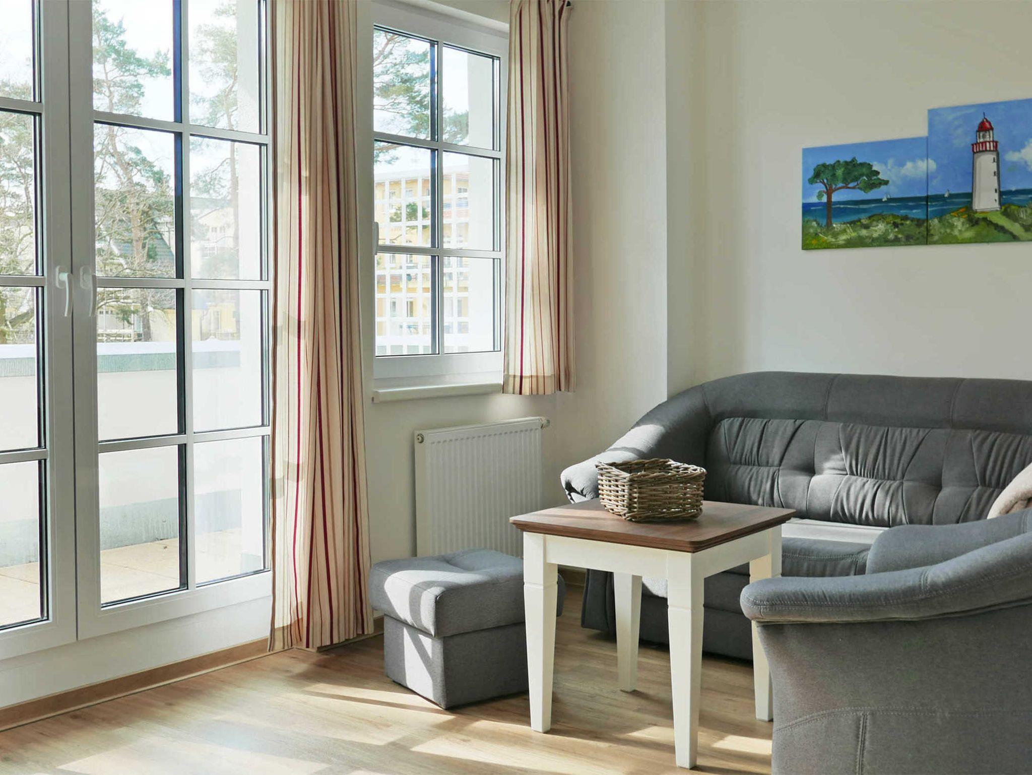 Moderne Ferienwohnung Kranich mit Meerblick und Balkon im Inselparadies Baabe.
