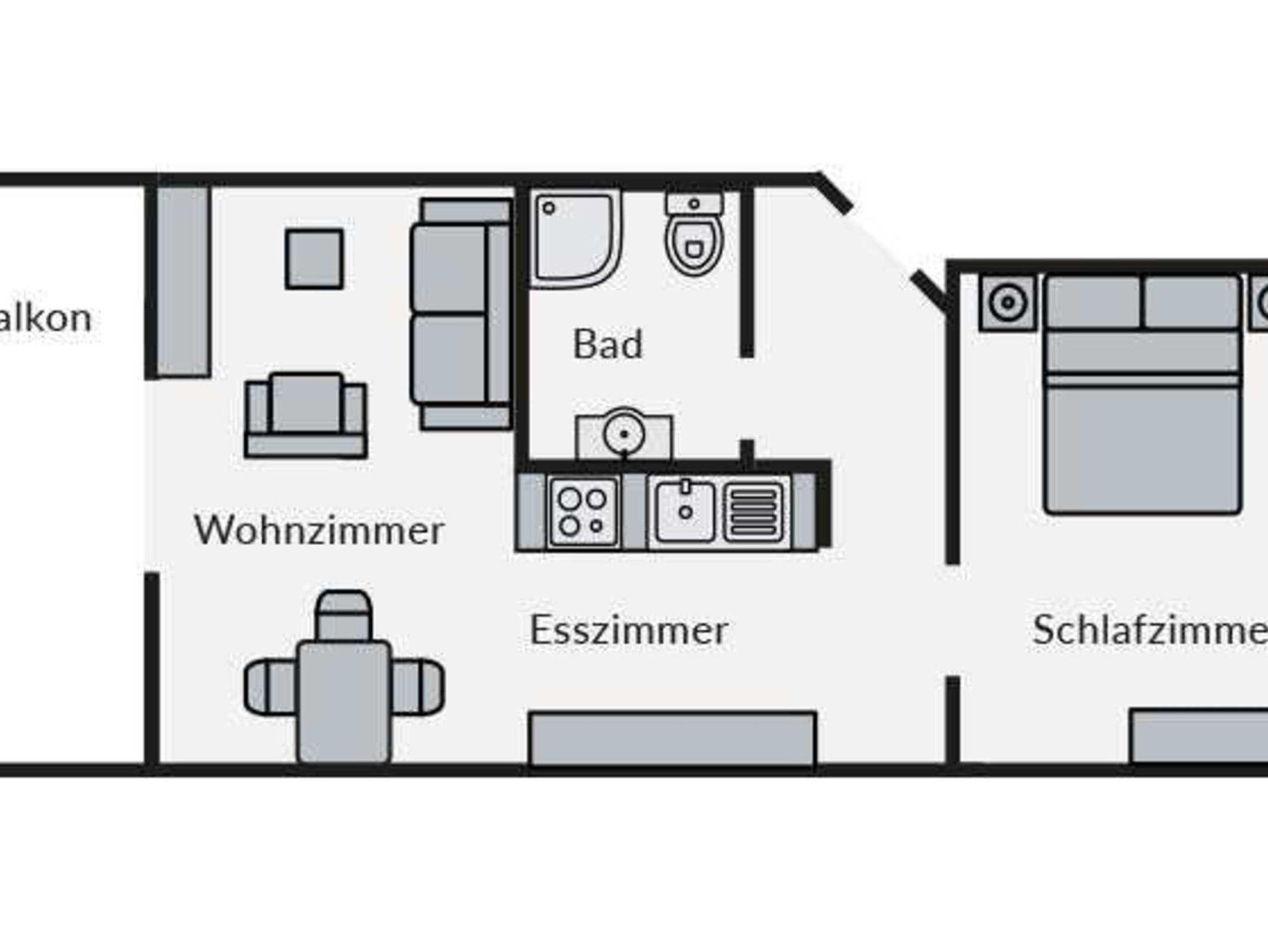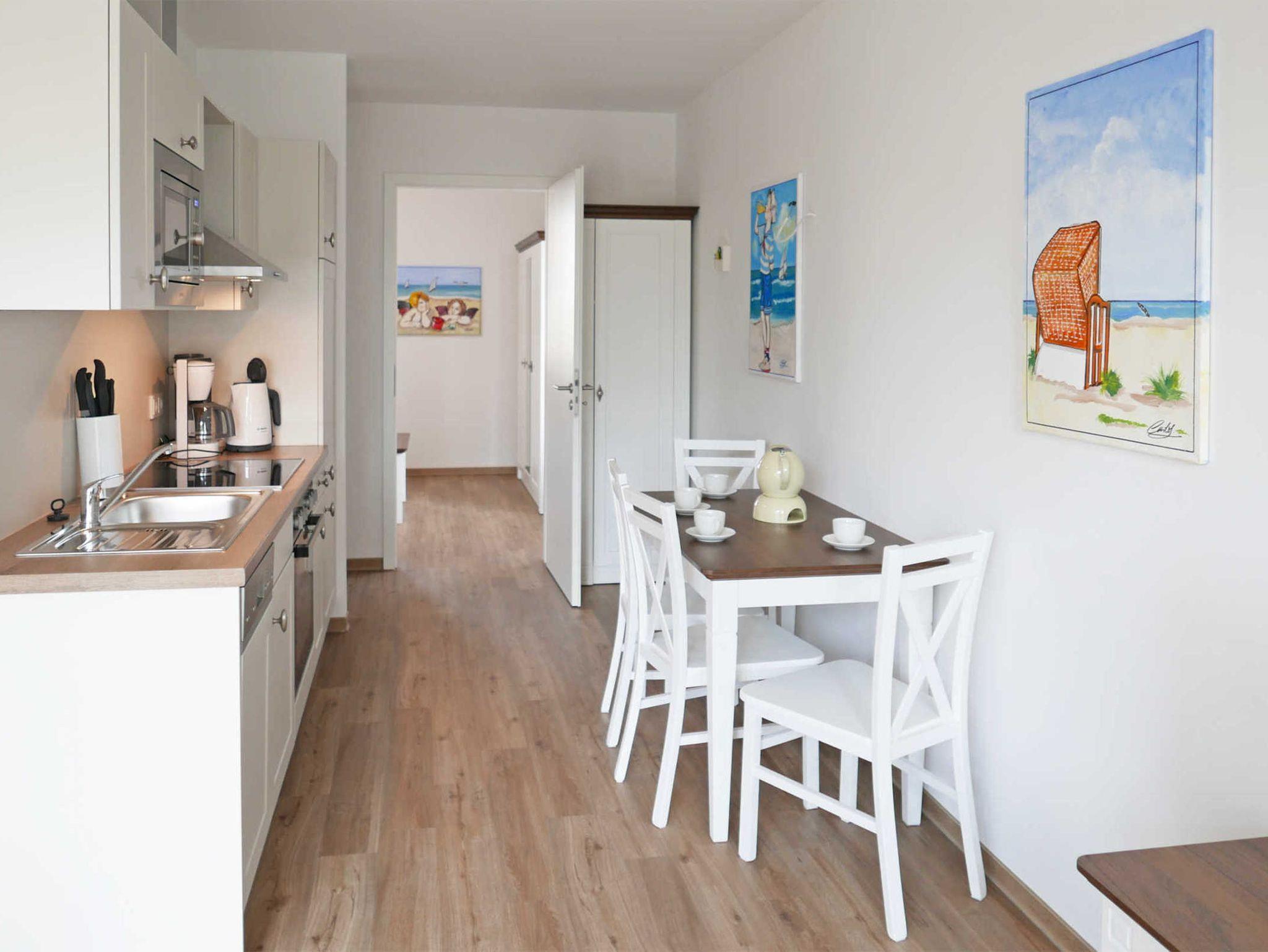 Modern eingerichtete, helle Ferienwohnung für maximal 4 Personen. Das kombinierte Wohn- und Schlafzimmer weist ein Schlafsofa aus, eine weitere Schlafgelegenheit befindet sich im separaten Schlafzimmer. Hier befindet sich ein Doppelbett. Die offene Küche ist mit Backofen, Mikrowelle und Geschirrspülmaschine für alle Bedürfnisse ausgerichtet.