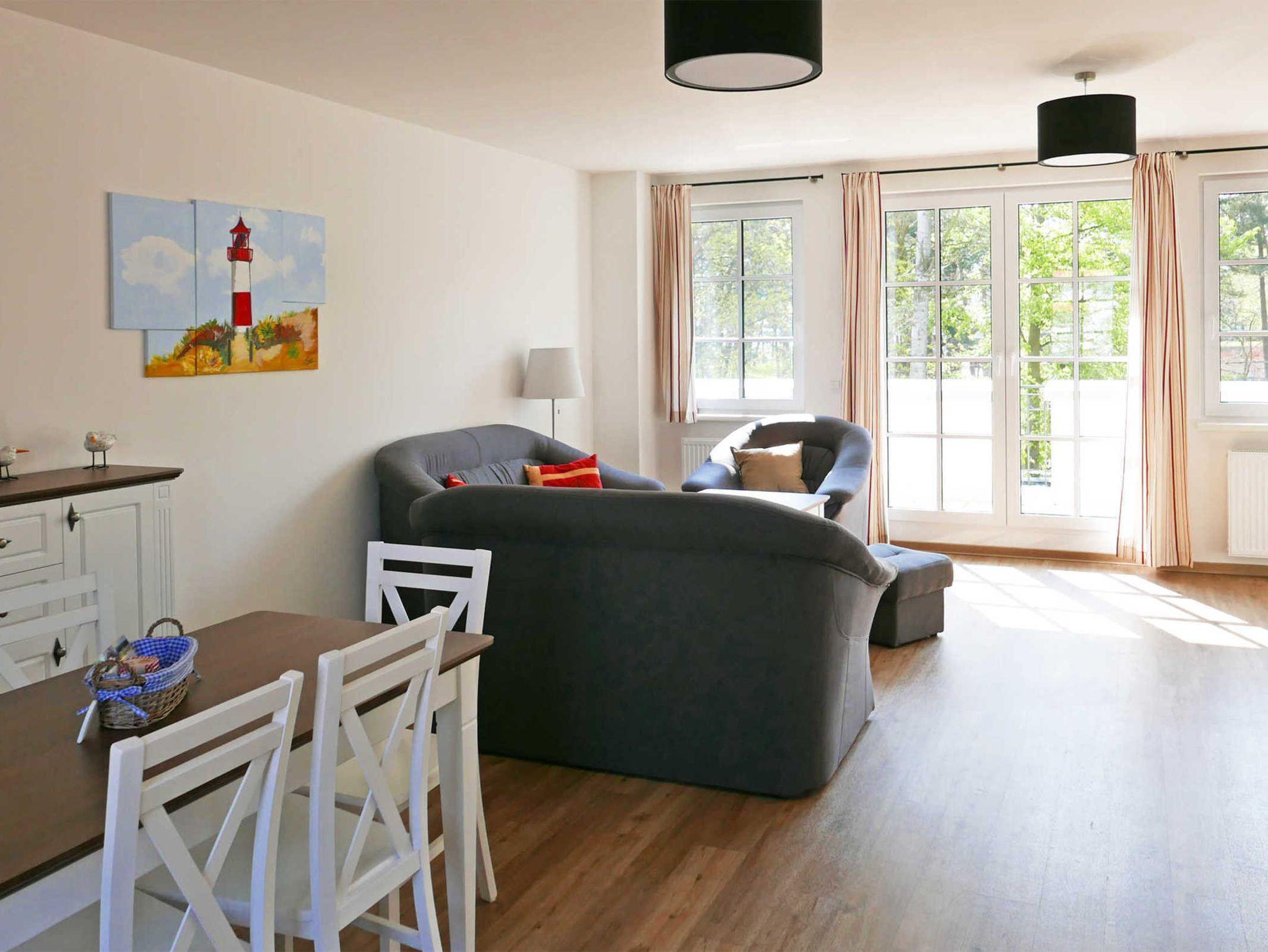 Die helle 90 qm große 3 Zimmer Meerblickwohnung Sandbank befindet sich in der 2017 eröffneten Ferienanlage Inselparadies direkt am Strand von Baabe. Alle Wohnungen weisen einen Meerblick auf, der vom Balkon genossen werden kann. Auch WLANist vorhanden.