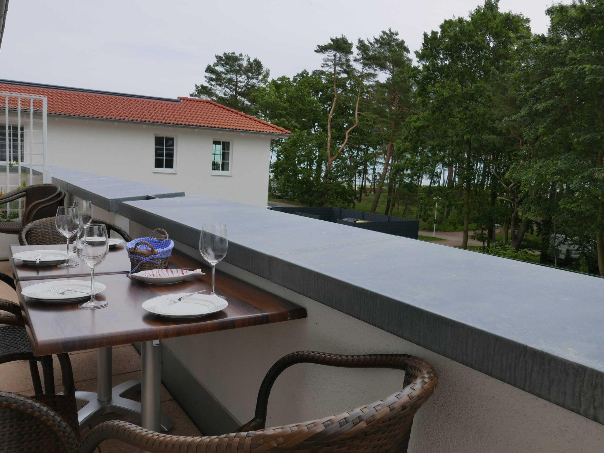 Helle Ferienwohnung Sandbank mit Meerblick und Balkon direkt am Strand von Baabe.