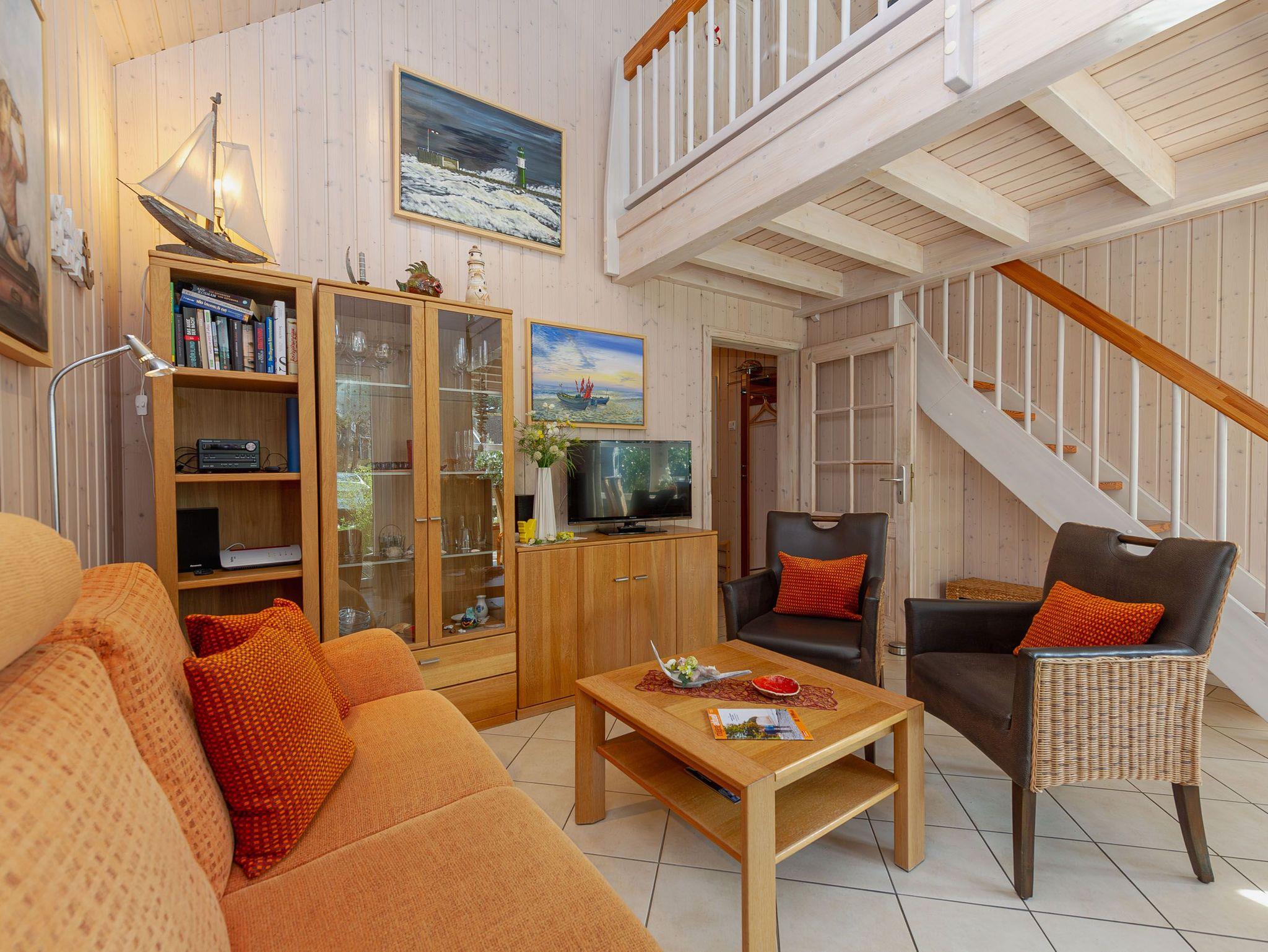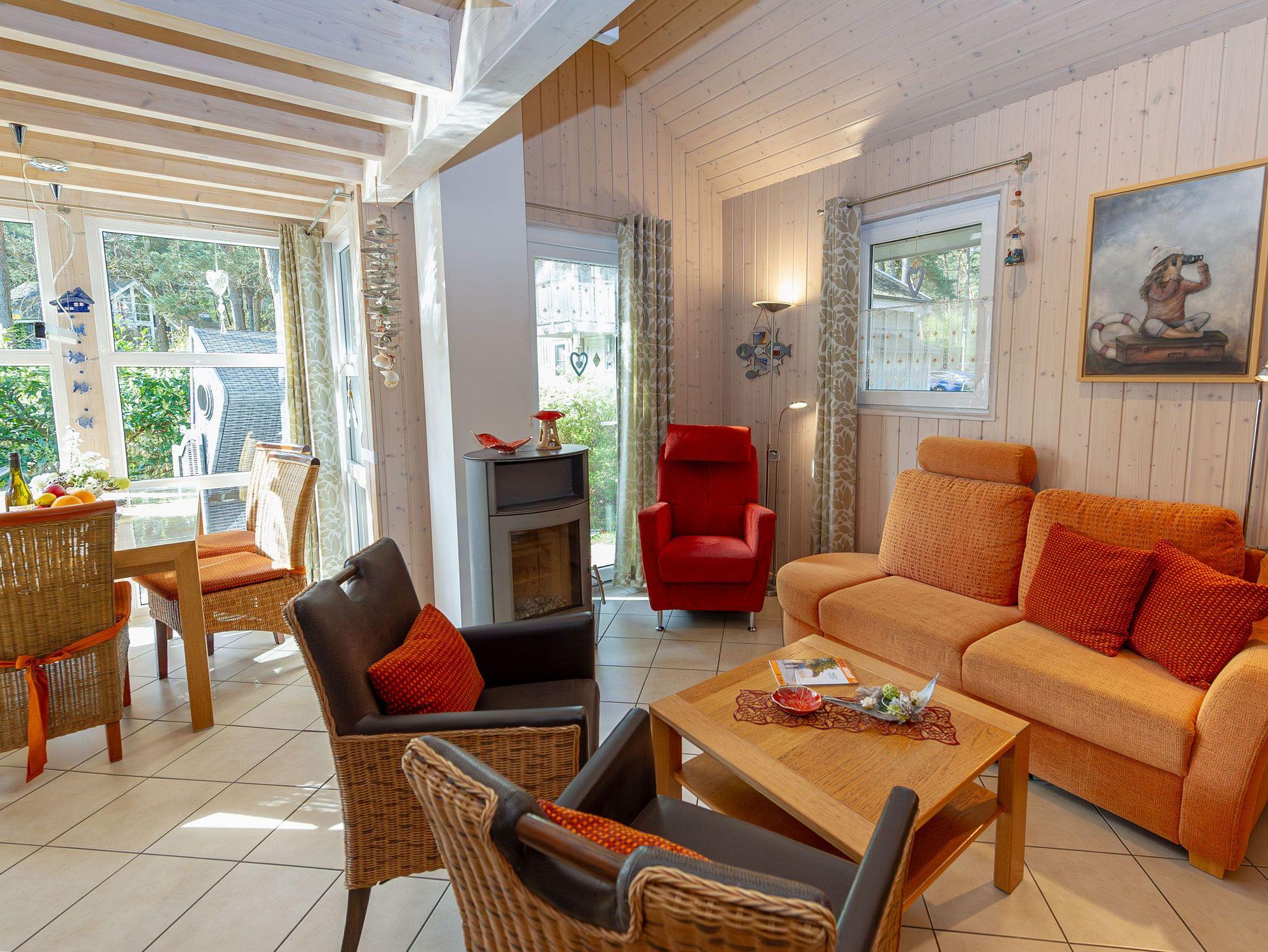 Im Erdgeschoss, ausgestattet mit einer Elektro-Fußbodenheizung, finden Sie Ihr Wohnzimmer mit einer Sitzecke, einem Kaminofen sowie Flachbild-TV und Stereoanlage vor. W-LAN ist selbstverständlich kostenfrei verfügbar.