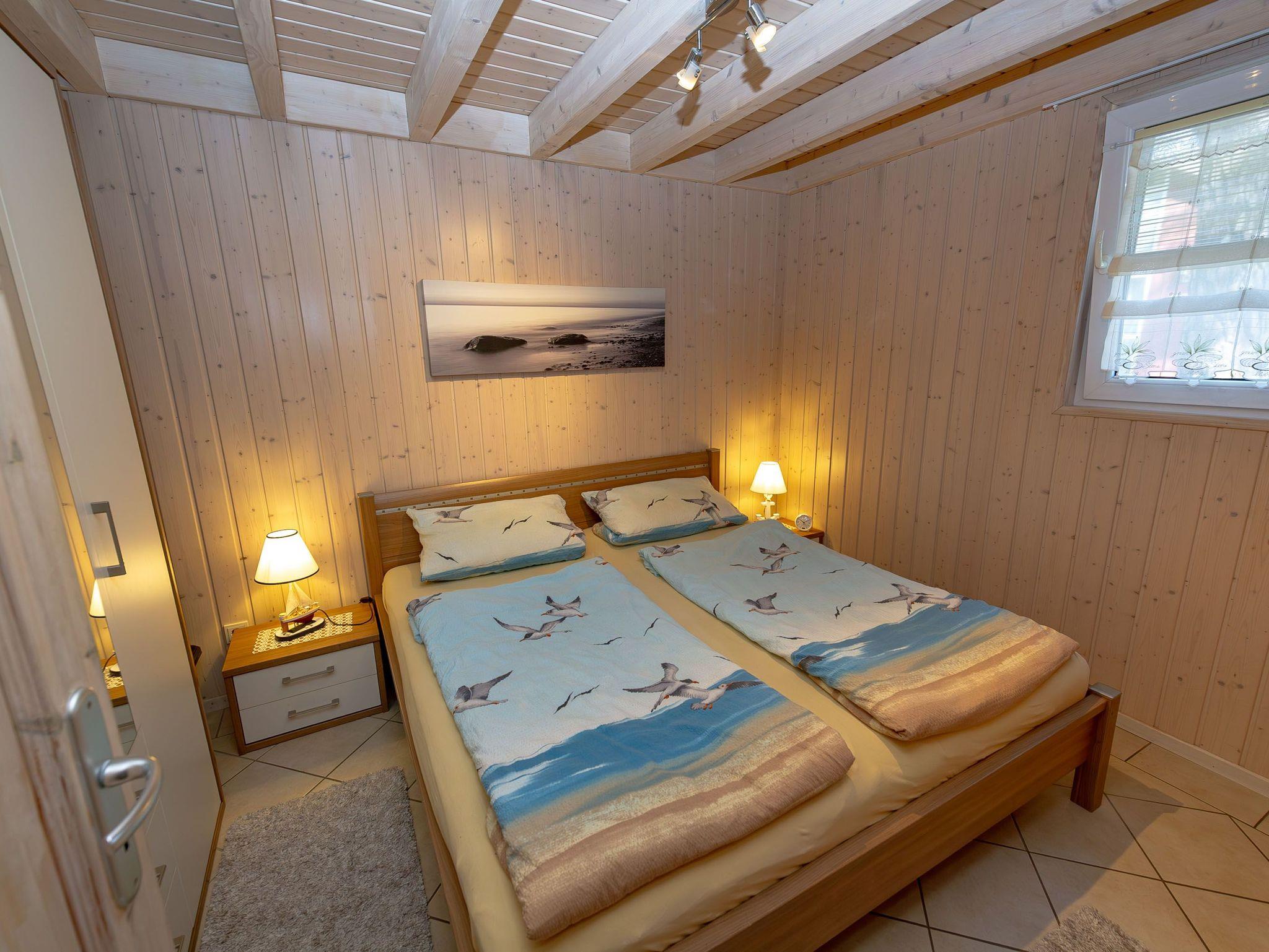 Im Erdgeschoss gibt es außerdem ein Schlafzimmer mit einem kuscheligen Doppelbett nebst Kleiderschrank und das Badezimmer mit Dusche/WC, Badewanne mit Whirlpoolfunktion, Finnischer Sauna und Waschmaschine.