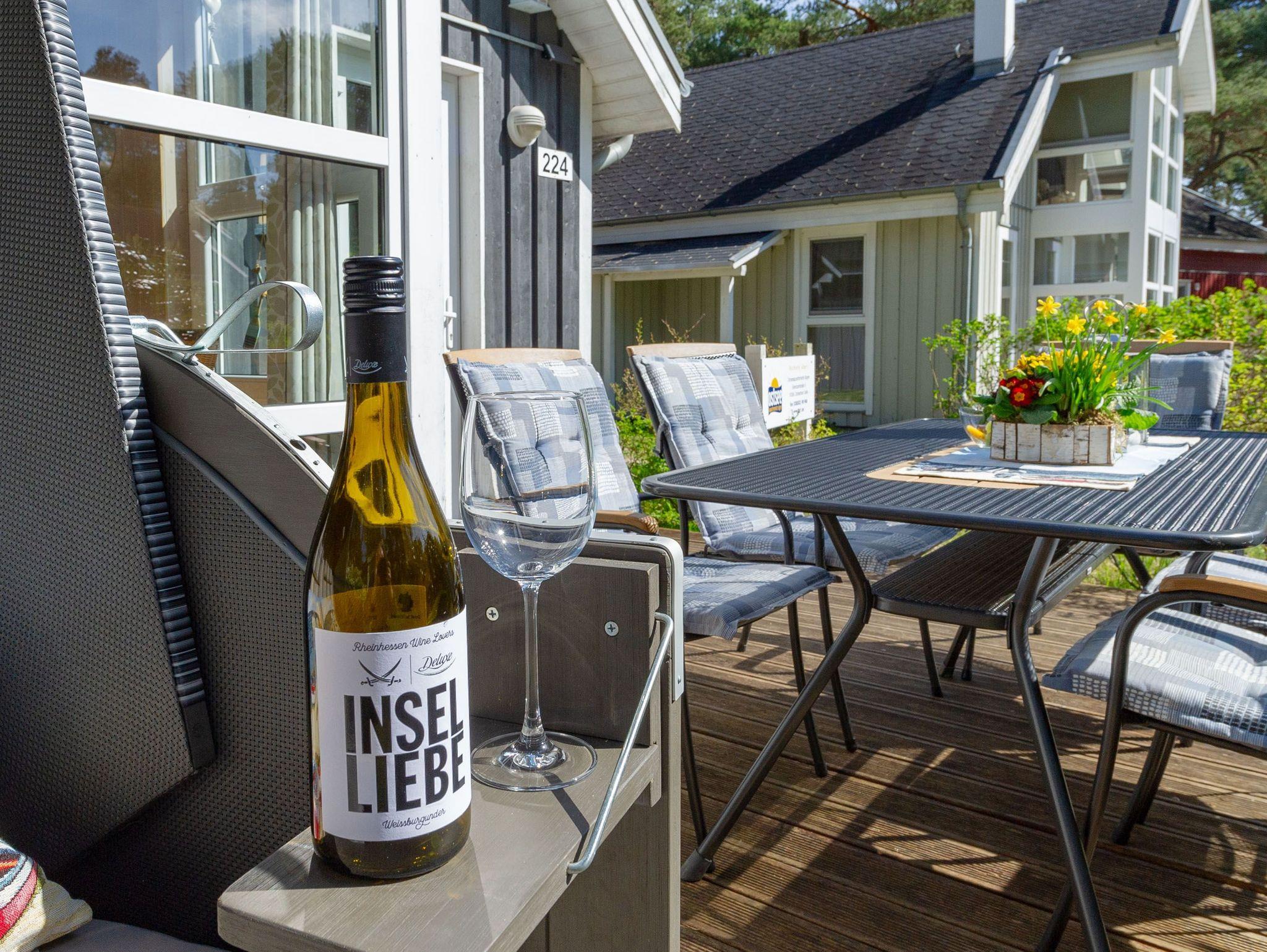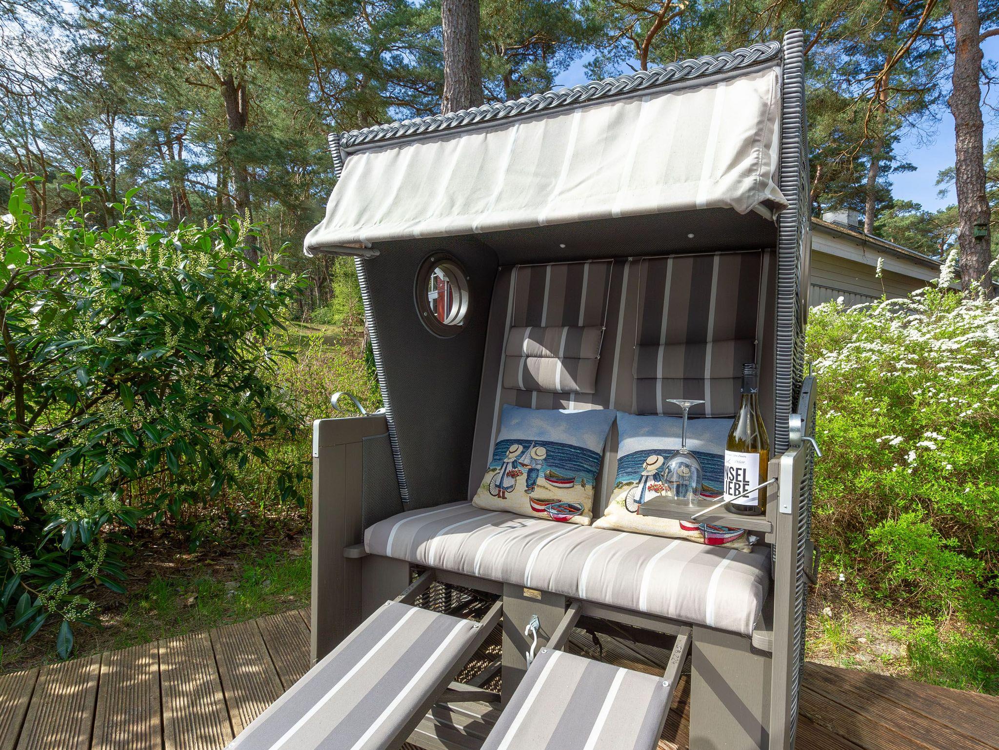 Die separate Küche überzeugt mit einem 4-Platten-Cerankochfeld, Backofen, Kühlschrank, Geschirrspüler, Kaffeemaschine, Wasserkocher, Toaster und allerlei Kleininventar, das die Küchenausstattung vervollständigt. Speisen können Sie wahlweise am Esstisch drinnen oder aber draußen auf Ihrer großen Terrasse, wo Sie vom Morgen bis zum Nachmittag die Sonne zu Gast haben. Die Terrassenmöbel inkl. Strandkorb zum Einkuscheln stehen Ihnen saisonal - in der Regel von Mai bis Ende September - zur Verfügung.