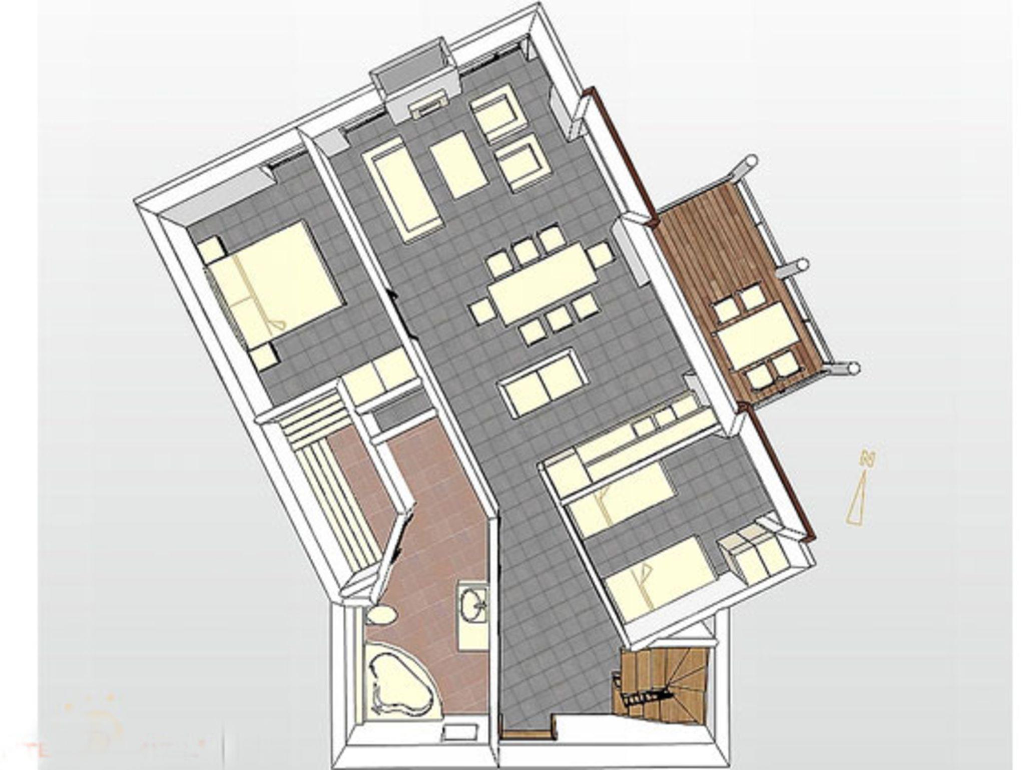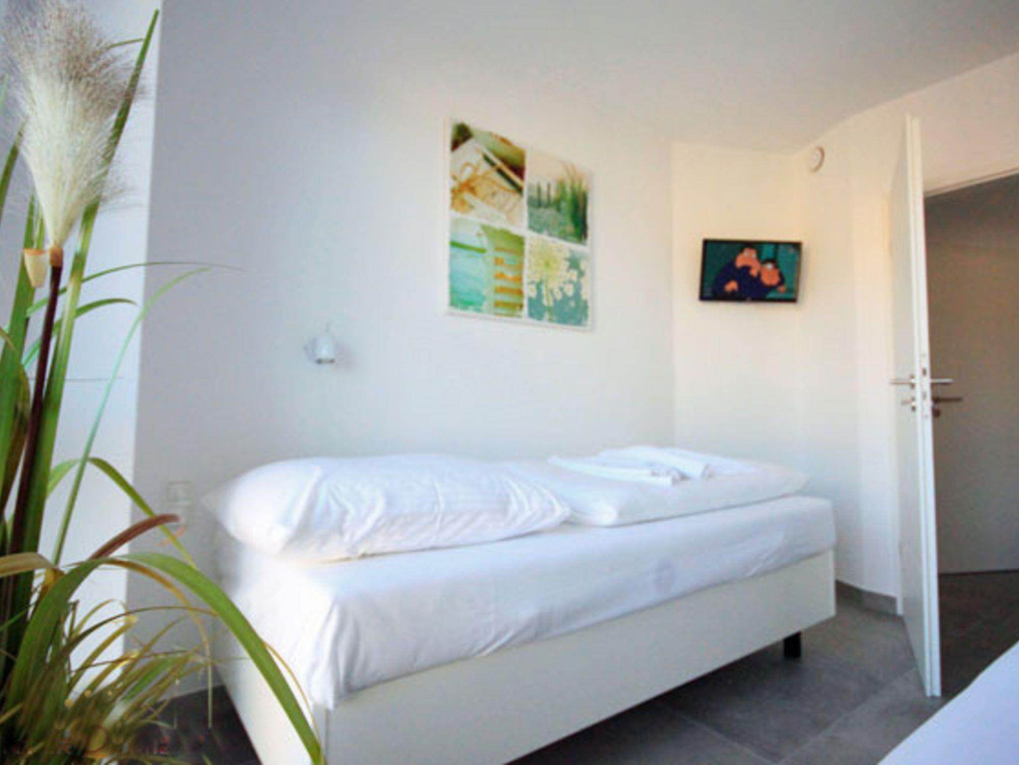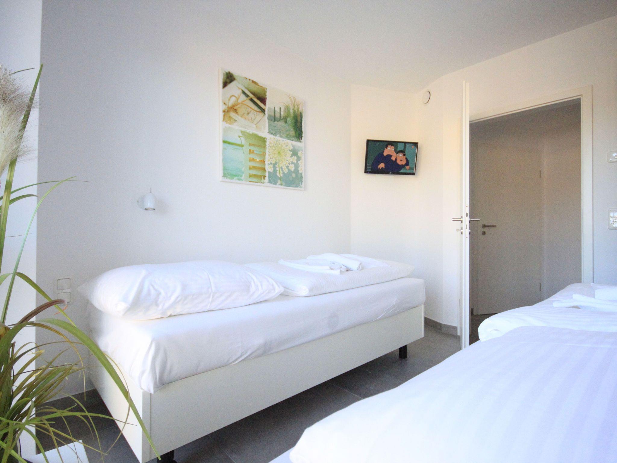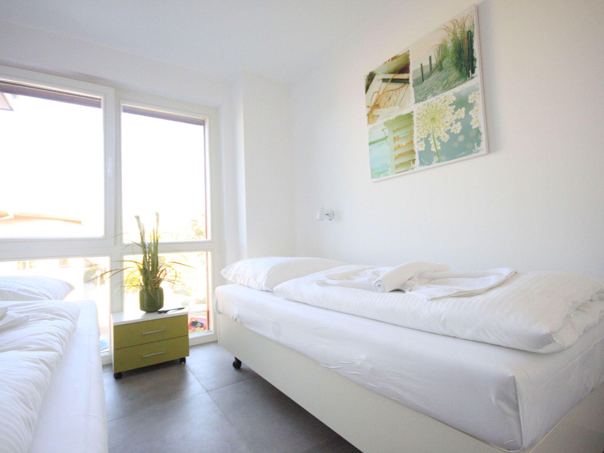 Die 72 qm große Wohnung ist wie folgt aufgeteilt: 1 Schlafzimmer mit Doppelbett (Boxspringbett), Flachbild-TV und DVD Player, 1 Schlafzimmer mit zwei Einzelbetten, die jedoch auch zu einem Doppelbett zusammengeschoben werden können. Auch hier gibt es einen Flachbildfernseher. In beiden Schlafzimmern befindet sich ein großer Kleiderschrank. Das Badezimmer ist das Highlight der Wohnung: Hier befindet sich neben der Whirlpool-Wanne (Jaccuzzi) und der ebenerdigen Dusche auch eine Sauna.