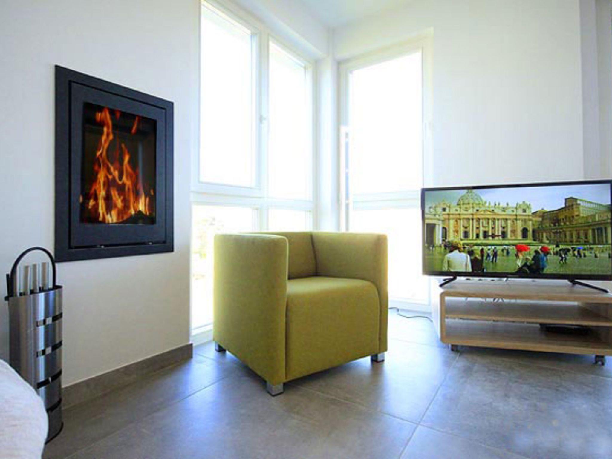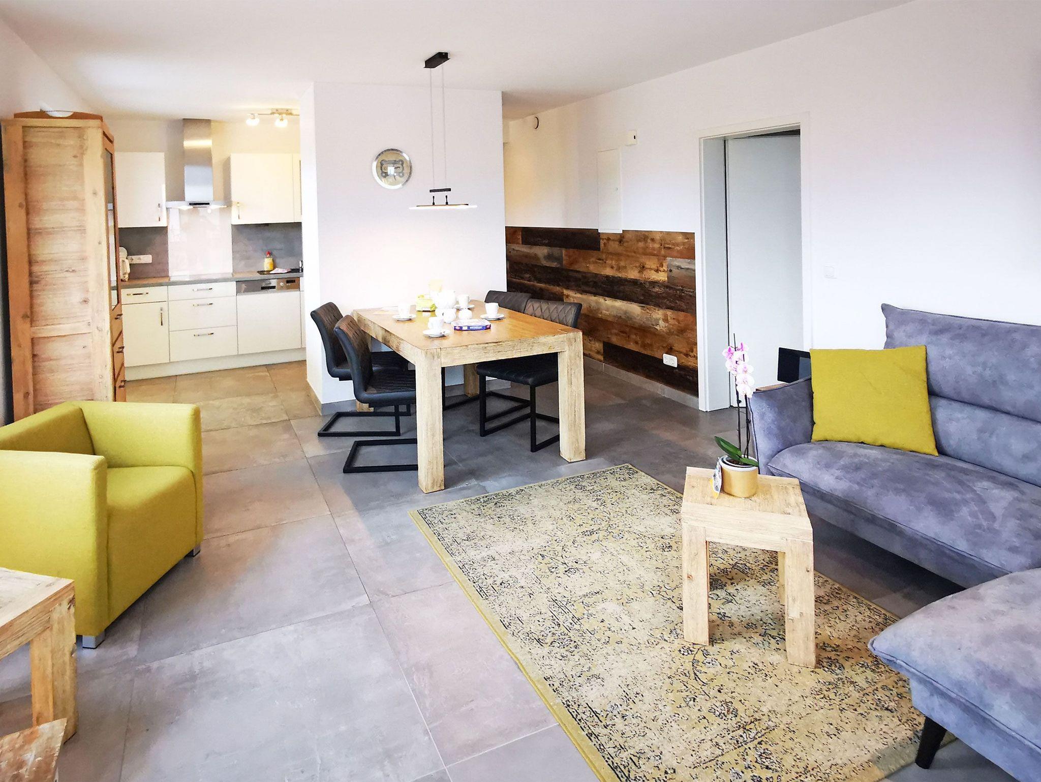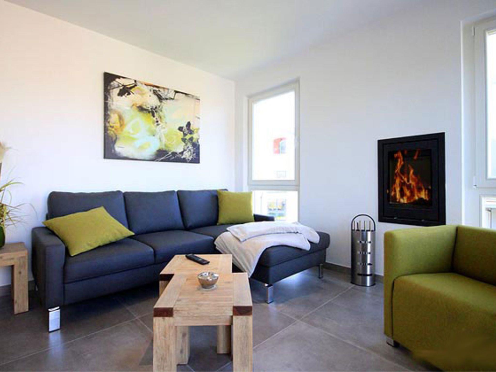 Die gesamte Wohnung ist stufenfrei und sehr hochwertig eingerichtet mit vielen kleinen Details. Besonders schön: Der Strandkorb auf der Balkonterrasse mit Blick zum Meer. Der großzugig geschnittene Wohn- und Essbereich verfügt über eine gemütliche Sofaecke, einen großen Flachbild-TV sowie einen modernen Kamin für kuschelige Abende.
