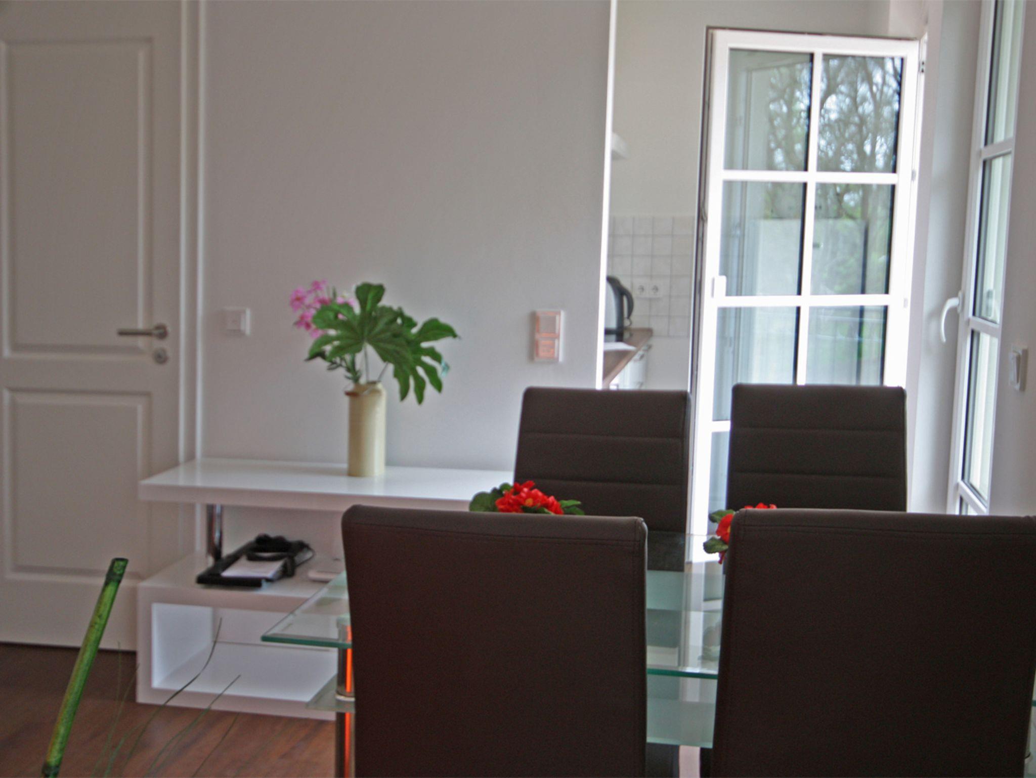 Die Wohnung hat einen großzügigen Wohn-/Essbereich mit einer modern ausgestatteten Küchenzeile mit Esstisch sowie TV mit DVD-Player und Radio. Die beiden separaten Schlafzimmer sind mit einem Doppelbett bzw. mit 2 Einzelbetten eingerichtet. In der Wohnung ist Internet (LAN und WLAN) kostenfrei vorhanden.