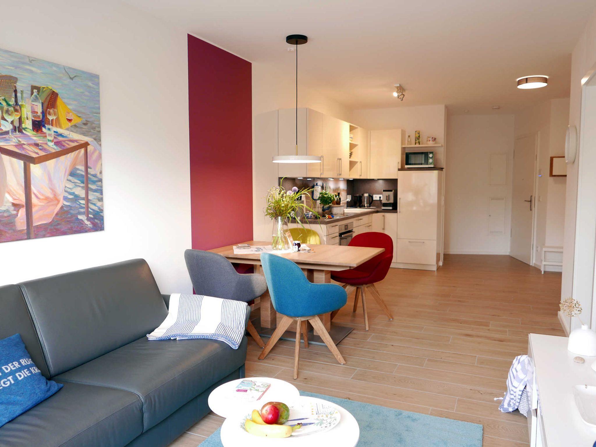 In dieser wunderbar modernen 2-Zimmer-Ferienwohnung mit einer Terrasse und einem kleinen Garten stellt sich direkt das Urlaubsgefühl ein ? spätestens, wenn man das Meeresrauschen in dem wohnungseigenen Strandkorb oder den seitlich eingeschränkten Meerblick genießt.