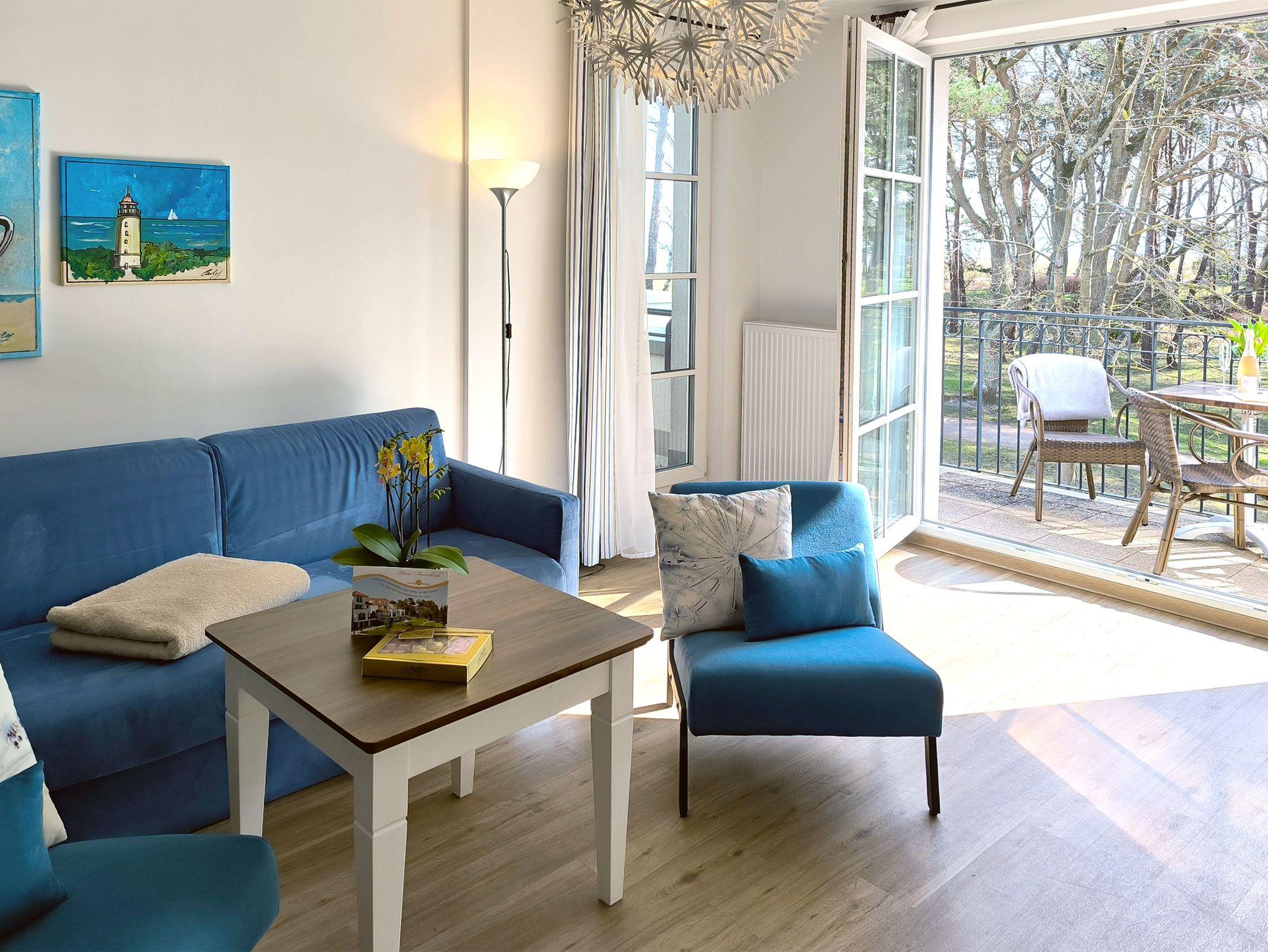 Moderne 2-Zimmer-Ferienwohnung mit Meerblick und Balkon direkt am Strand in Baabe.