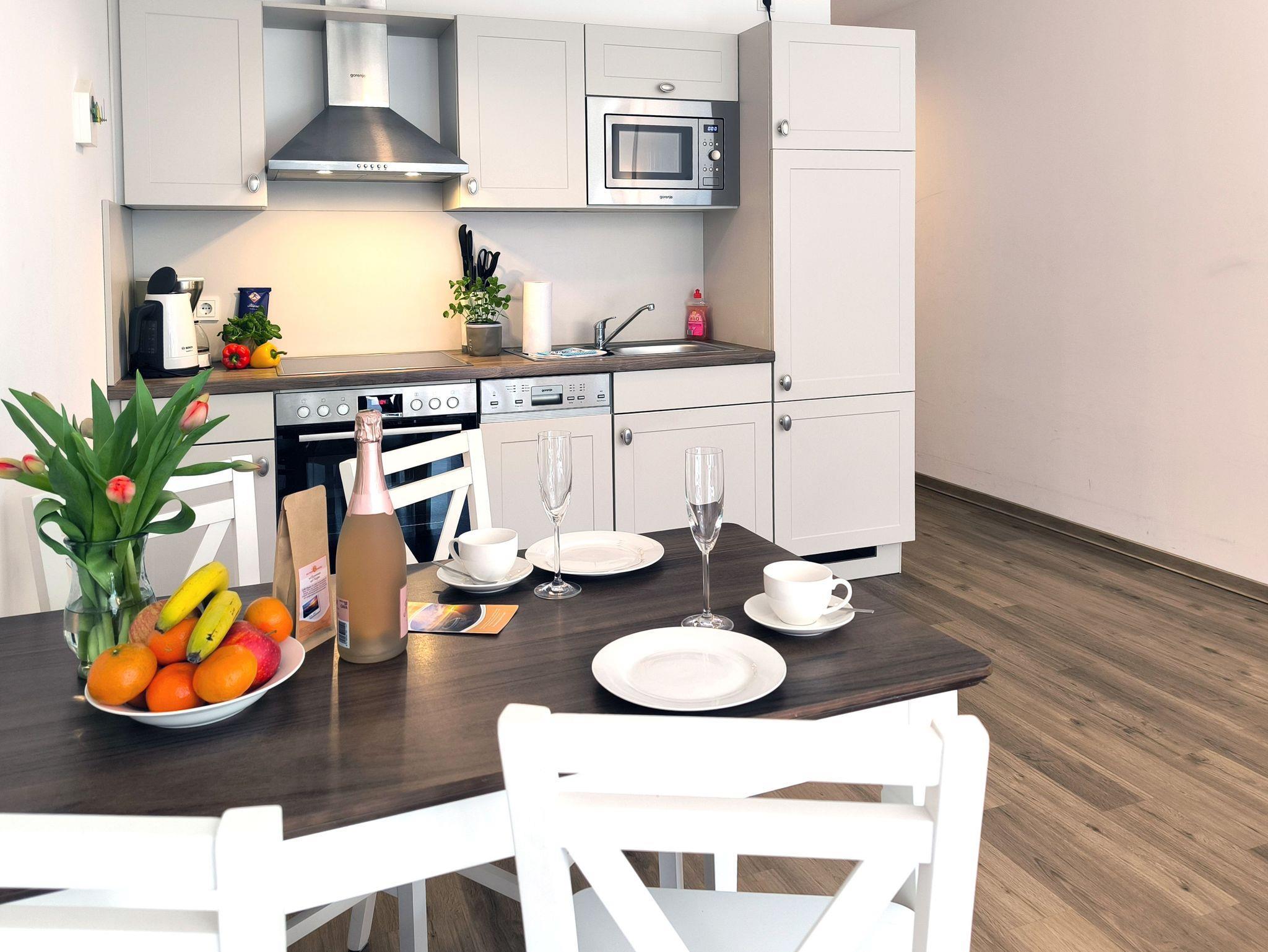 Die Wohnung hat einen großzügigen Wohn/Ess-Bereich, das Sofa kann zudem zu einem komfortablen Schlafsofa umgebaut werden. Die Küche ist mit allem versehen, um gut kochen zu können, wie z.b. einer Geschirrspülmaschine und ein Backofen.. Im Schlafzimmer befindet sich ein bequemes Doppelbett. Ein modernes Duschbad rundet die Wohnung ab.