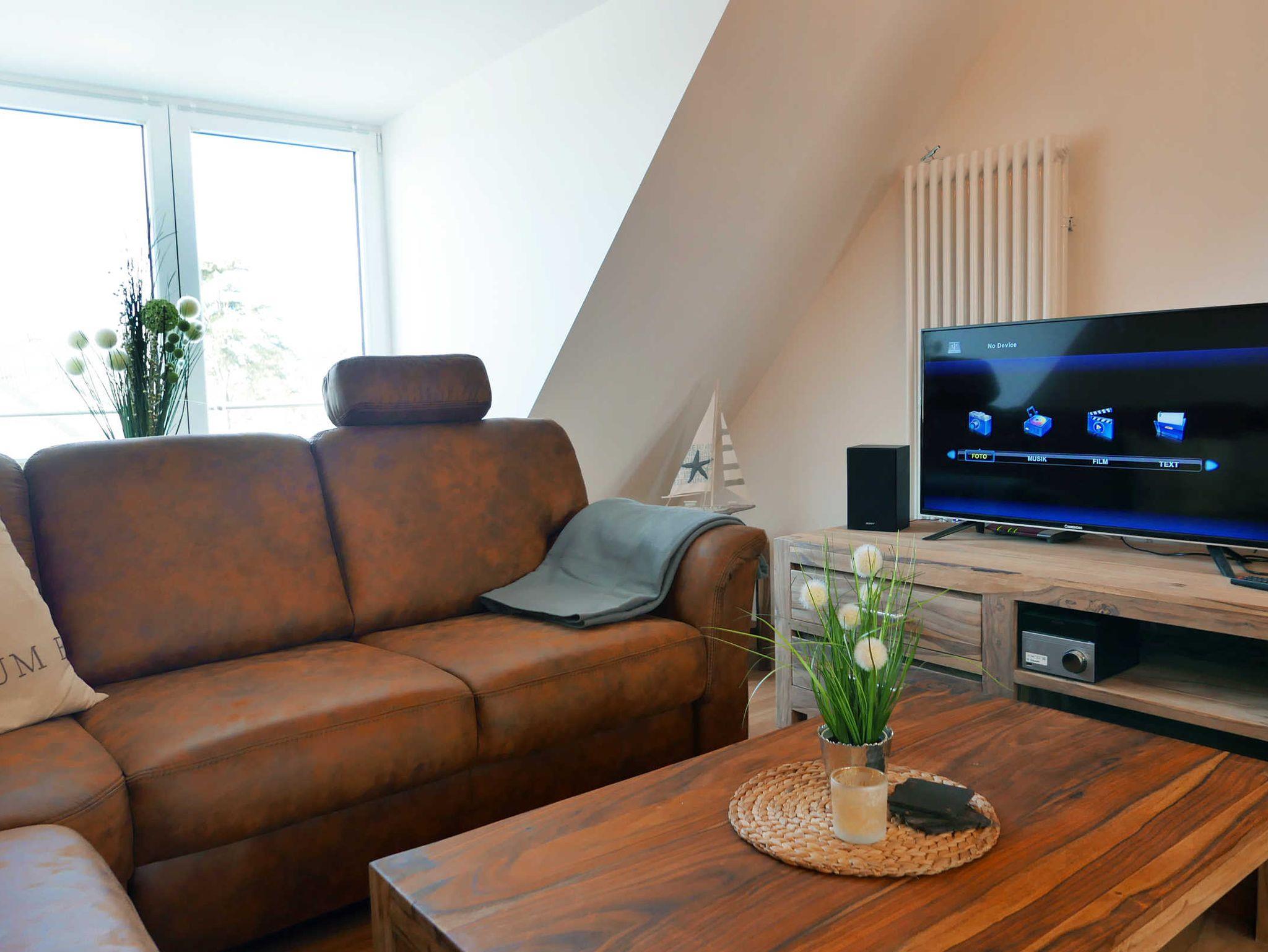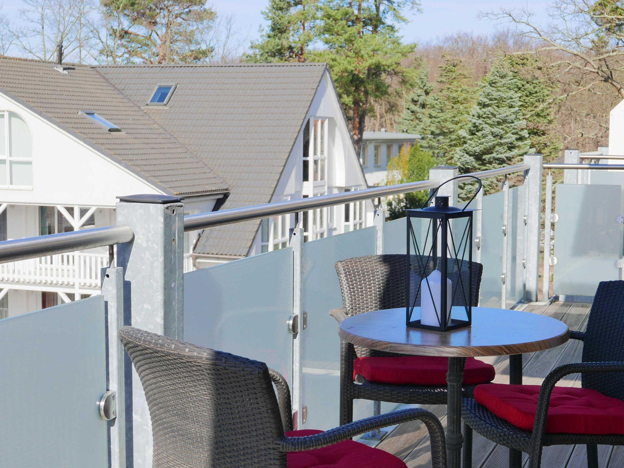 Moderne, barrierefreie Ferienwohnung in Baabe mit Meerblick, Terrasse, Sauna und Fitnessraum.